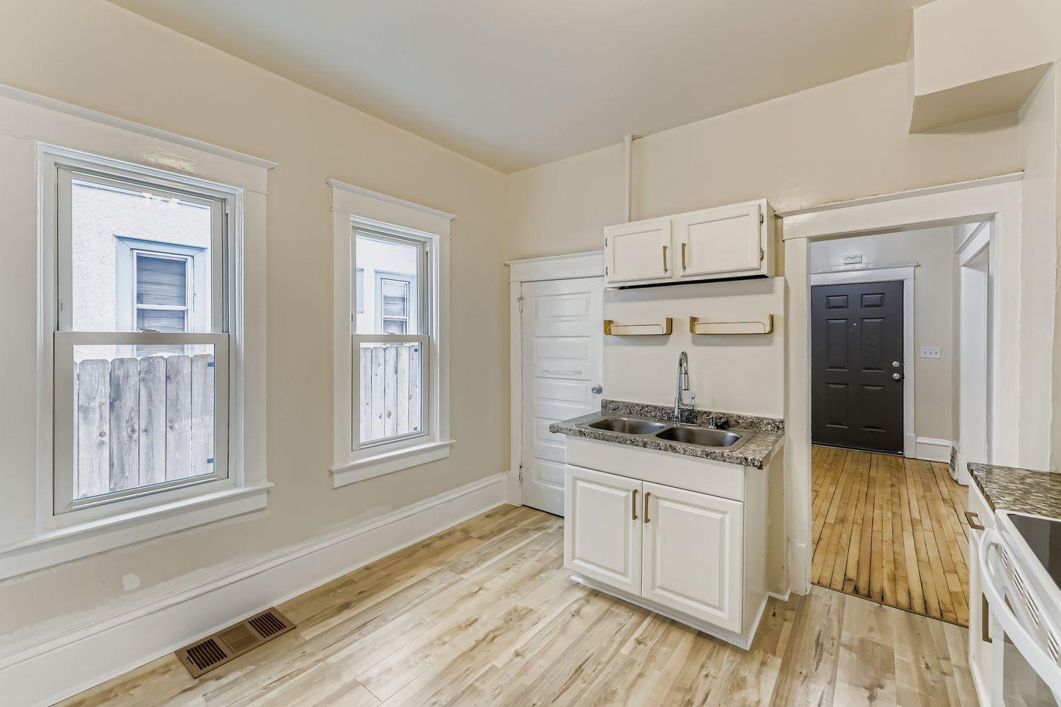 Beautifully renovated home featuring fresh paint and refinished hardwood floors. The kitchen has