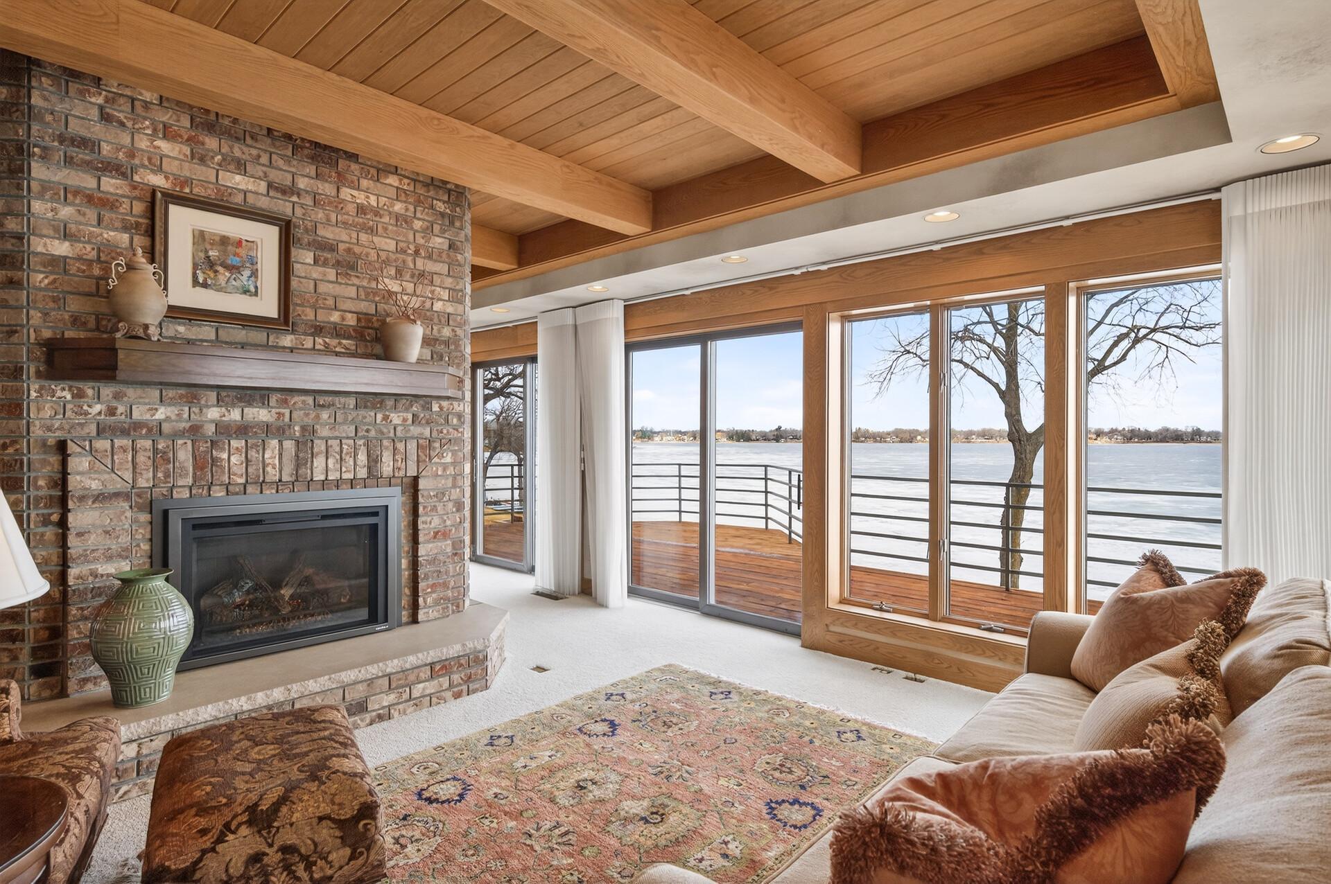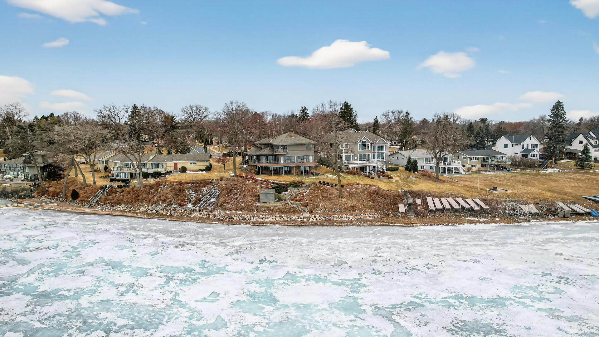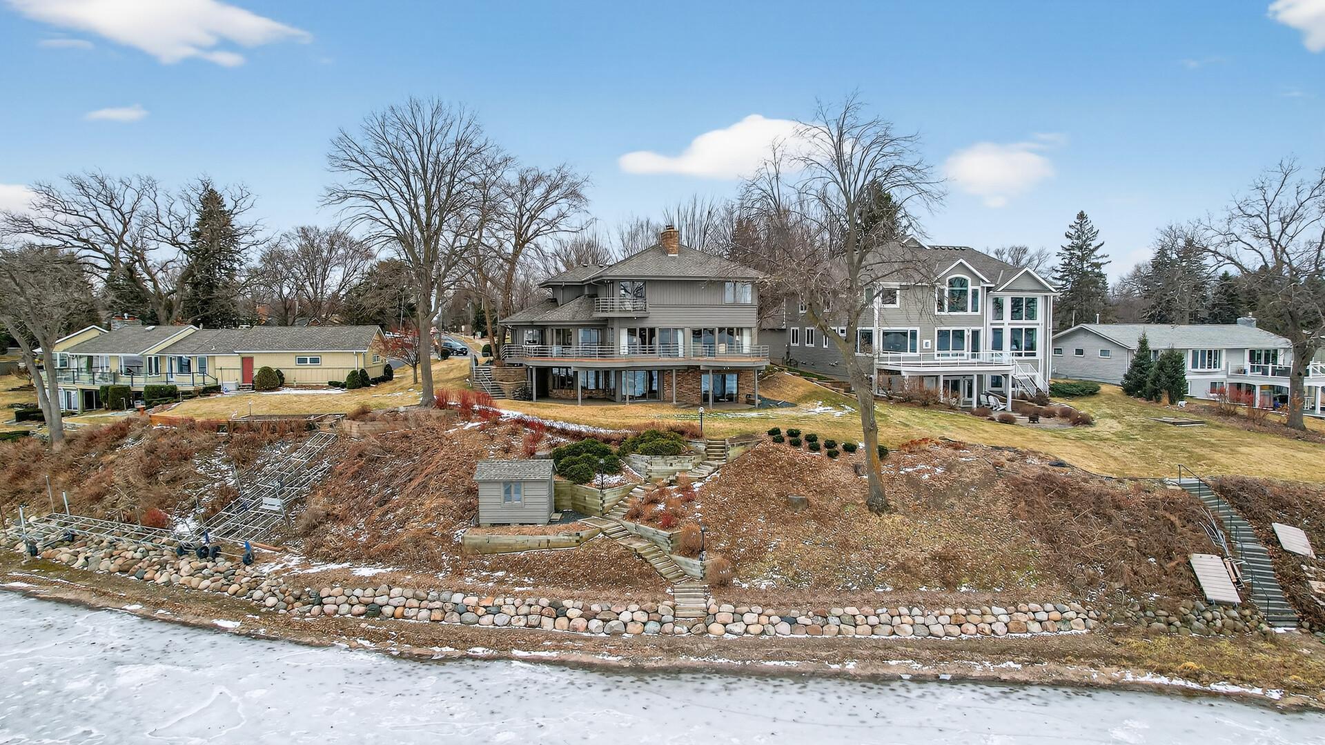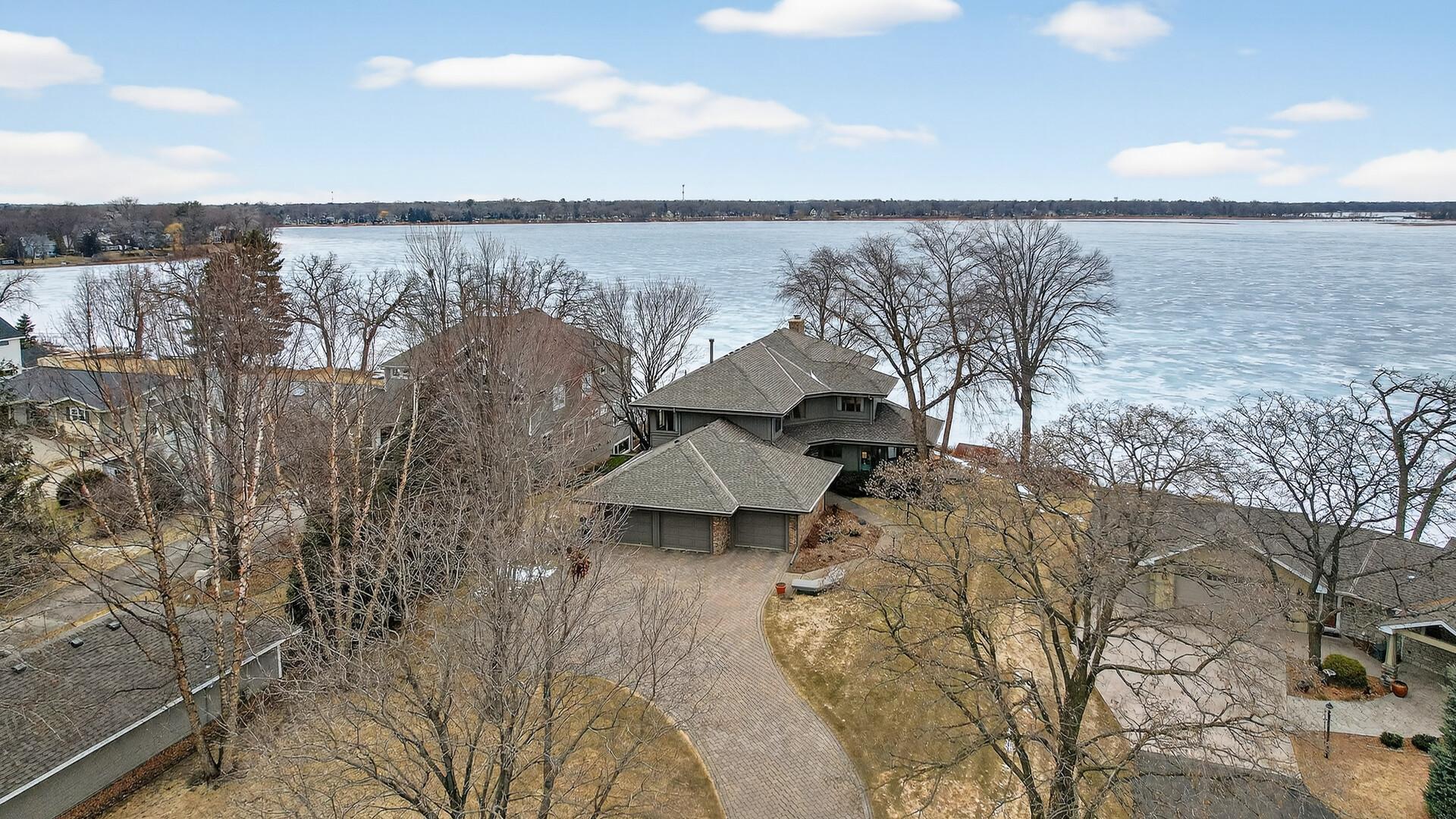 Enjoy 105 feet of pristine, sandy lakeshore on beautiful White Bear Lake, complete with a boathouse at the water’s edge for easy storage of all your lake toys. Perfectly positioned with a gentle elevation, this property captures sweeping lake views and stunning sunsets, while expansive back decks and a heated 3-season porch create ideal spaces for relaxing and entertaining. This impressive 6-bedroom, 4-bath home welcomes you with soaring double-height ceilings and abundant natural light. The main level features an updated kitchen, formal dining room with built-in buffet, and a spacious living and family room connected by a dual fireplace—perfect for everyday living and gatherings. A main-floor bedroom offers flexibility for guests and is located next to a full bathroom. Convenient access from the insulated, epoxy-finished 3-car garage leads into a functional mudroom with additional storage. Upstairs, you’ll find five generously sized bedrooms, including a private owner’s suite with a large walk-in closet and ensuite bath. The walkout lower level is designed for versatility and enjoyment, featuring a large flex room with lake views (currently used as an exercise room), a family room, wet bar, office, game room, bathroom with steam bath, and an expansive laundry and storage space. A rare opportunity to own a premier lakeshore property combining space, functionality, and exceptional frontage on one of the area’s most sought-after lakes.