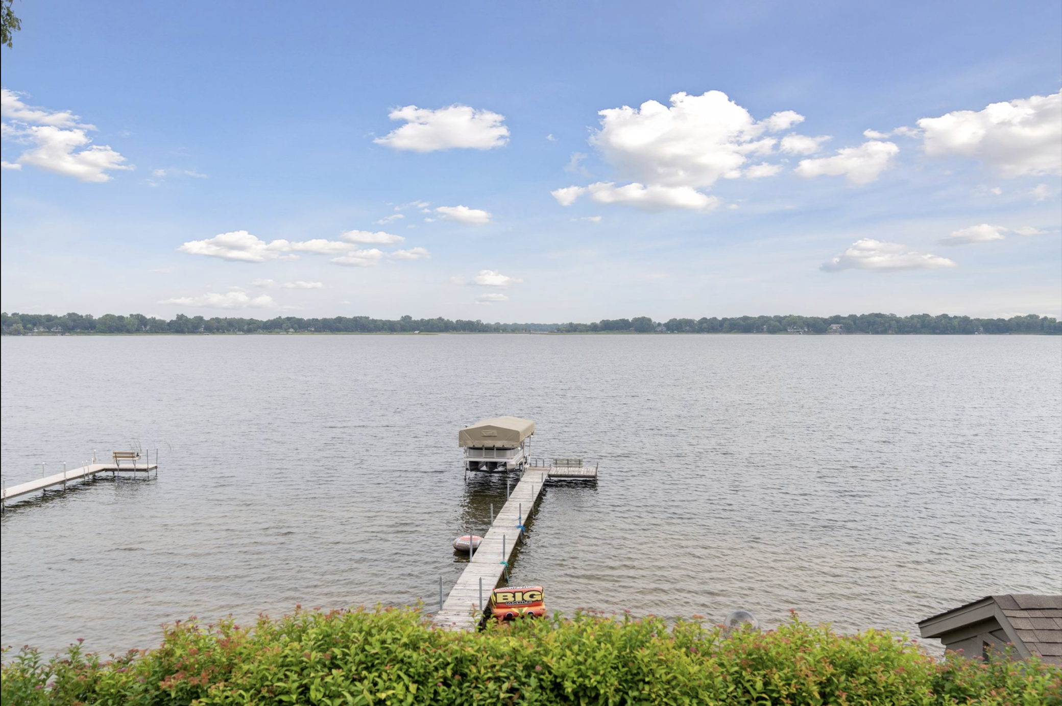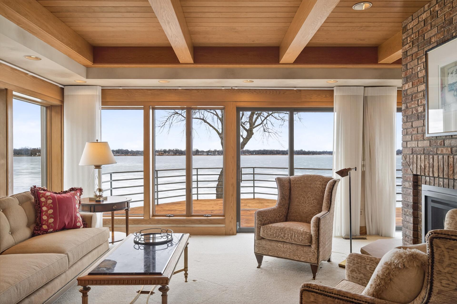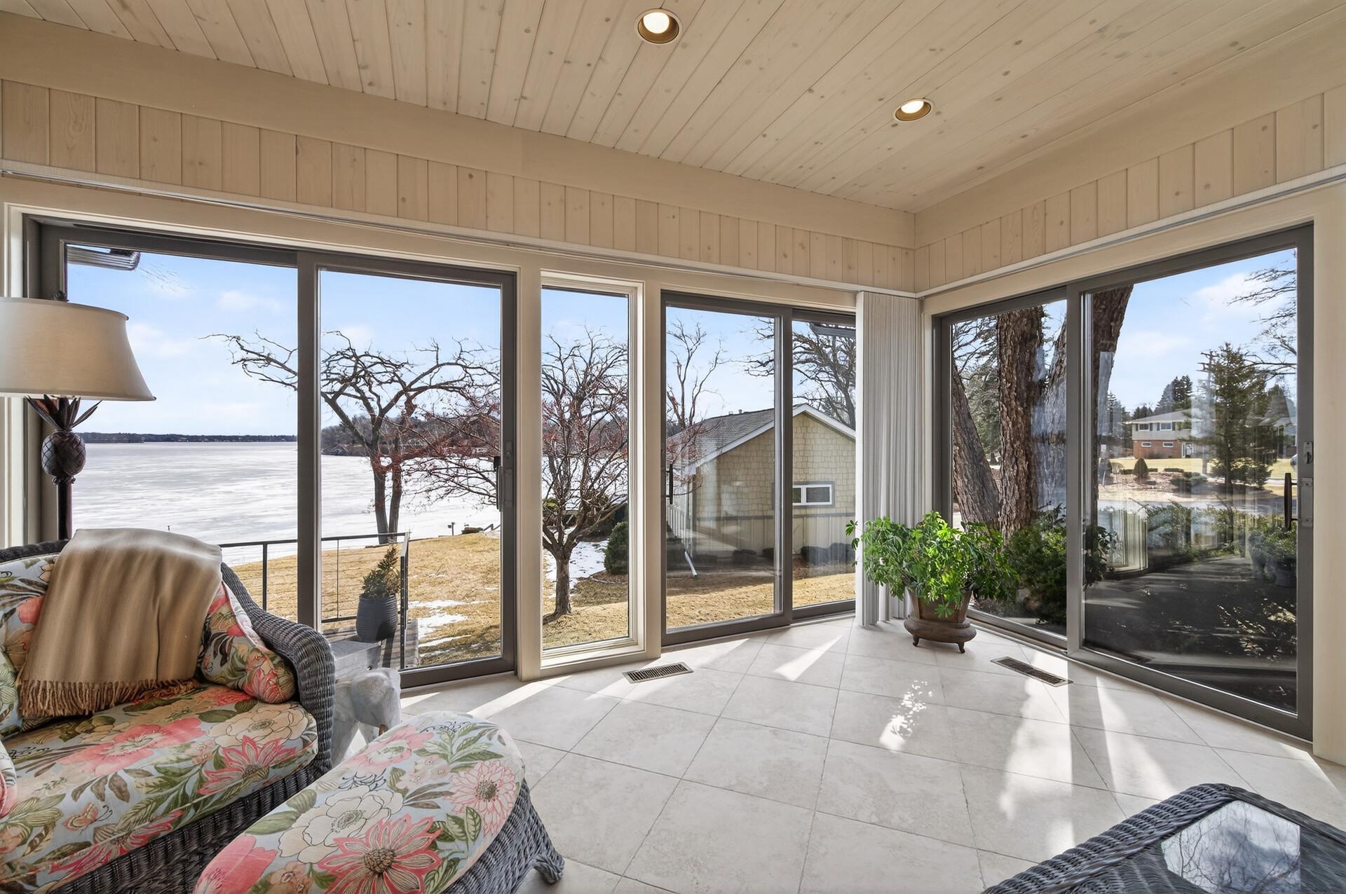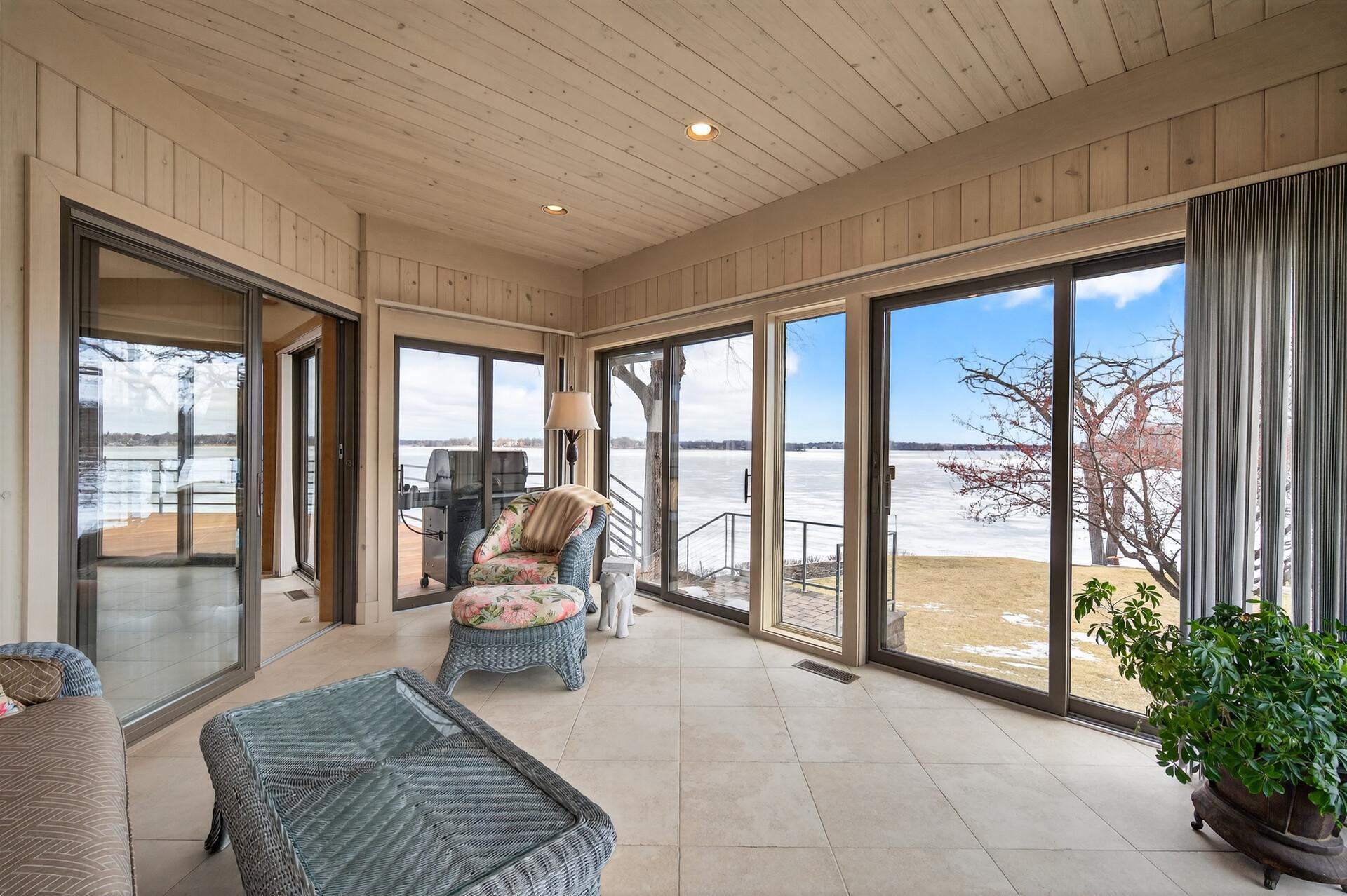 Enjoy 105 feet of pristine, sandy lakeshore on beautiful White Bear Lake, complete with a boathouse at the water’s edge for easy storage of all your lake toys. Perfectly positioned with a gentle elevation, this property captures sweeping lake views and stunning sunsets, while expansive back decks and a heated 3-season porch create ideal spaces for relaxing and entertaining. This impressive 6-bedroom, 4-bath home welcomes you with soaring double-height ceilings and abundant natural light. The main level features an updated kitchen, formal dining room with built-in buffet, and a spacious living and family room connected by a dual fireplace—perfect for everyday living and gatherings. A main-floor bedroom offers flexibility for guests and is located next to a full bathroom. Convenient access from the insulated, epoxy-finished 3-car garage leads into a functional mudroom with additional storage. Upstairs, you’ll find five generously sized bedrooms, including a private owner’s suite with a large walk-in closet and ensuite bath. The walkout lower level is designed for versatility and enjoyment, featuring a large flex room with lake views (currently used as an exercise room), a family room, wet bar, office, game room, bathroom with steam bath, and an expansive laundry and storage space. A rare opportunity to own a premier lakeshore property combining space, functionality, and exceptional frontage on one of the area’s most sought-after lakes.