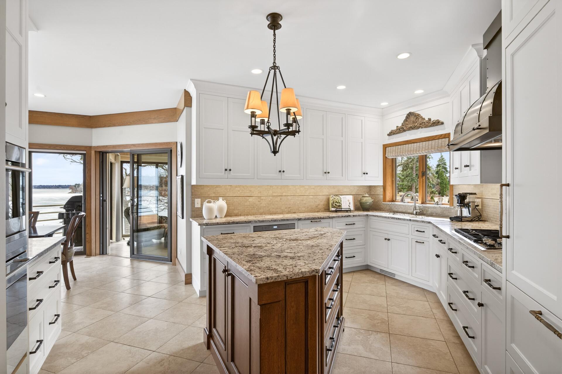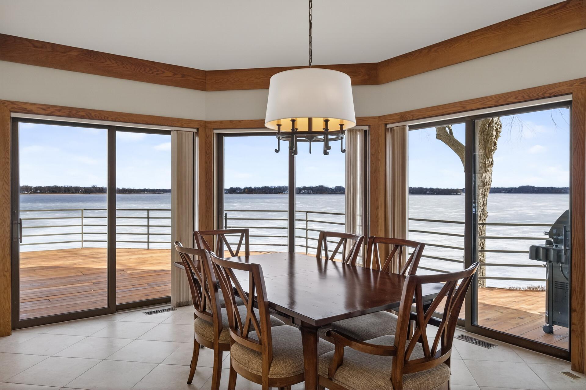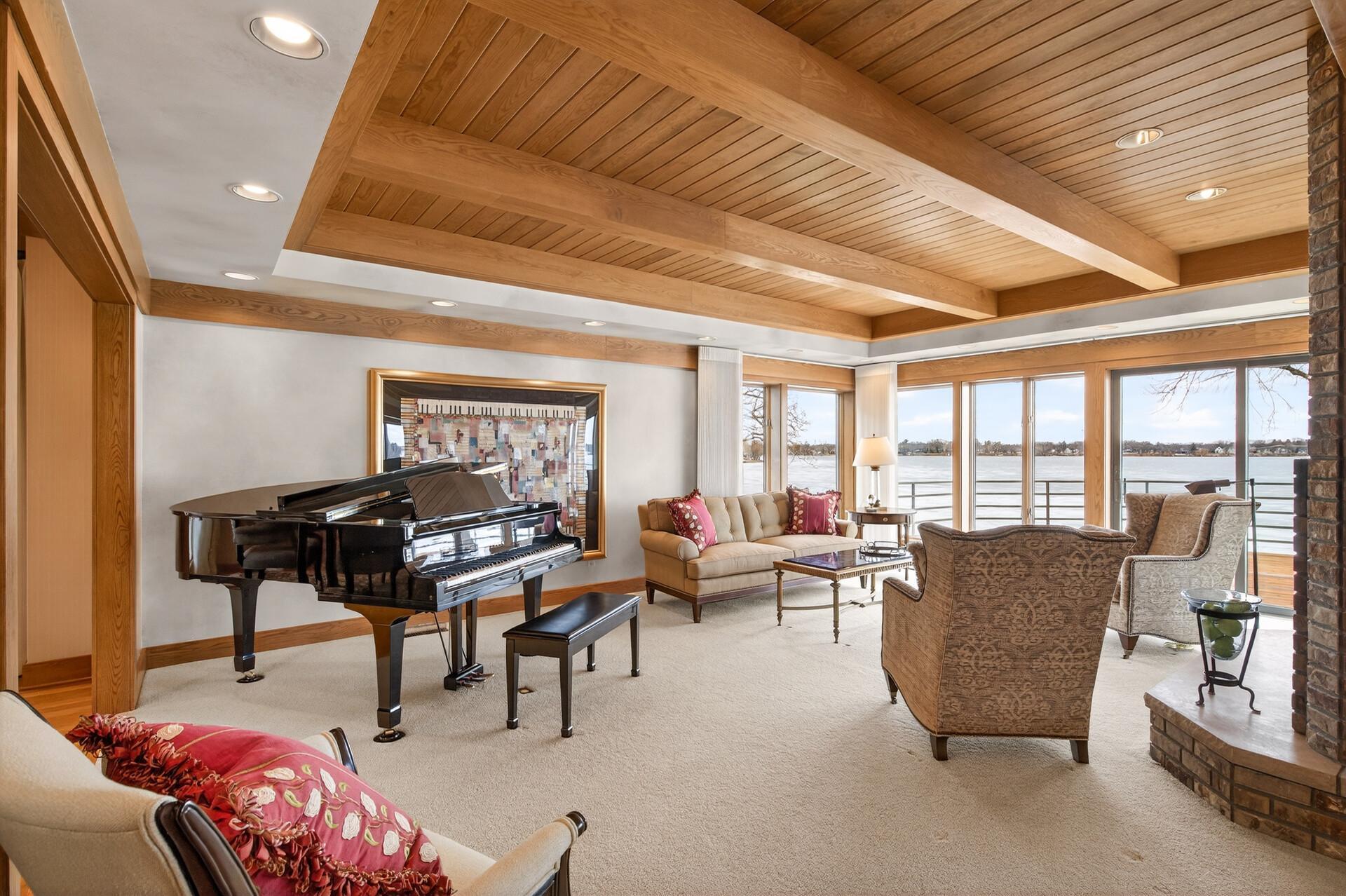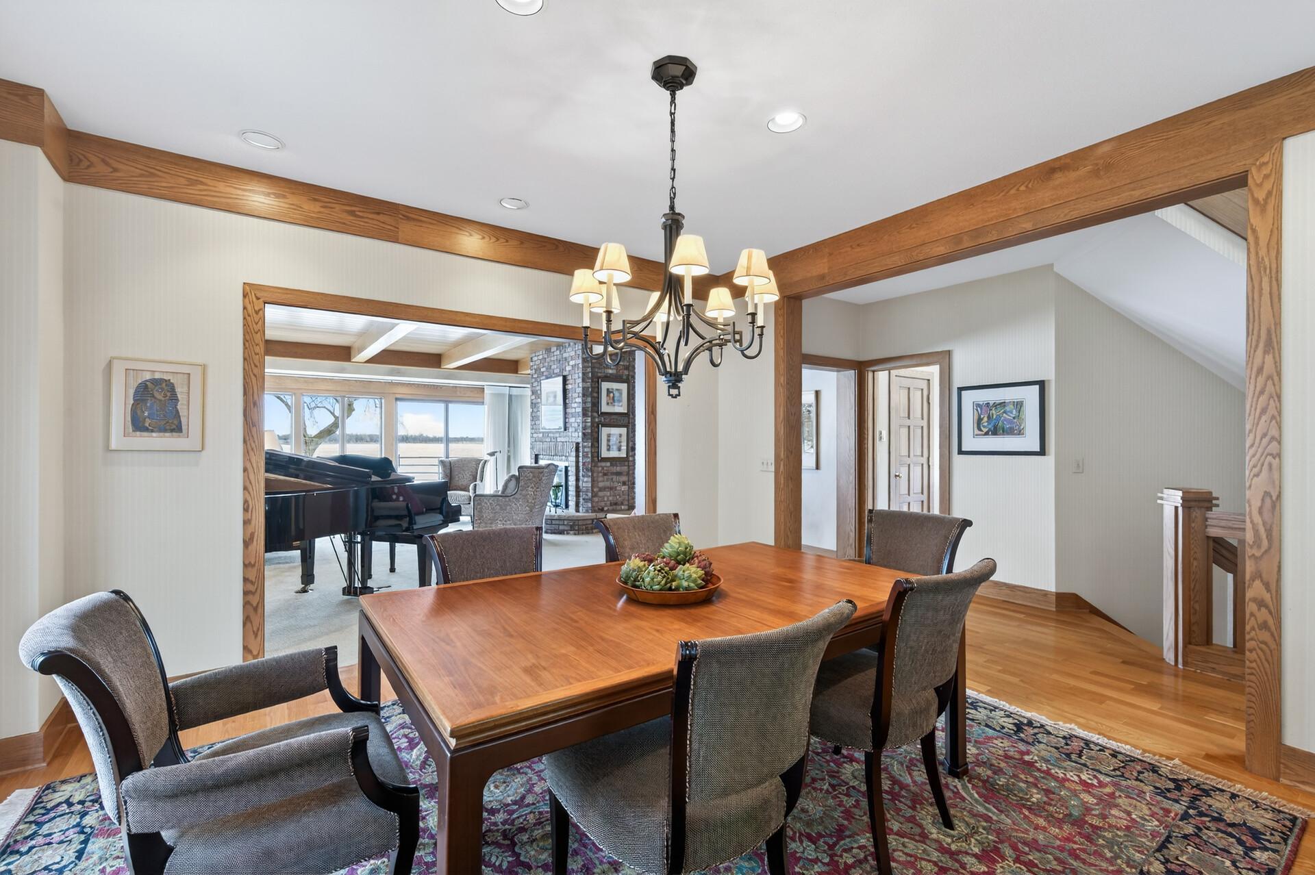 Enjoy 105 feet of pristine, sandy lakeshore on beautiful White Bear Lake, complete with a boathouse at the water’s edge for easy storage of all your lake toys. Perfectly positioned with a gentle elevation, this property captures sweeping lake views and stunning sunsets, while expansive back decks and a heated 3-season porch create ideal spaces for relaxing and entertaining. This impressive 6-bedroom, 4-bath home welcomes you with soaring double-height ceilings and abundant natural light. The main level features an updated kitchen, formal dining room with built-in buffet, and a spacious living and family room connected by a dual fireplace—perfect for everyday living and gatherings. A main-floor bedroom offers flexibility for guests and is located next to a full bathroom. Convenient access from the insulated, epoxy-finished 3-car garage leads into a functional mudroom with additional storage. Upstairs, you’ll find five generously sized bedrooms, including a private owner’s suite with a large walk-in closet and ensuite bath. The walkout lower level is designed for versatility and enjoyment, featuring a large flex room with lake views (currently used as an exercise room), a family room, wet bar, office, game room, bathroom with steam bath, and an expansive laundry and storage space. A rare opportunity to own a premier lakeshore property combining space, functionality, and exceptional frontage on one of the area’s most sought-after lakes.
