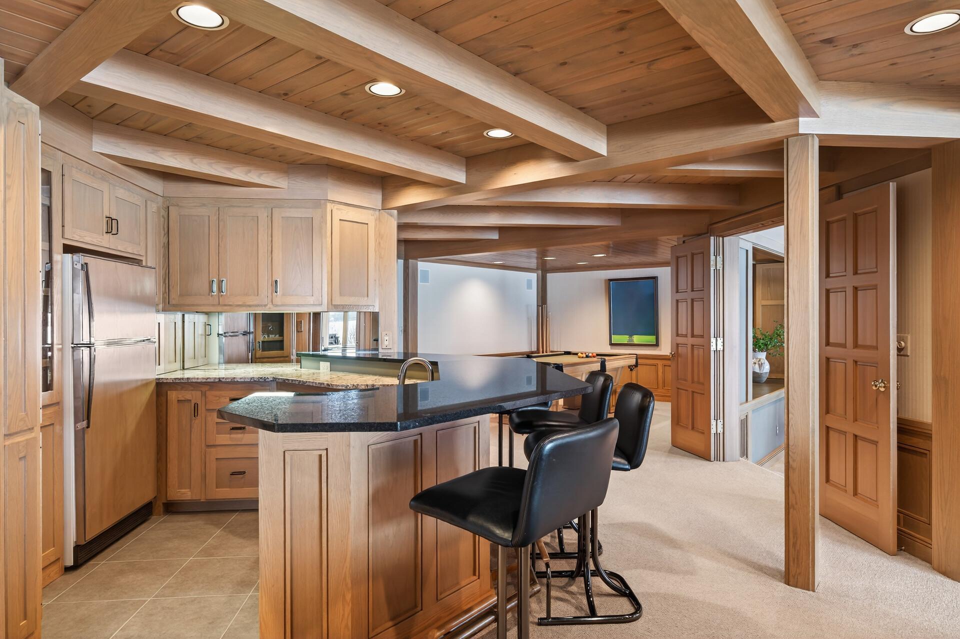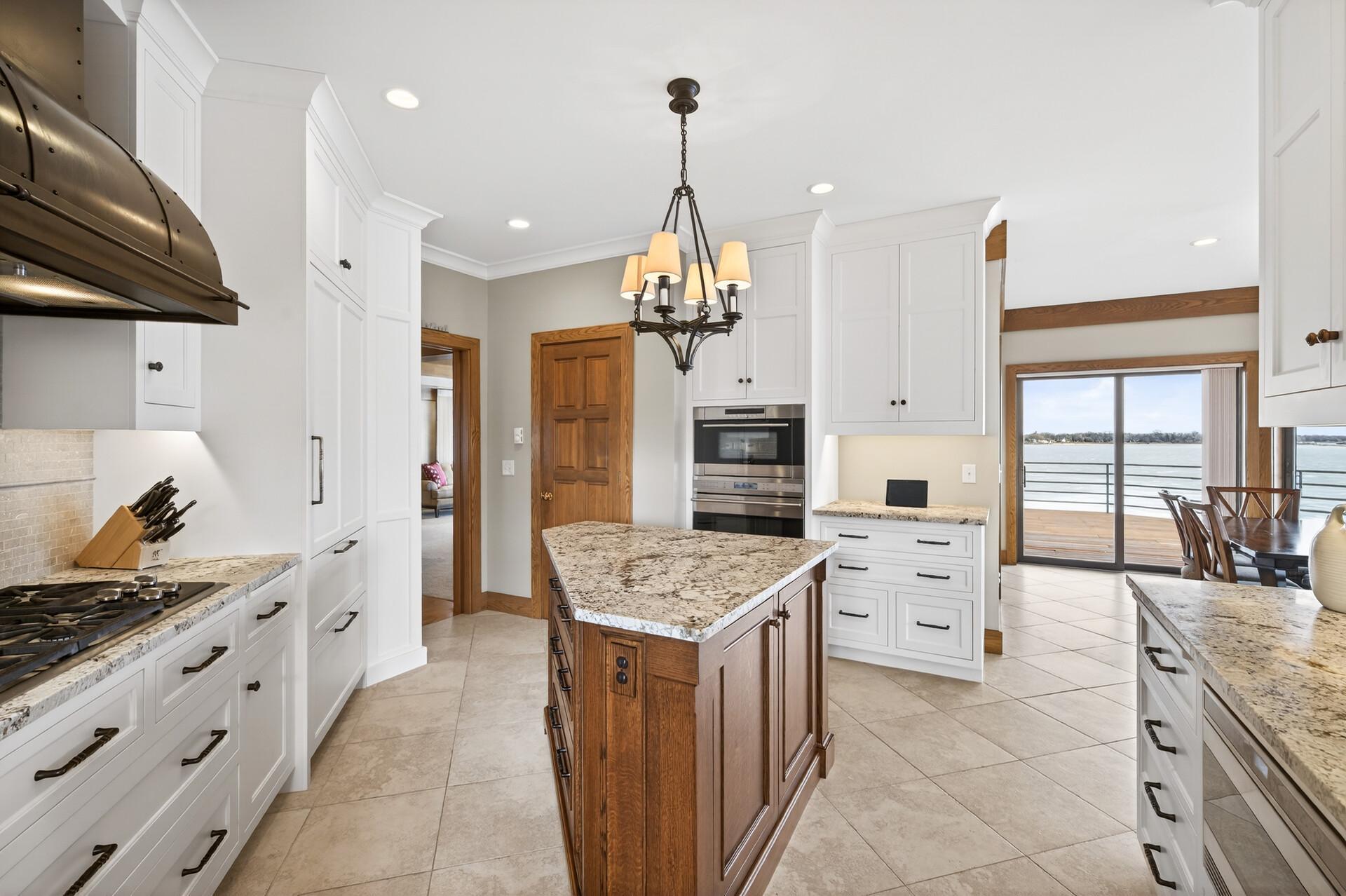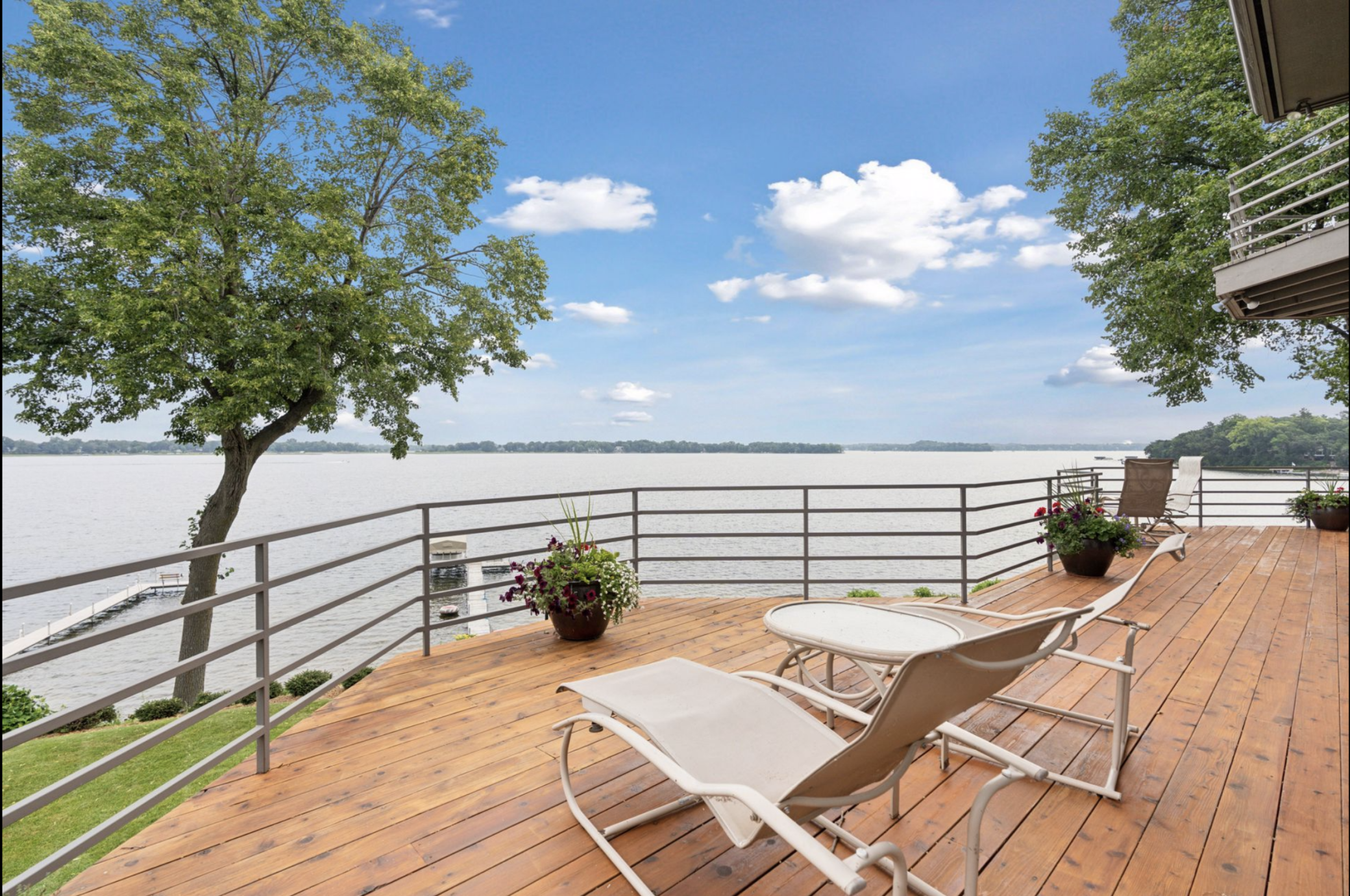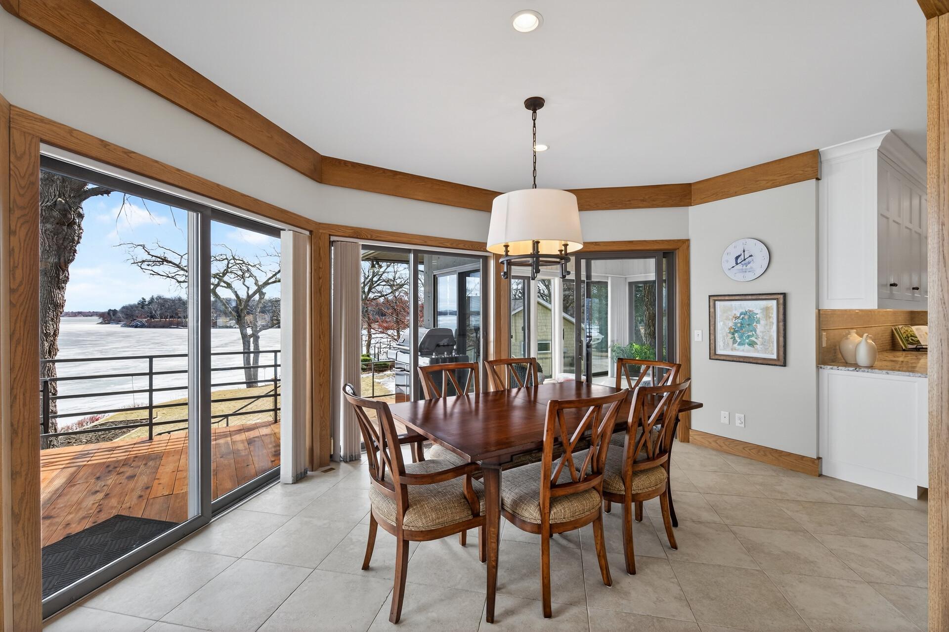 Enjoy 105 feet of pristine, sandy lakeshore on beautiful White Bear Lake, complete with a boathouse at the water’s edge for easy storage of all your lake toys. Perfectly positioned with a gentle elevation, this property captures sweeping lake views and stunning sunsets, while expansive back decks and a heated 3-season porch create ideal spaces for relaxing and entertaining. This impressive 6-bedroom, 4-bath home welcomes you with soaring double-height ceilings and abundant natural light. The main level features an updated kitchen, formal dining room with built-in buffet, and a spacious living and family room connected by a dual fireplace—perfect for everyday living and gatherings. A main-floor bedroom offers flexibility for guests and is located next to a full bathroom. Convenient access from the insulated, epoxy-finished 3-car garage leads into a functional mudroom with additional storage. Upstairs, you’ll find five generously sized bedrooms, including a private owner’s suite with a large walk-in closet and ensuite bath. The walkout lower level is designed for versatility and enjoyment, featuring a large flex room with lake views (currently used as an exercise room), a family room, wet bar, office, game room, bathroom with steam bath, and an expansive laundry and storage space. A rare opportunity to own a premier lakeshore property combining space, functionality, and exceptional frontage on one of the area’s most sought-after lakes.