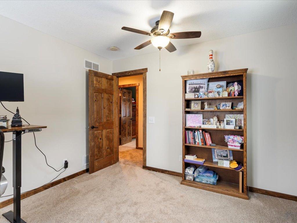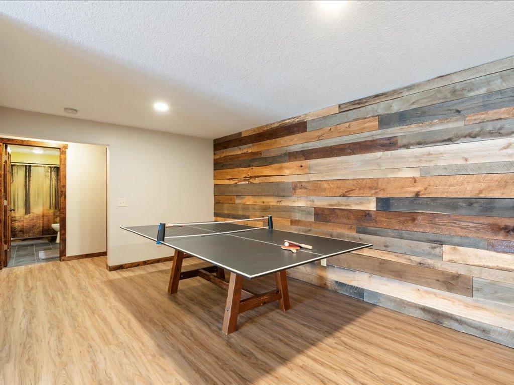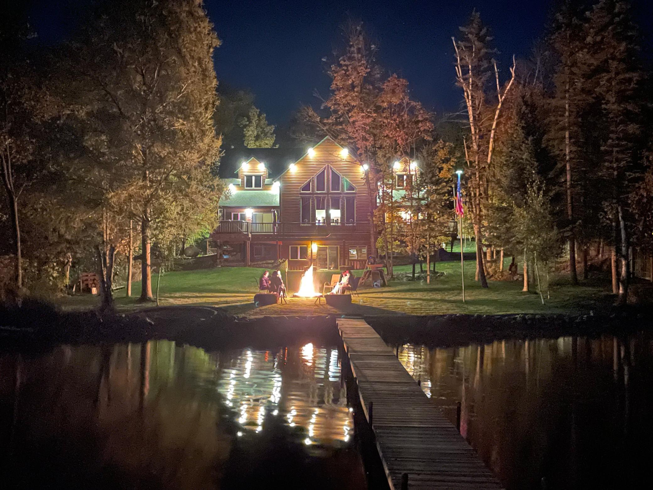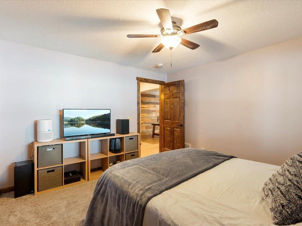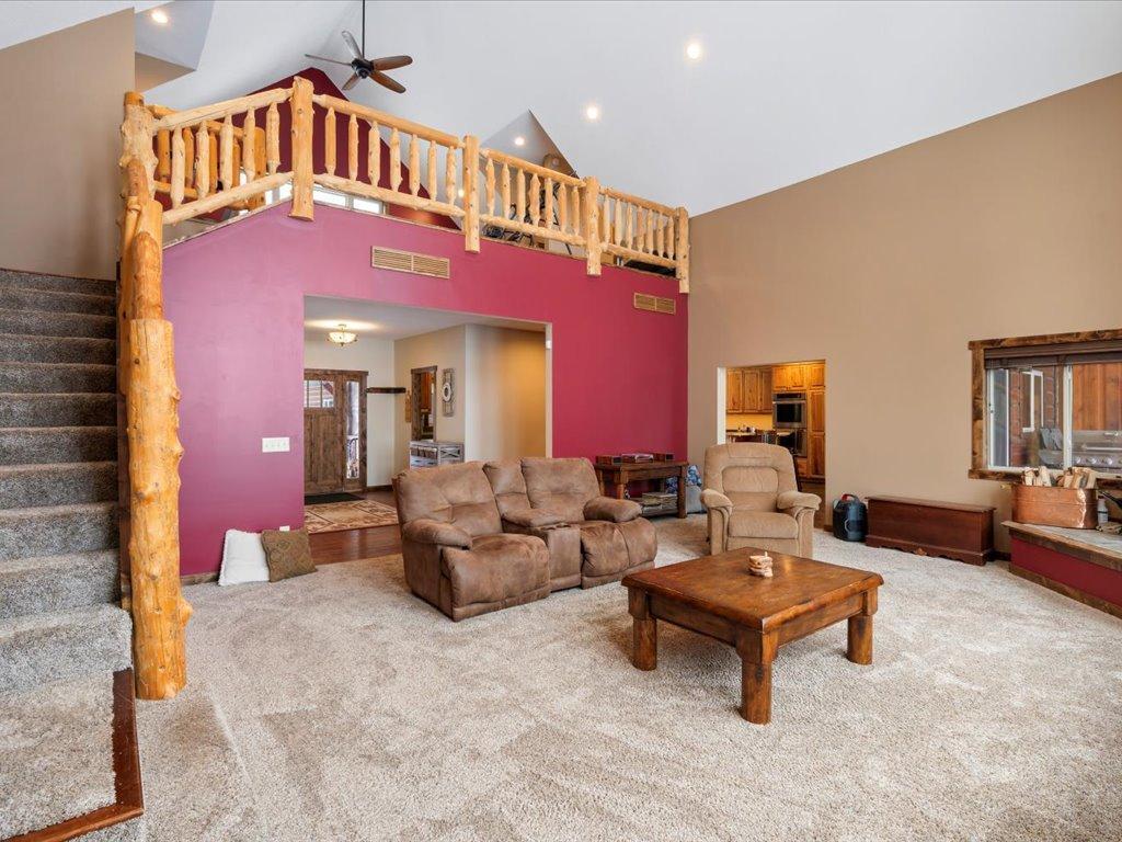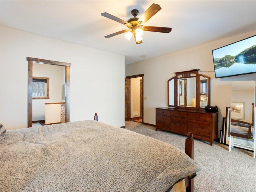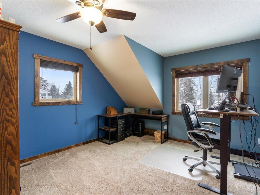 Step into lakeside luxury with this stunning 4+ bedroom, 5-bathroom home boasting over 4,000 sq. ft. on Sugar Lake. Nestled at the end of a secluded, private tree-lined drive, this home offers peaceful privacy and a magical journey through the woods every time you arrive. Cozy up in the family room with wood stove that climbs to the ceiling crackling warmly on cold winter days. The custom built-ins with an electronic hiding space for the TV, blends style and function seamlessly. Enjoy the amazing lake views from the wall of windows that extend to the vaulted ceilings.. A built-in wine bar with cork back splash is around the corner and adds a touch of elegance. The over sized chef’s kitchen has custom hickory soft-close cabinets/ drawers with under cabinet lighting, a lighted corner pantry, LG stainless steel appliances including built-in double wall ovens and gas cooktop stove centered in the breakfast bar that comfortably seats 4. Featuring throughout home is knotty alder trim and six panel wood doors. The bamboo wood floors flow nicely starting in foyer and expanding through parts of home. Step outside onto the expansive lake-sized deck the runs from one side of the house to the other and relax. The finished lower level walks out to a lush green lawn watered by the lake and perfect for summer days. The inviting open lower level features 2 bedrooms with double closets, full bathroom, living room, game room, rustic accent walls, storage and a great spot to add a wet bar. The upper level loft overlooks family room with log railing wrapping up the stairs etched with character. The open loft offers stunning lake views overlooking the level sandy shoreline thru the wall of windows. You find another lakeside bedroom suite with walk in closet and private bathroom, an office, hobby room and another bathroom. Stay comfortable year-round with dual-zone furnaces and central air. Park in comfort with your heated, insulated two-car detached garage set up with floor drain and openers. Sit on dock and fish or jump off and swim. This home is calling your name....