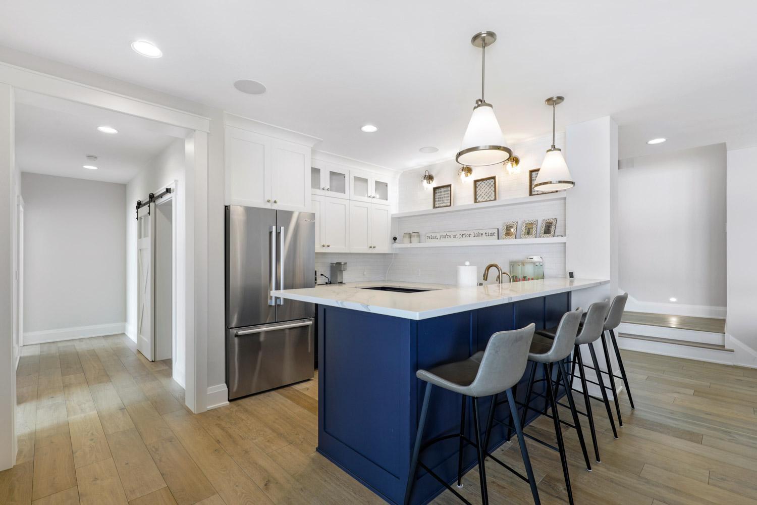 Experience the epitome of lakeside luxury with this stunning property boasting 100 feet of flat lakeshore on the tranquil Lower Prior Lake. Nestled in a quiet neighborhood on a cul-de-sac, this home offers the perfect blend of privacy and community. With 5 bedrooms, 5 bathrooms and 6 car garage there is ample room and endless possibilities for this rambler. With a main floor office, vaulted great room, vaulted 4 season porch, expansive kitchen complete with a working butler’s pantry and vaulted main floor primary bedroom- this one truly has it all. The lower level offers 3 additional bedrooms plus a workout room. With 3 en suite bathrooms, a wet bar and lower level laundry this is everything you need for lakefront living. The lower level 3 car garage has convenient lakeside access for storage galore. There is an additional unfinished bonus room that could be used for a golf simulator, storage or MIL suite. Don’t miss the opportunity to make this lakeside dream your reality.