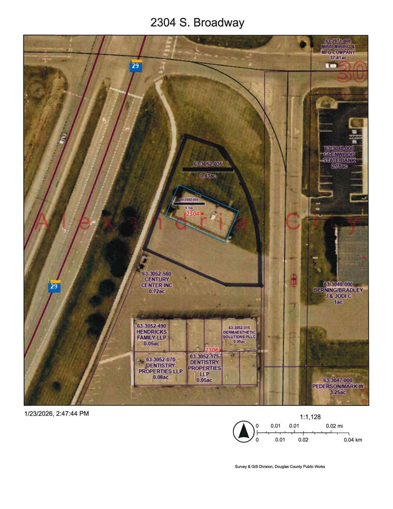Excellent business and office location on S. Broadway in Alexandria. This highly visible corner property benefits from strong daily traffic counts along Highway 29, South Broadway and 22nd Avenue. Approximately 1,600 square feet is available for lease in this free-standing building located on the north side of the Century Center.