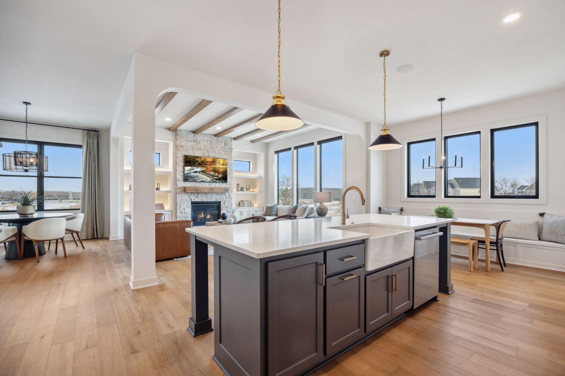 Hanson Builders the Bridgewater Sport! 10' Ceilings on the main level with oversized windows. Custom designed kitchen with large Prep Kitchen overlooking the backyard! The upper level features a vaulted Bonus Room, 4 Bedrooms, including private Owner's Suite with spa-like bathroom and walk through to Laundry. Finished lower level with Indoor Sport Center, family room, wet Bar/games area and 5th bedroom.