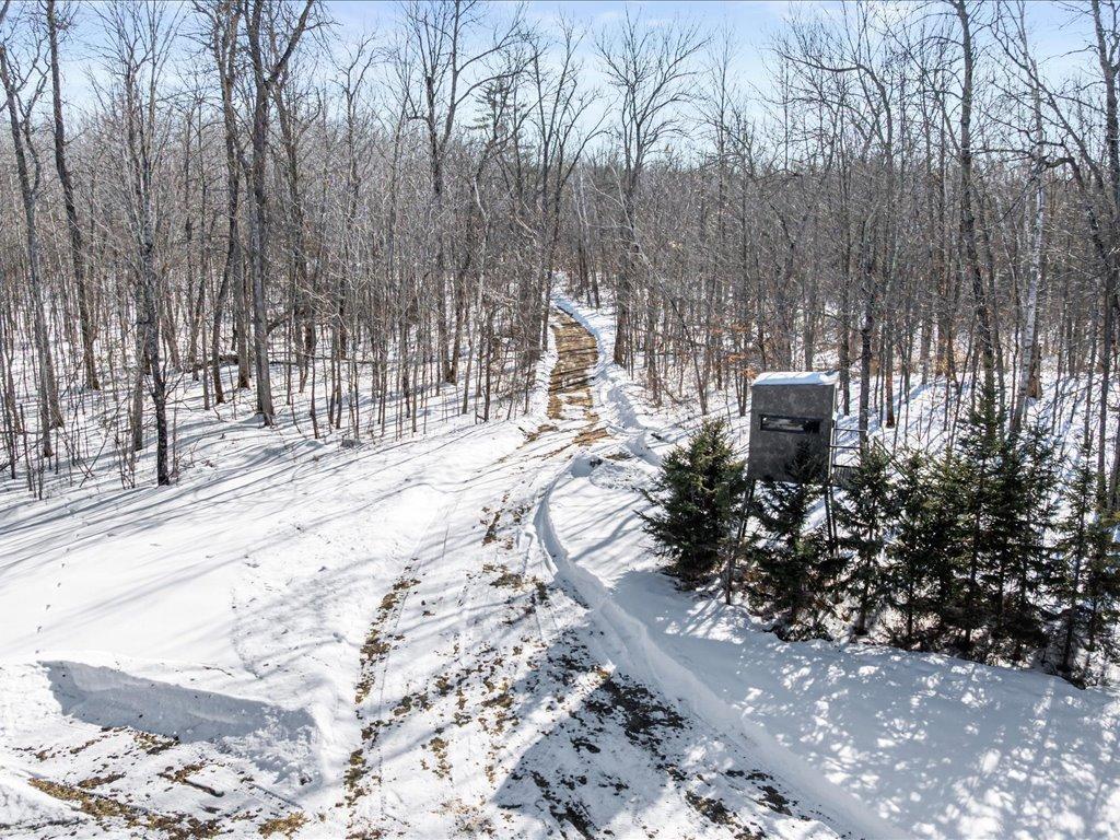 Premier 400+ acre managed forest and wildlife haven in Minnesota offering a rare opportunity to own land that has been intensively and thoughtfully stewarded for 46 years with a strong focus on timber production and wildlife habitat, and proudly recognized as the 2012 Minnesota Tree Farmer of the Year. The property features 12 permanent heated deer stands, 5 established food plots (3 annual and 2 perennial plantings), two maintained roads with entrances, and miles of established trails providing excellent access throughout. A forestry management plan is currently in place, with the option for a new owner to opt out after the next 3-year period. Wildlife is abundant, including deer, bear, moose, bobcat, turkey, grouse, and other woodland species, making this an exceptional hunting and recreational property. Improvements include a 35x45 Morten building with electricity and a drilled well, along with a fenced garden area, creating an ideal setup for a hunting base camp, timber investment, or private outdoor retreat.