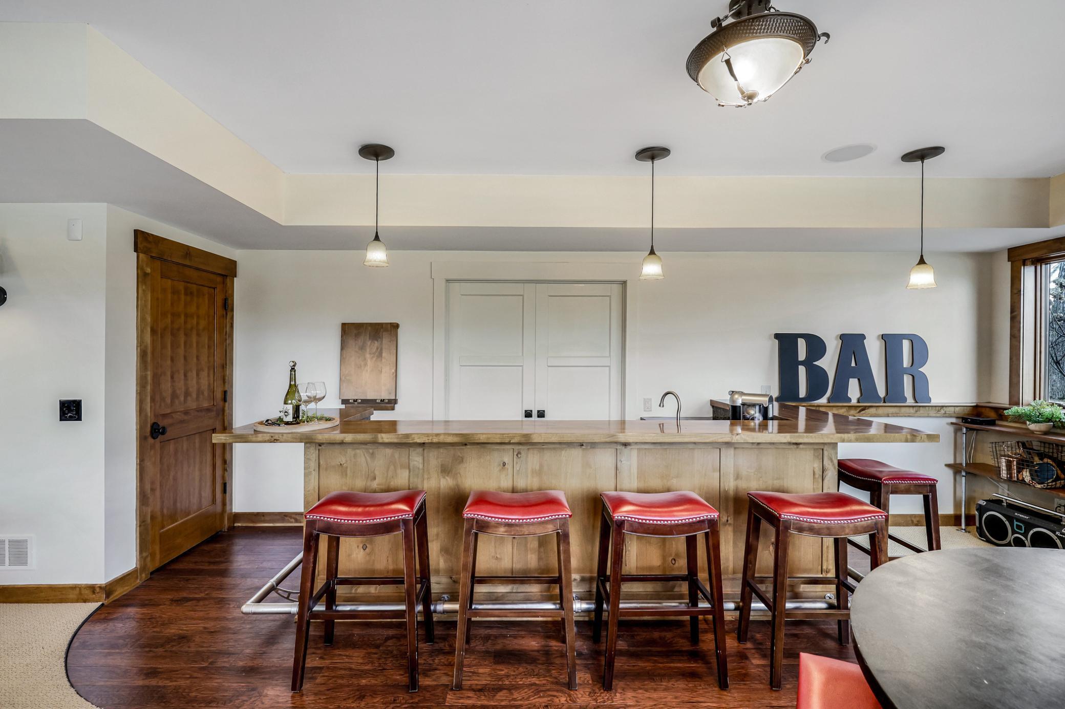 Welcome to The Territory — where resort-style amenities and refined craftsmanship create an exceptional way of living. Nestled within one of the area’s most sought-after communities, this custom home offers access to scenic trails, parks, an iconic covered bridge, and the private Lodge Park clubhouse with a pool, splash pad, and fire pit gathering space just moments away. This executive two-story home, built by Rock Creek, sits on a private .63-acre lot and showcases exceptional craftsmanship throughout. The chef’s kitchen features custom hardwood cabinetry, hand-scraped walnut flooring, premium appliances, a gas cooktop, and granite countertops with an updated subway tile backsplash. A built-in buffet and coffee bar, along with a large center island with seating and a prep sink, add both style and everyday functionality. The adjoining dining area is accented with crown molding and French doors that open to a stamped concrete patio. The great room impresses with custom media built-ins and a gas fireplace wrapped in floor-to-ceiling stacked stone. A wall of windows overlooks the private backyard and opens to a four-season porch with a two-sided gas fireplace and peaceful views. From here, step onto the spacious deck, ideal for grilling and entertaining. The main level also includes a private office framed by a dramatic glass wall, a powder room with shiplap accents, and a well-designed mudroom. Upstairs, the primary suite offers a luxurious retreat with vaulted ceilings, hardwood floors, and a wall of glass that opens to a secluded balcony. The spa-inspired bath features heated floors, dual vanities, a soaking tub, and a tiled shower. Two additional vaulted bedrooms share a full bath, while the upper-level laundry connects to a private east wing with a study nook, bonus room, fourth bedroom, and ¾ bath—ideal for guests or multi-generational living. The walkout lower level is designed for entertaining with an expansive amusement room, a second stone fireplace, and a sit-down wet bar complete with beverage refrigerators. French doors lead to a private theater room, while a fifth bedroom and a ¾ bath with heated floors complete the level. Professionally designed landscaping enhances the peaceful backyard, featuring a main-level deck with gas fireplace, a lower patio with retractable screens, a paver fire pit area, and mature trees providing privacy and natural beauty. Come for a visit—stay for a lifetime. This is more than a home; it’s a life destination.