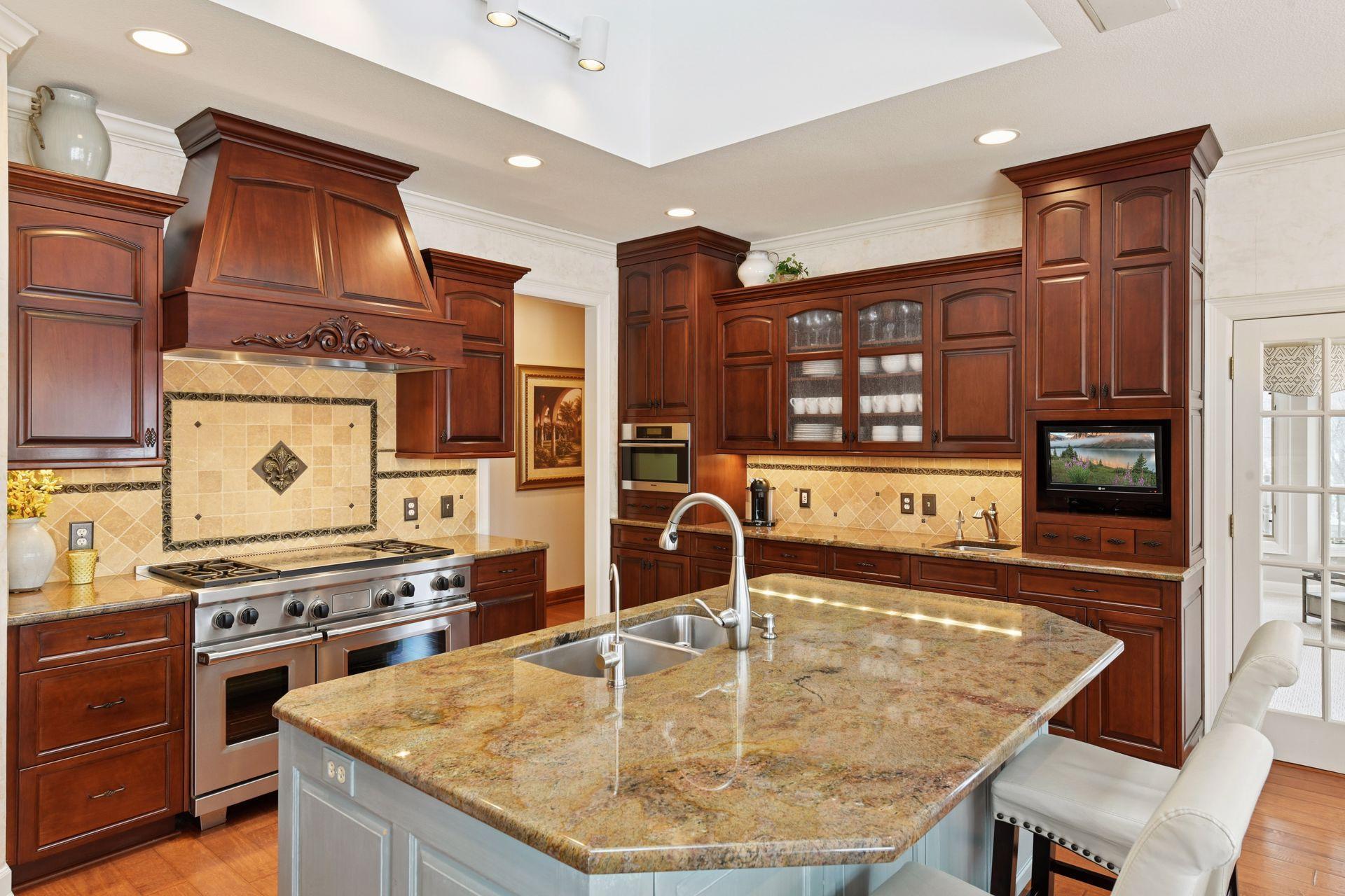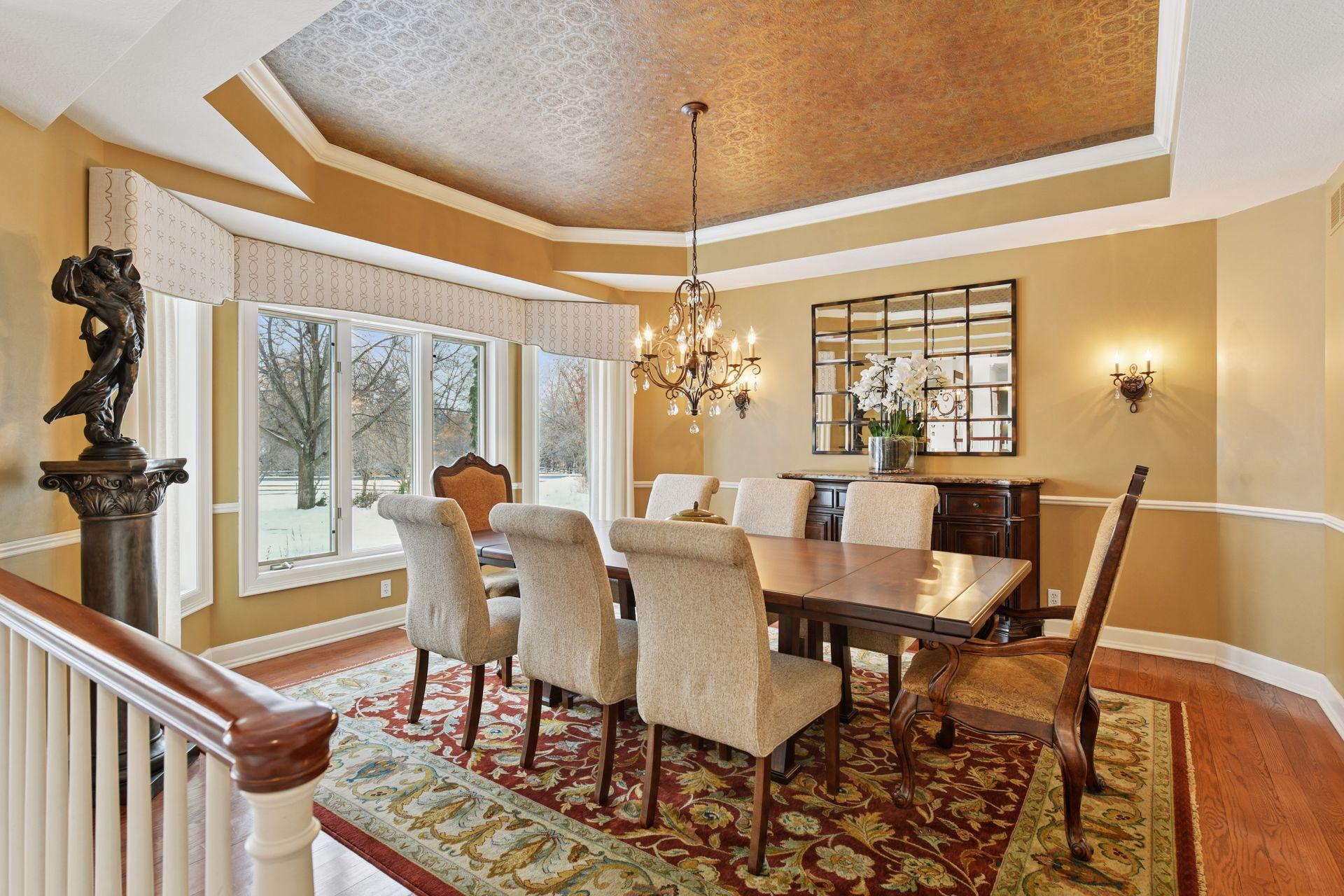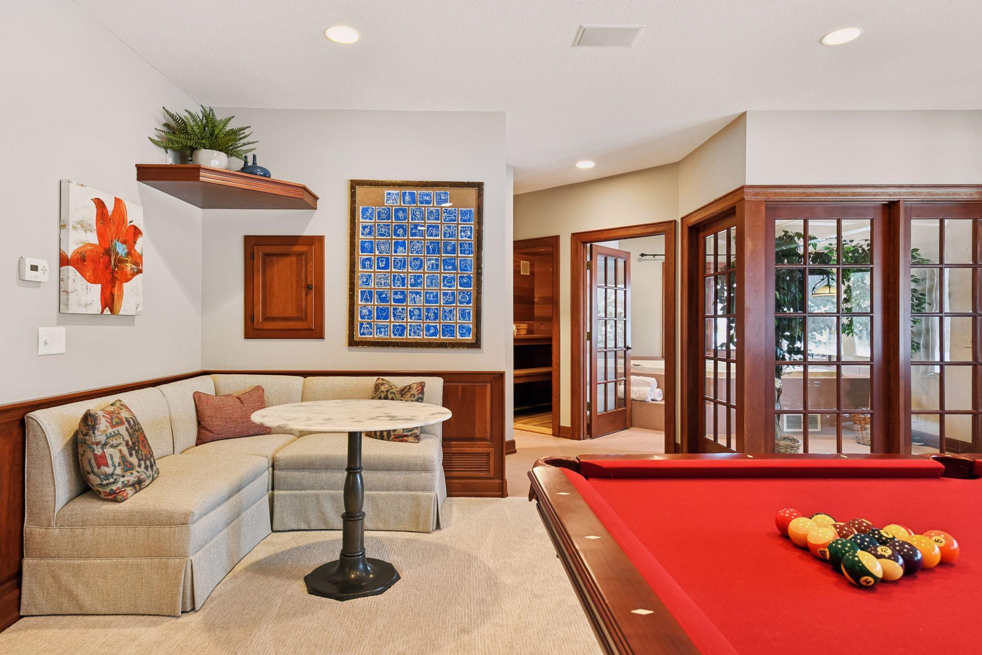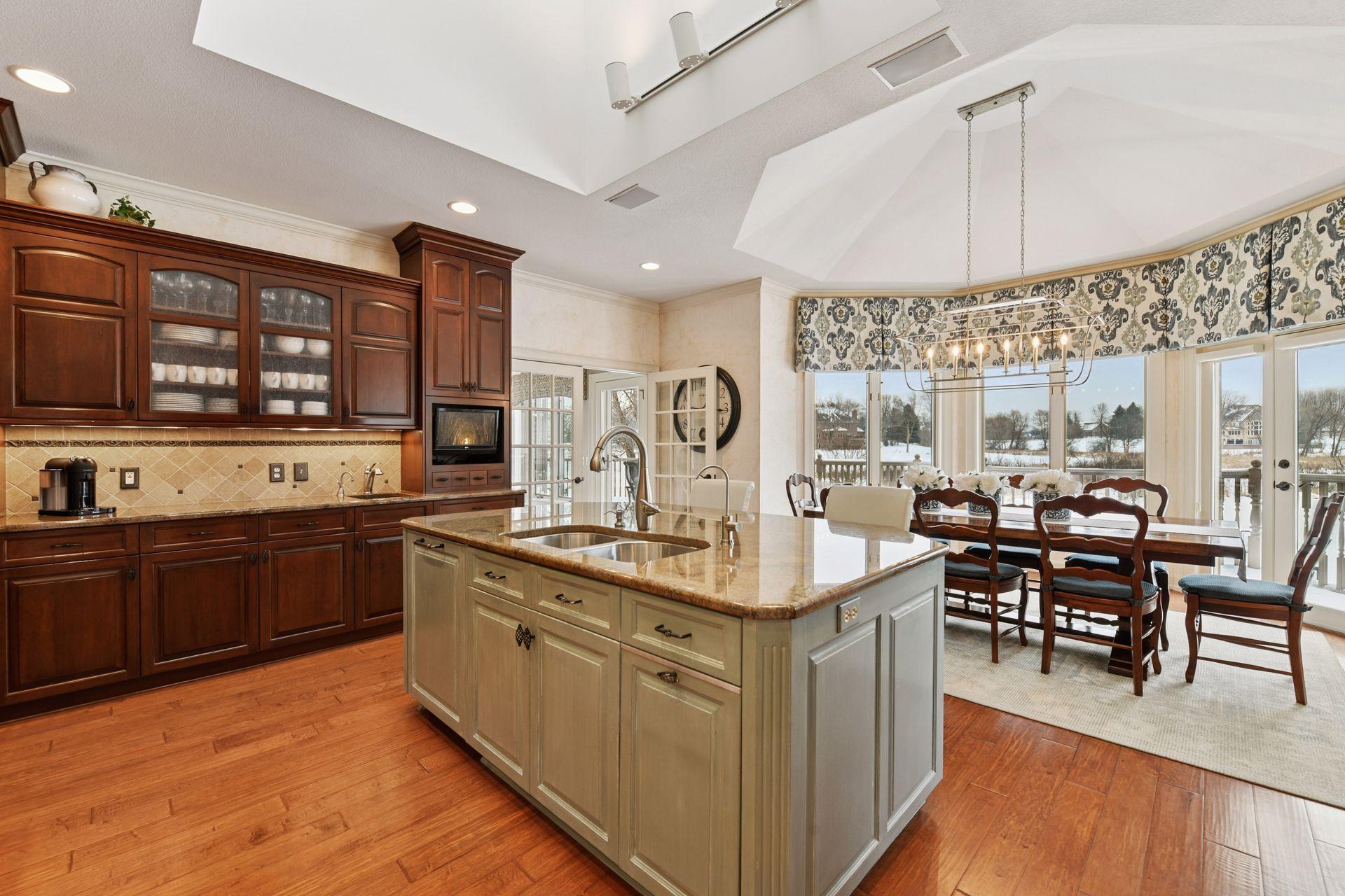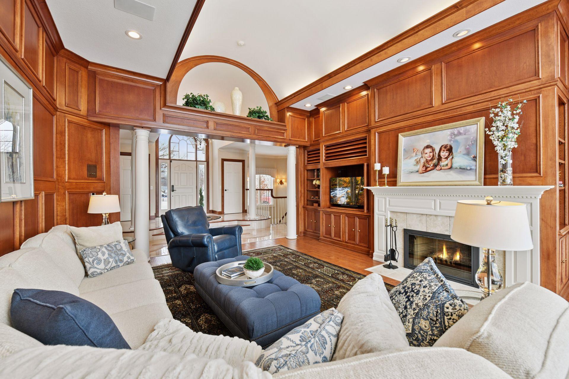 Set upon an enchanting and private 5 acres site designed for recreation. This masterfully crafted walkout one-level home features panoramic nature views overlooking manicured grounds and peaceful ponds. Upon entering you are greeted with a stunning barrel-vault ceiling leading through the living room to a wall of windows that invites in the impressive vistas. Richly paneled walls and cozy wood burning fireplace, make it the perfect gathering spot. The gourmet kitchen is appointed with top-of-the-line appliances, center island with seating, ample cabinet space, granite counters, walk-in pantry, vaulted ceiling and a generous informal dining space. The main level primary suite showcases a large bay window and access to the back deck that stretches the length of the home. Enjoy the private bathroom retreat with dual vanities, walk-in shower, soaking tub and two substantial walk-in closets. Two more bedrooms and full bathroom round out the owner’s wing. The main level also offers a formal dining room, living room, 4-season porch/office, laundry, spacious outdoor deck, and more. Entertainment abounds in the lower level! Enjoy a generous sized family room with newer bi-fold Marvin doors that open to the backyard and patios. A full 2nd kitchen, game room with space for billiards, and indoor spa room with hot tub and sauna are not to be missed. Two more bedrooms with private ¾ bathrooms, exercise room, and large storage room complete the walkout lower level. Delight in the backyard oasis complete with large pool including diving board, basketball hoops, and slide. Wonderful entertaining terraces with built-in outdoor kitchen including grill, 2 refrigerators, and warming drawer. Then relax at the gas fire pit overlooking the scenic pond. Car enthusiasts will appreciate the main level 3 car heated garage, 2 ½ car lower garage and the large finished storage room above the lower garage. Neighborhood tennis courts with pickleball lines! It’s all here!