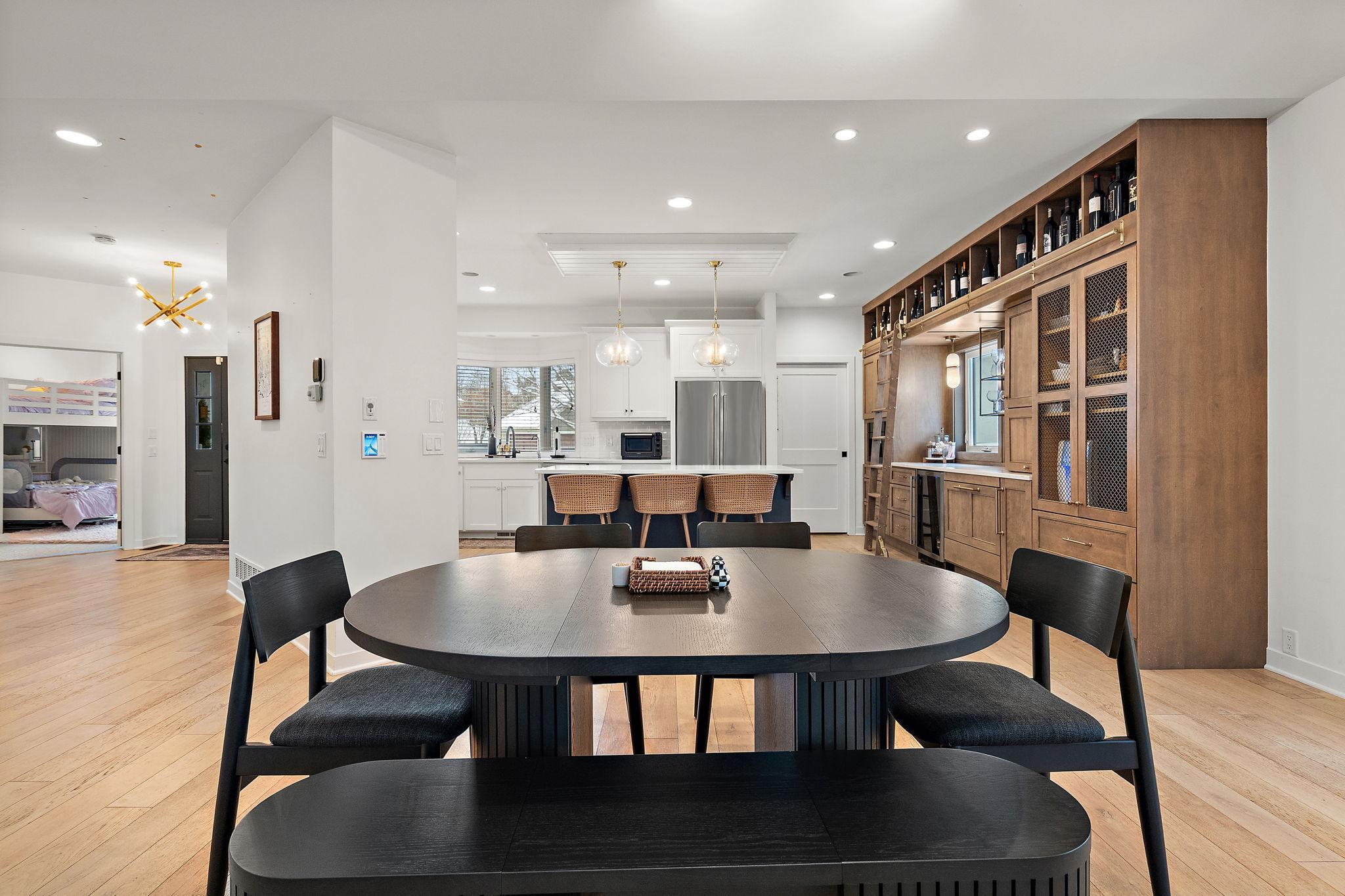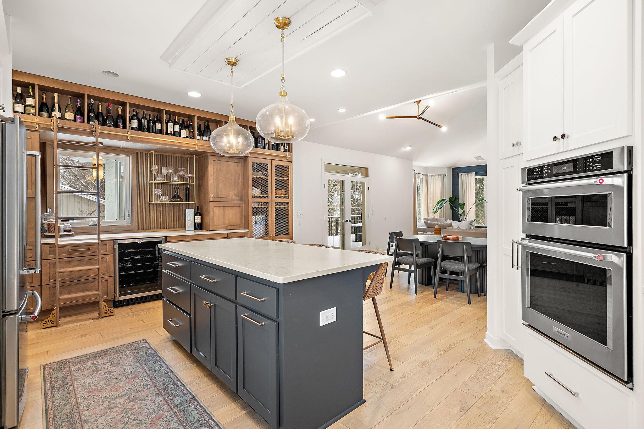 Experience elevated luxury in this exceptional Parkwood Knolls renovation, where timeless design meets modern innovation. Fully remodeled with designer-inspired finishes and extraordinary attention to detail, this one-of-a-kind Edina residence offers an unmatched blend of sophistication, comfort, and functionality. The stunning gourmet kitchen serves as the heart of the home, featuring a massive center island, stone countertops, premium stainless appliances, built-in coffee bar with plumbed Miele espresso machine, Monogram nugget ice maker, Fisher & Paykel refrigerator drawers, wine refrigeration, and custom cabinetry throughout. Matte-finish maple and new engineered hardwood floors, soaring 9+ foot and vaulted ceilings, custom millwork, Anderson windows, and curated designer lighting create a refined yet inviting atmosphere. The luxurious primary suite is a true retreat with dual walk-in closets and a spa-inspired private bath. Thoughtfully designed for both everyday living and entertaining, the home features a grand dining room, built-ins, modernized fireplace with shiplap feature wall, specialty sound system wired throughout, sauna, exercise room, wet bar with custom cabinetry, and beautifully remodeled bathrooms. Extensive recent upgrades include new paint throughout, new water heater, air exchange system, washer and dryer, updated internal and external speaker systems, Alarm.com security with cameras and smart controls, and new window treatments. This home has a sought-after location with priority open enrollment to Edina Schools, offering both flexibility and access to one of the area’s most prestigious districts. This well-appointed home features a functional layout with generous living spaces, quality finishes, and thoughtful updates throughout ideal for both everyday living and entertaining. Enjoy convenient access to parks, shopping, dining, and major roadways, making it an ideal blend of comfort and location. Whether you’re looking for space, school flexibility, or long-term upside, this home delivers. The walkout lower level opens to an exceptional outdoor oasis designed for both relaxation and entertaining. Enjoy two new Trex decks (2024), an extended paver patio, professionally leveled yard with new retaining wall, in-ground trampoline, hot tub with all-season television and electric cover, invisible fence, permanent exterior lighting, and extensive professional landscaping enhancements creating a private, resort-like setting. Additional exterior improvements include a new roof in 2021, fresh exterior paint, and a heated garage with new door and custom storage systems. Ideally located in the highly sought-after Parkwood Knolls neighborhood, this extraordinary home offers true turnkey luxury with exceptional quality and detail throughout.