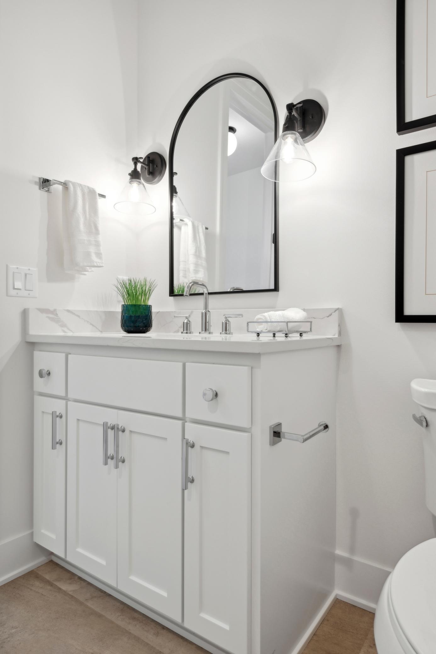 The main-level owner’s suite includes a freestanding tub, tiled shower and floors, double-sink vanity, and a walk-in closet. Additional main-level features include a dedicated laundry room, spacious mudroom with custom bench, and convenient everyday storage.