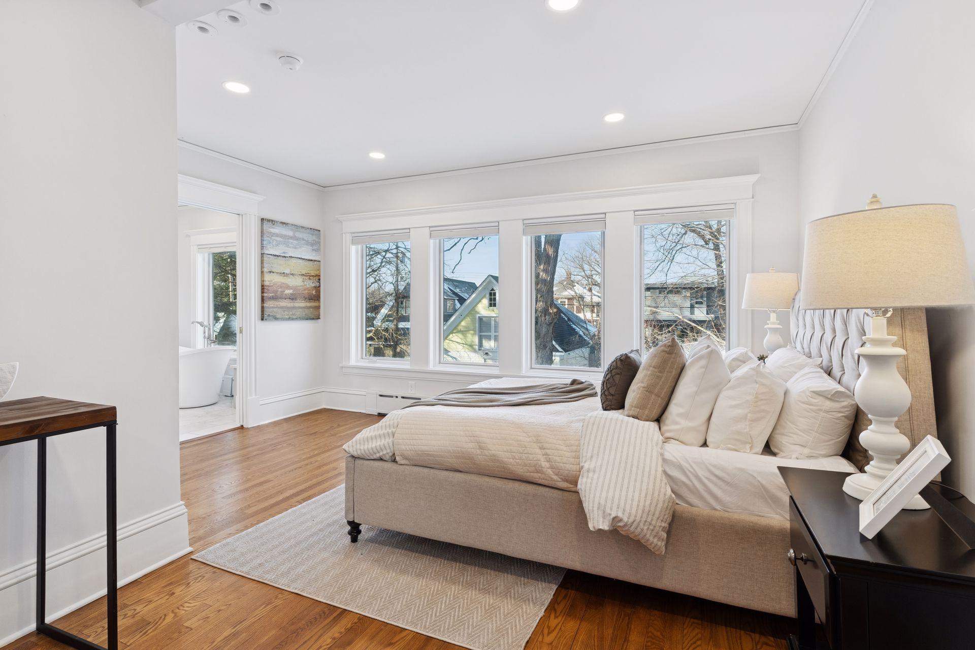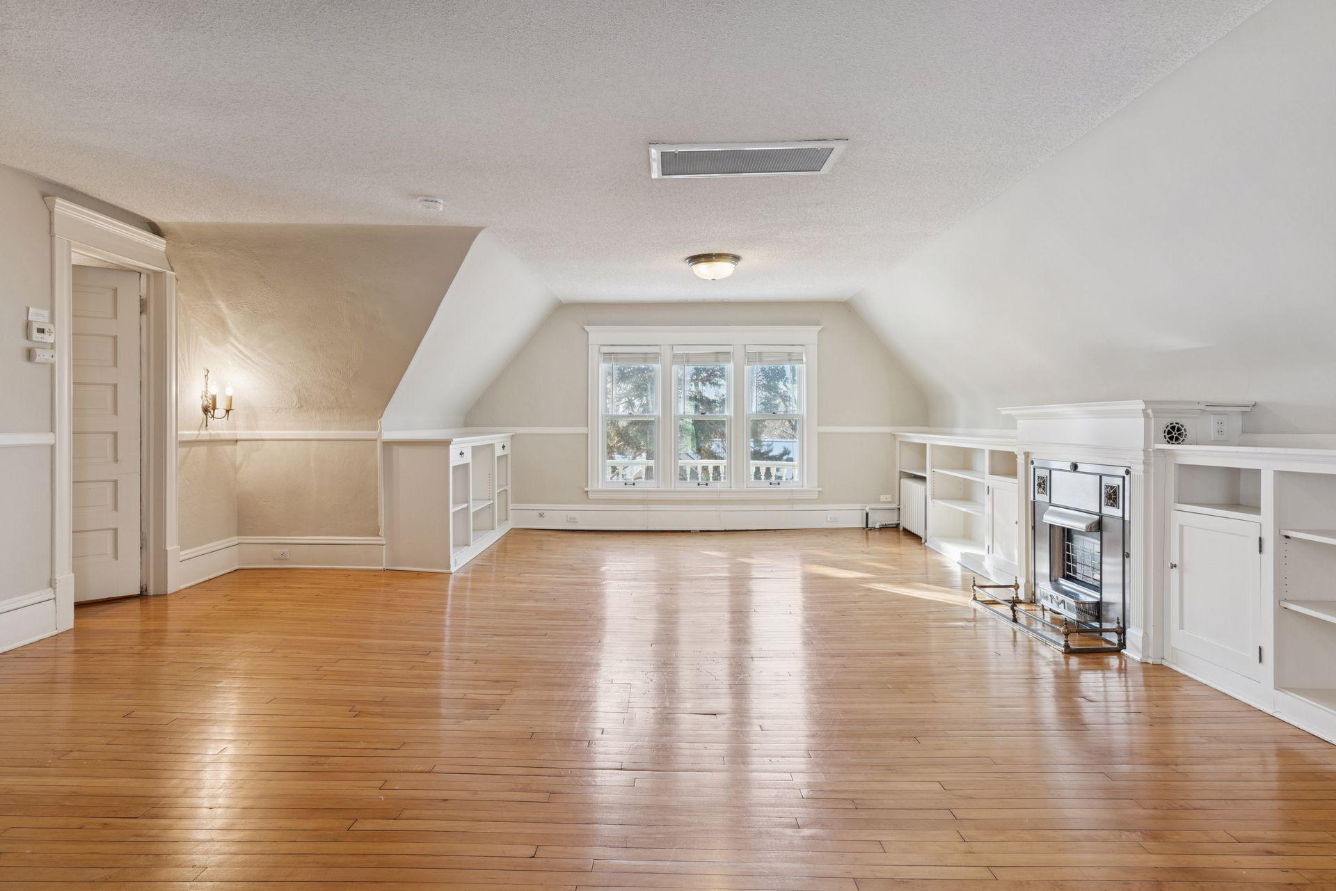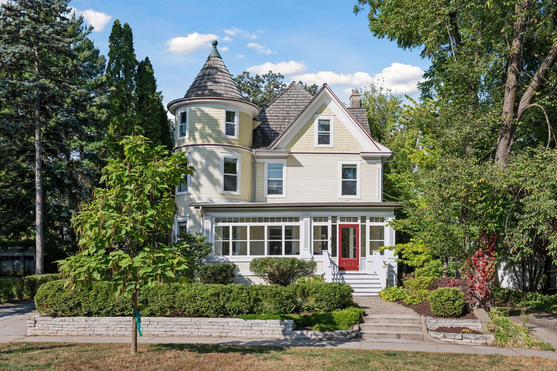 Landmark Linden Hills residence on a double lot, just steps from Lake Harriet, including a thoughtfully enhanced old-growth “forest". This Queen Anne has been carefully maintained and updated with respect for its 1910 architecture. Original woodwork throughout, including inlaid hardwood floors, six-panel doors, built-ins, deep moulding and beamed ceilings. Second floor features new primary suite and 3 additional spacious bedrooms. Two porches include a front porch and south-facing sunroom. Third floor includes an amusement room with gas fireplace, fifth bedroom and additional turret room. Lower-level ¾ bath with heated floor, custom cabinetry and glass shower. Recent updates include new windows throughout much of the home, main-floor mudroom and powder room with dog wash, new primary suite with tiled bath and walk-in shower, plus interior and exterior paint.
