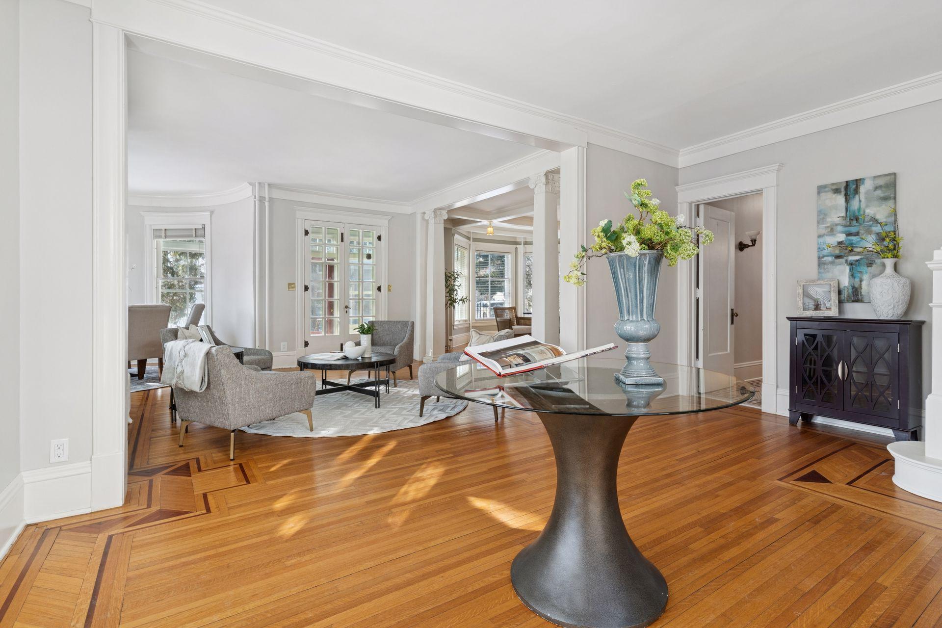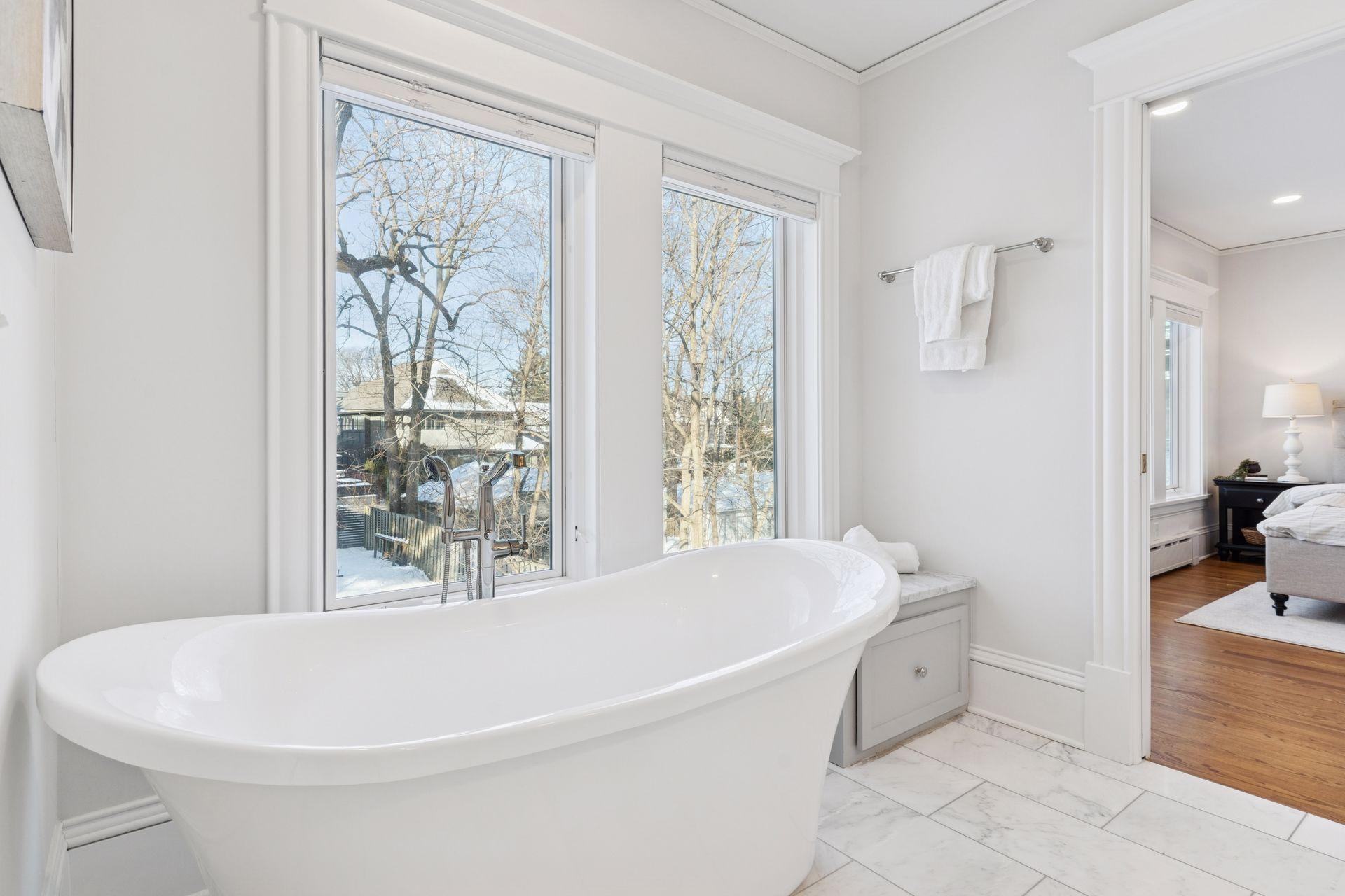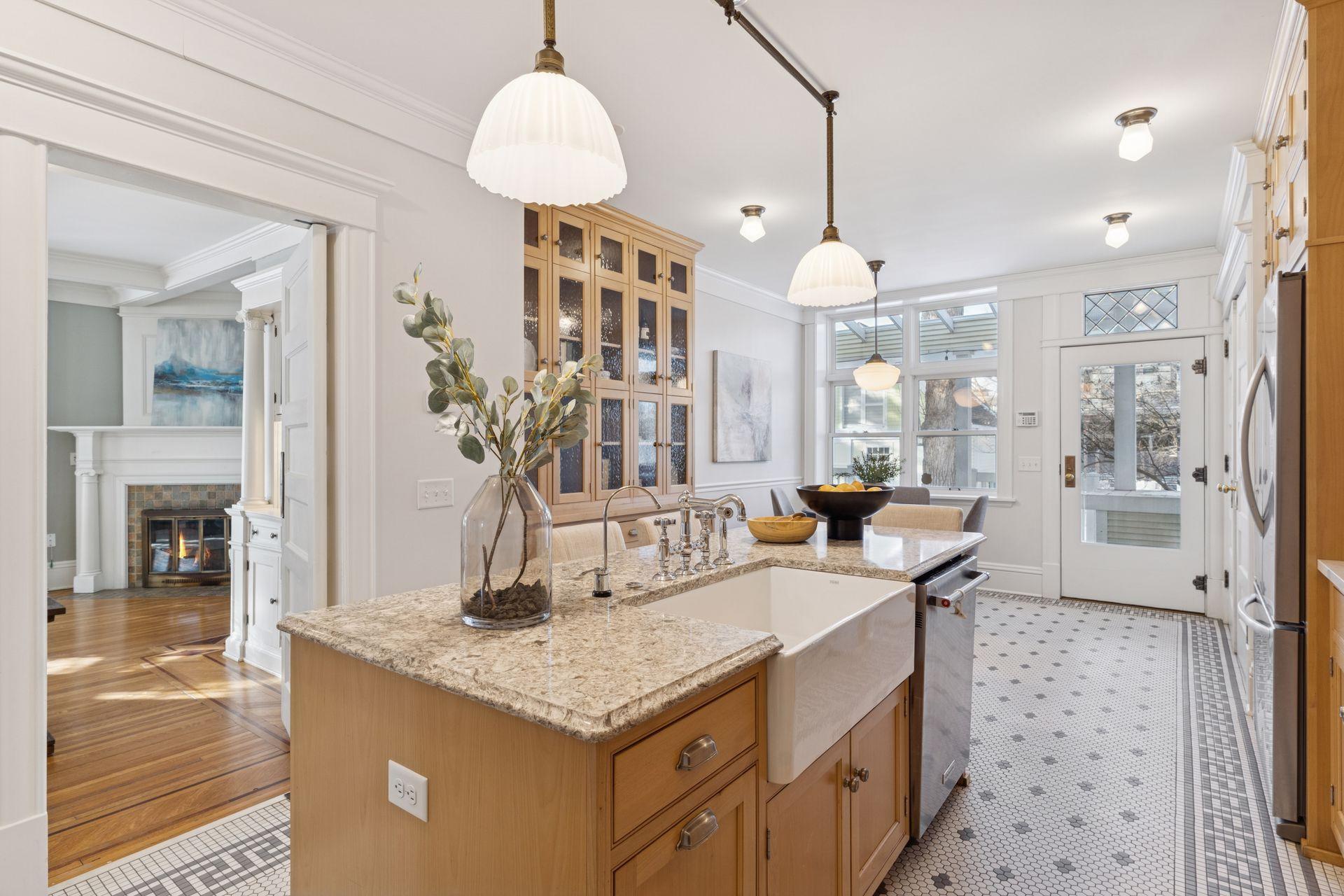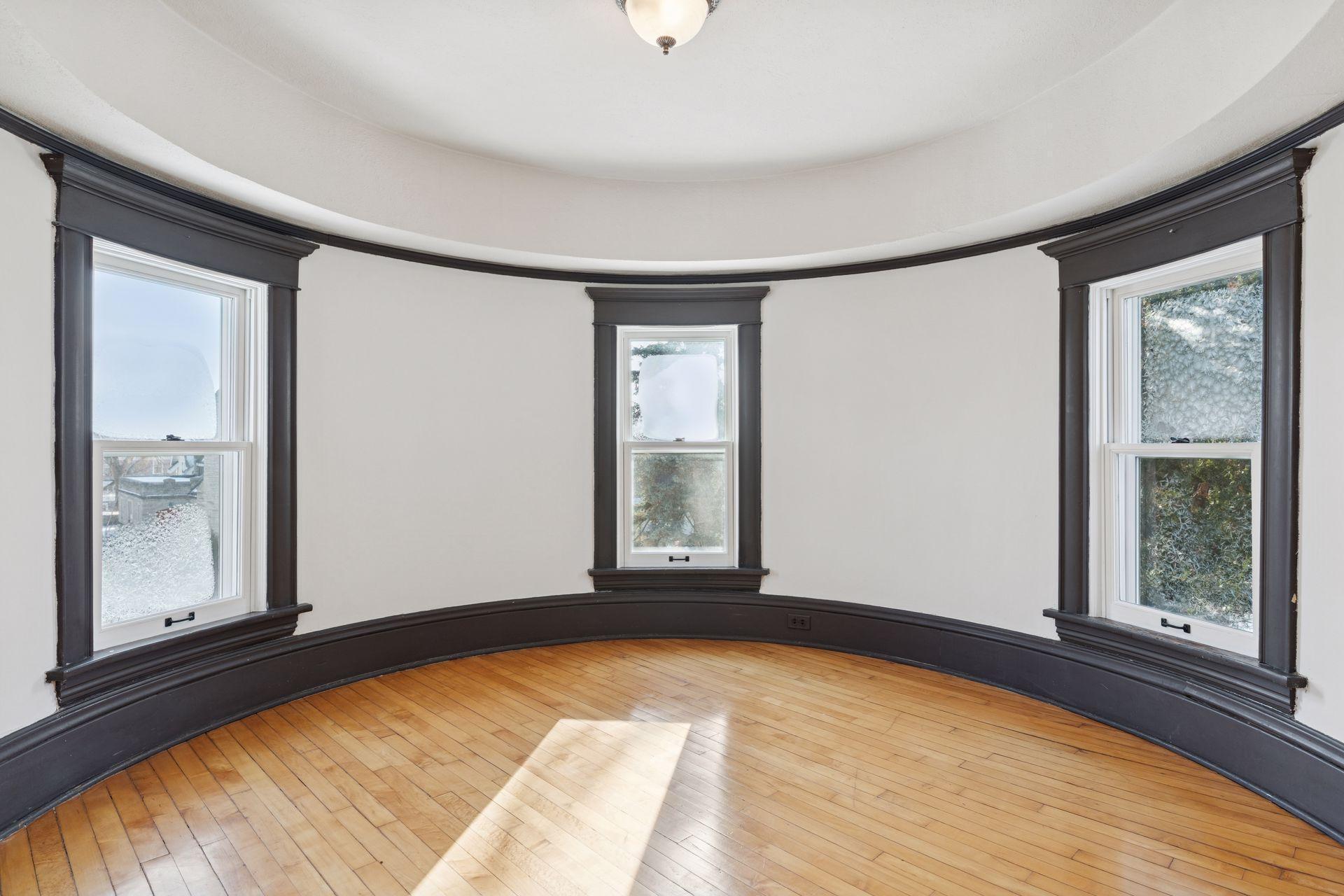 Landmark Linden Hills residence on a double lot, just steps from Lake Harriet, including a thoughtfully enhanced old-growth “forest". This Queen Anne has been carefully maintained and updated with respect for its 1910 architecture. Original woodwork throughout, including inlaid hardwood floors, six-panel doors, built-ins, deep moulding and beamed ceilings. Second floor features new primary suite and 3 additional spacious bedrooms. Two porches include a front porch and south-facing sunroom. Third floor includes an amusement room with gas fireplace, fifth bedroom and additional turret room. Lower-level ¾ bath with heated floor, custom cabinetry and glass shower. Recent updates include new windows throughout much of the home, main-floor mudroom and powder room with dog wash, new primary suite with tiled bath and walk-in shower, plus interior and exterior paint.