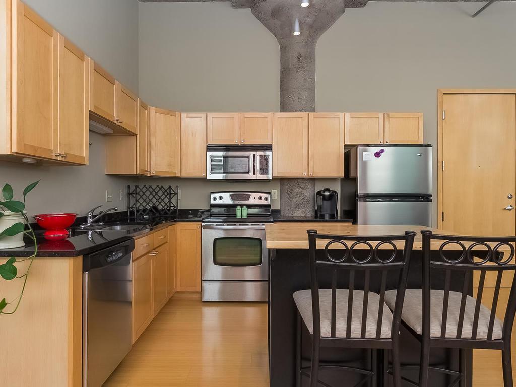 Live in the heart of Downtown East in this historic true loft. Sleek city home with heated underground parking included. Central location, bamboo floors, stainless steel appliances, granite counters, in-unit washer/dryer, gas fireplace and more. One block from skyway access. Gas, water and heat are included in rent. Tenant is responsible for electric and AC.