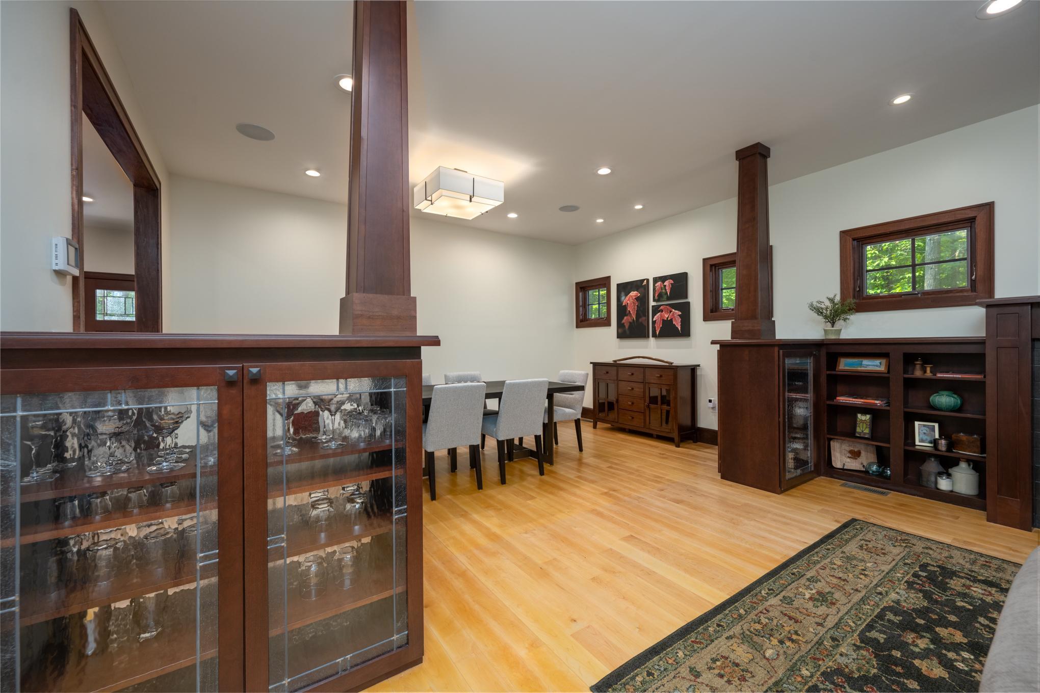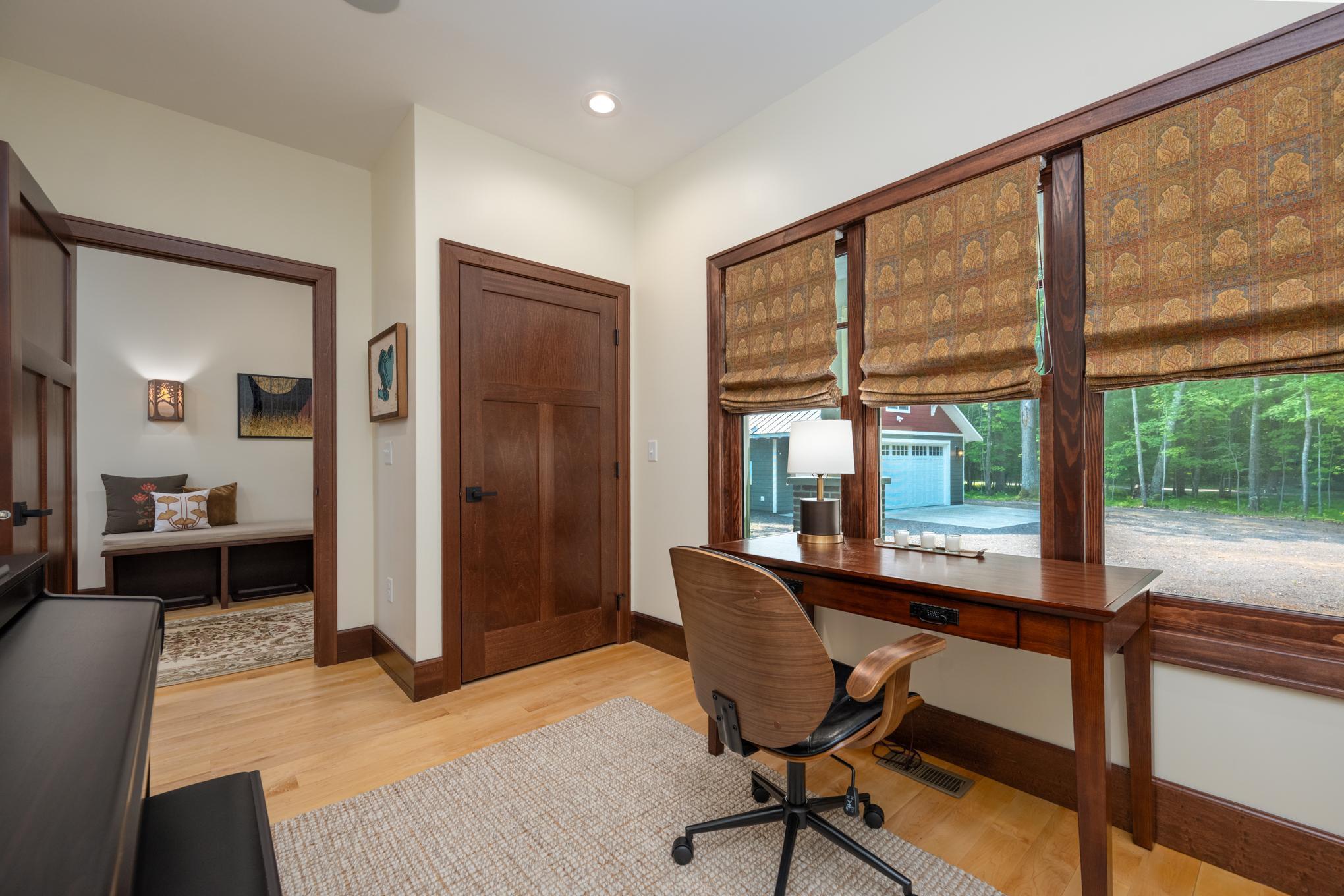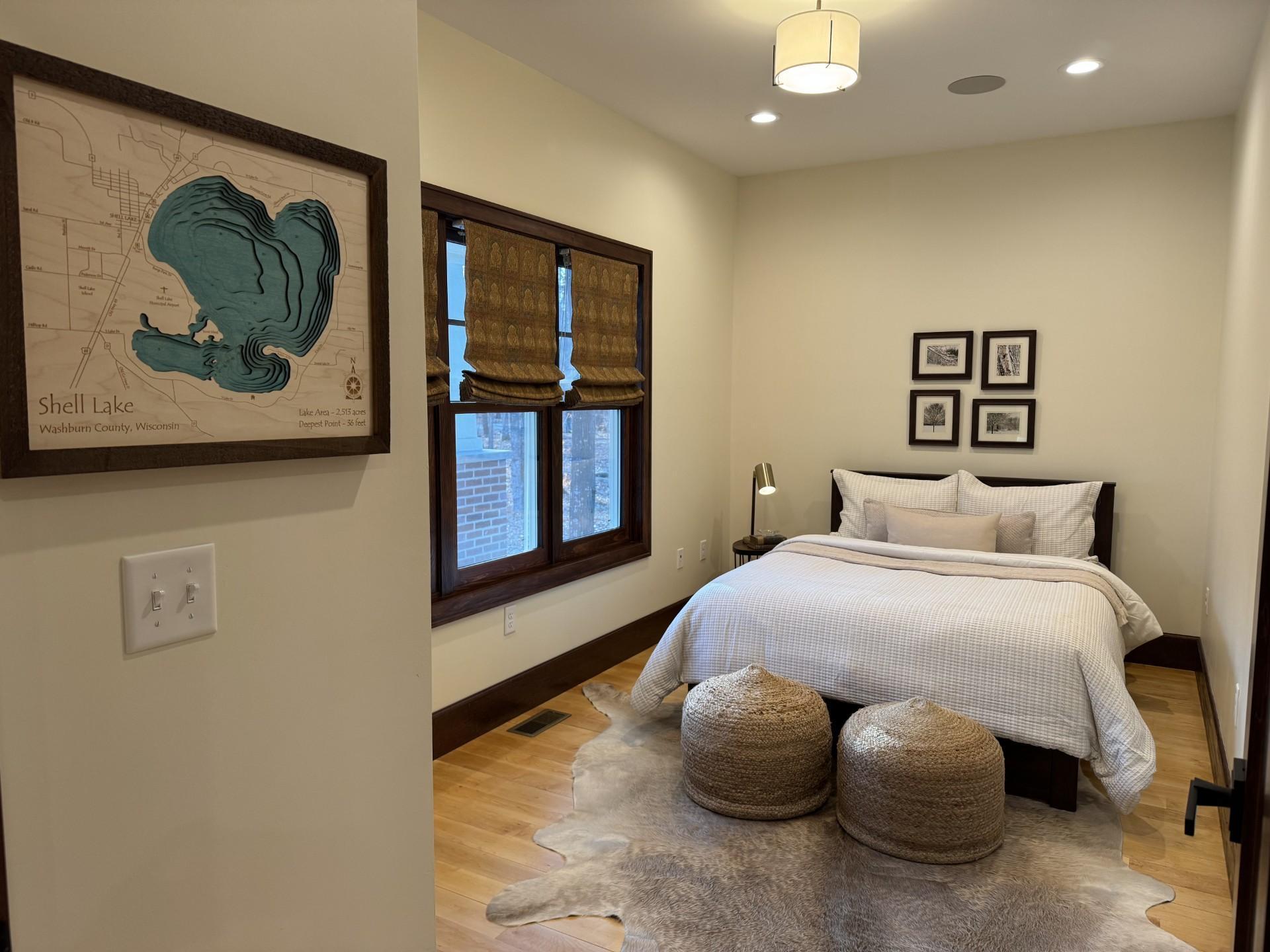 Stunning Craftsman Lake Home on Shell Lake – 150' of Sandy Frontage. Discover the perfect blend of timeless design and modern luxury in this exceptional Craftsman-style home, newly built in 2021 and nestled on 1.7 wooded acres with 150 feet of pristine, sandy shoreline on crystal-clear Shell Lake. This exquisite home welcomes you with its charming covered porch, classic gabled rooflines, and rich architectural detail. Inside, every inch showcases thoughtful craftsmanship and premium materials, including custom-built cabinetry, marble and travertine finishes, and top-of-the-line appliances that elevate the gourmet kitchen. Designed for both comfort and style, the open-concept living spaces are filled with natural light and serene wooded views, making it ideal for everyday living or entertaining lakeside. Step outside and enjoy the large, shady backyard — a peaceful retreat that gently slopes toward the lake, creating a perfect setting for outdoor dining, campfires, and easy lake access. Additional features include: Detached garage with ample storage; Unfinished bunkroom above the garage – perfect potential for a guest suite, studio, or rec space. The quiet, wooded setting offering privacy and a true up-north retreat feel. Set on Shell Lake’s 2,580-acre crystal-clear waters, this property is a gateway to year-round recreation. Enjoy swimming, boating, and fishing in the summer, with access to snowmobile and ATV routes connecting to Wisconsin’s extensive trail system in the winter. All just 100 miles from the Twin Cities metro area, making it an easy weekend escape or a full-time haven.