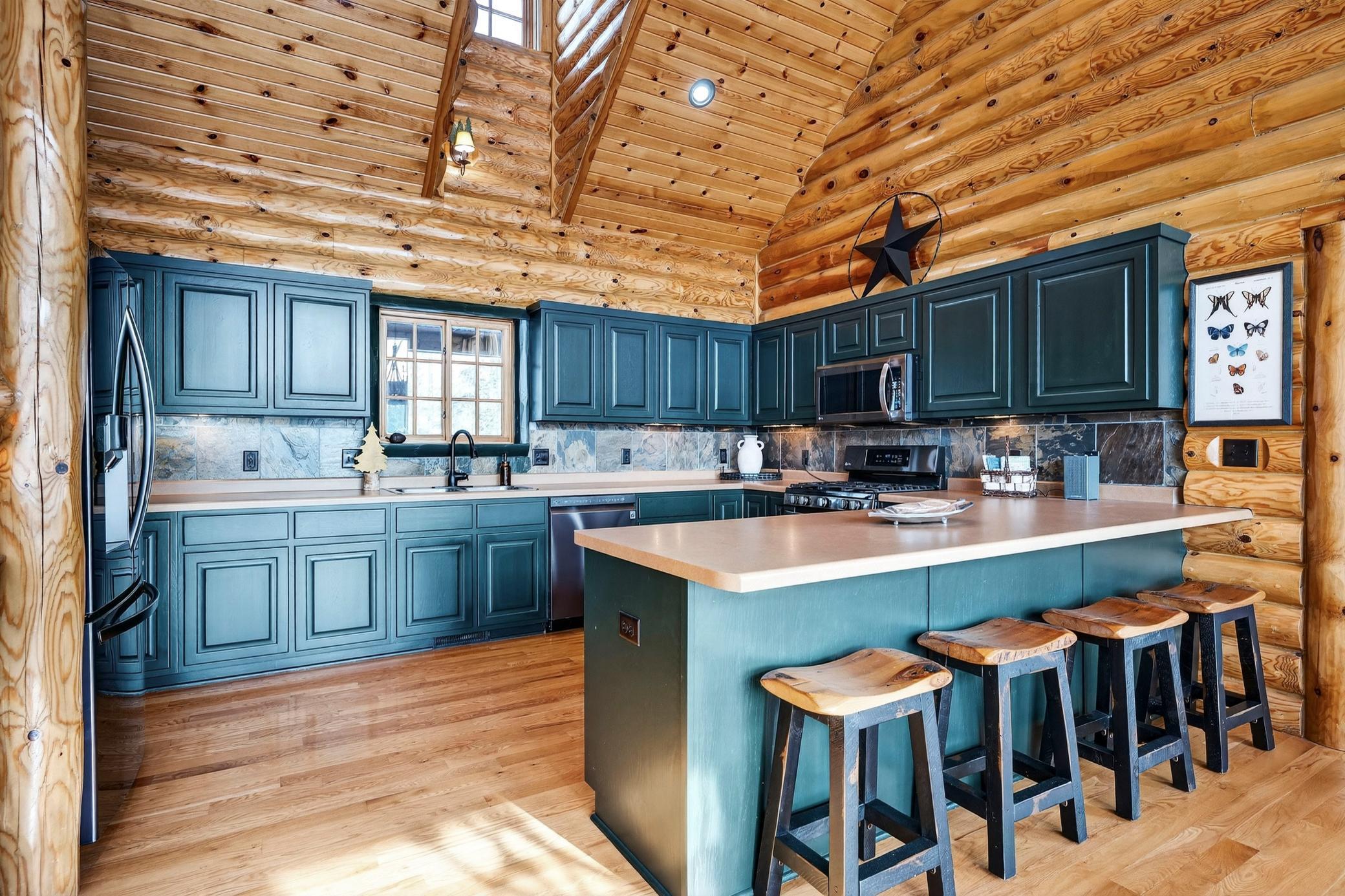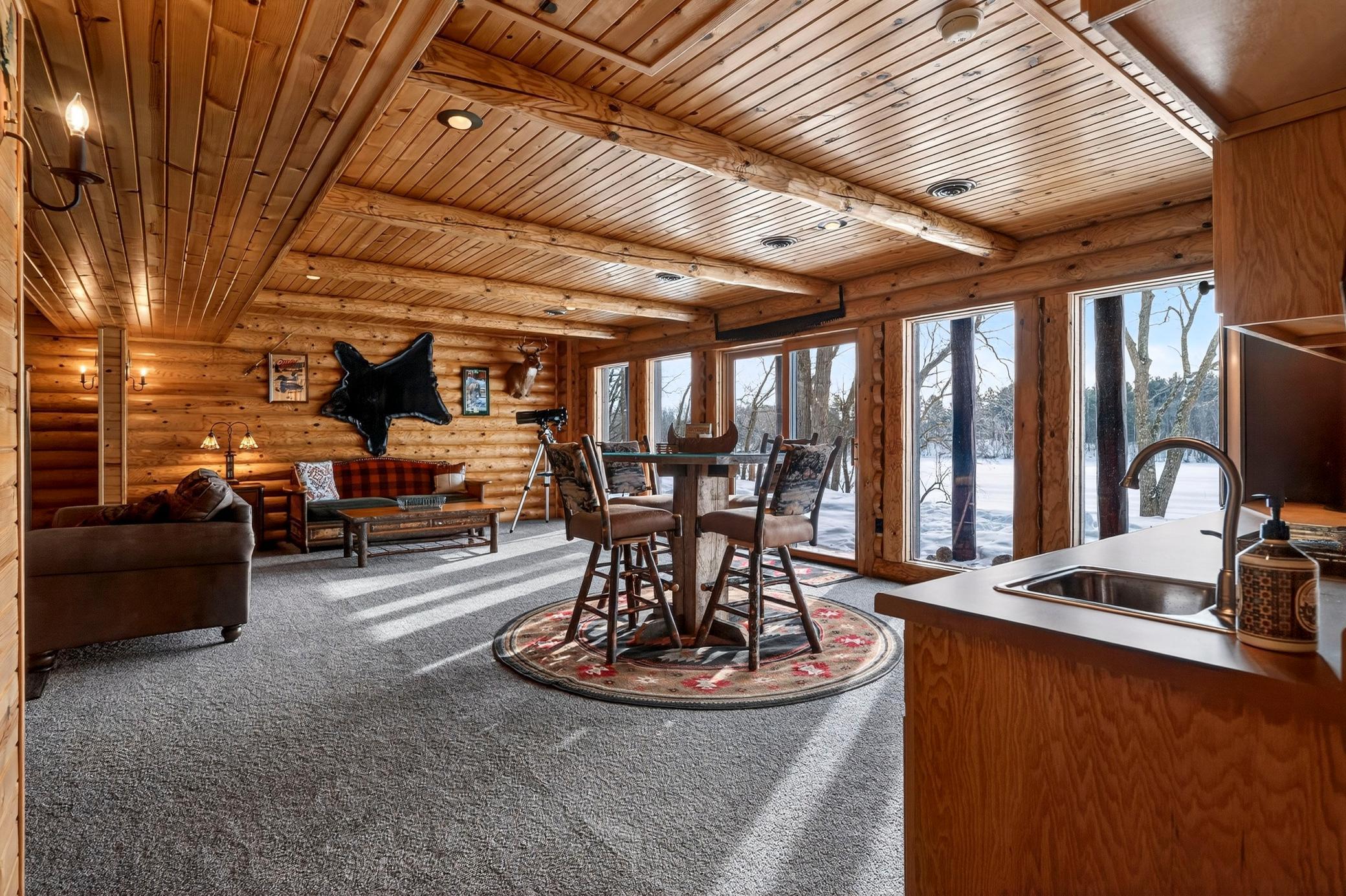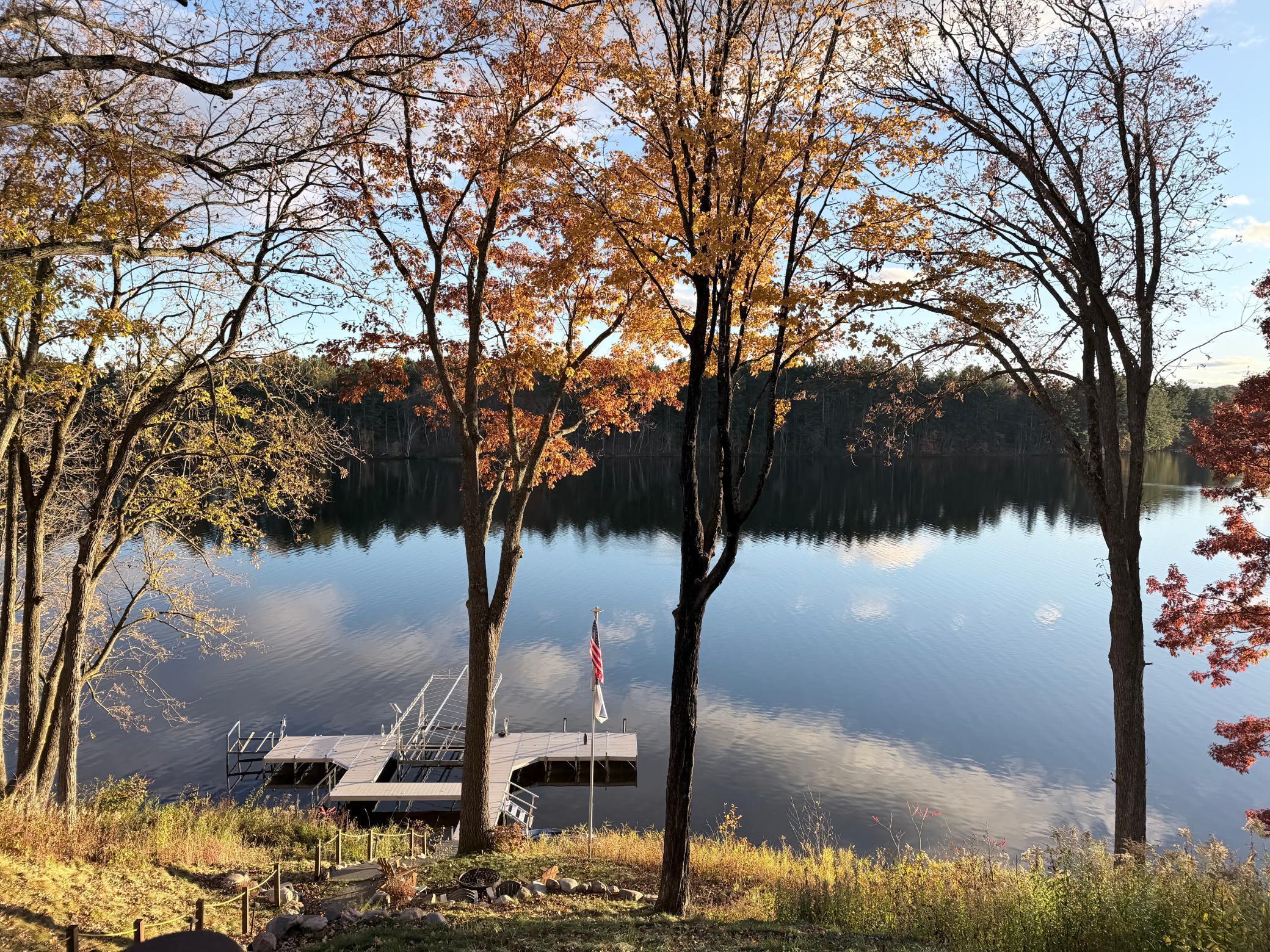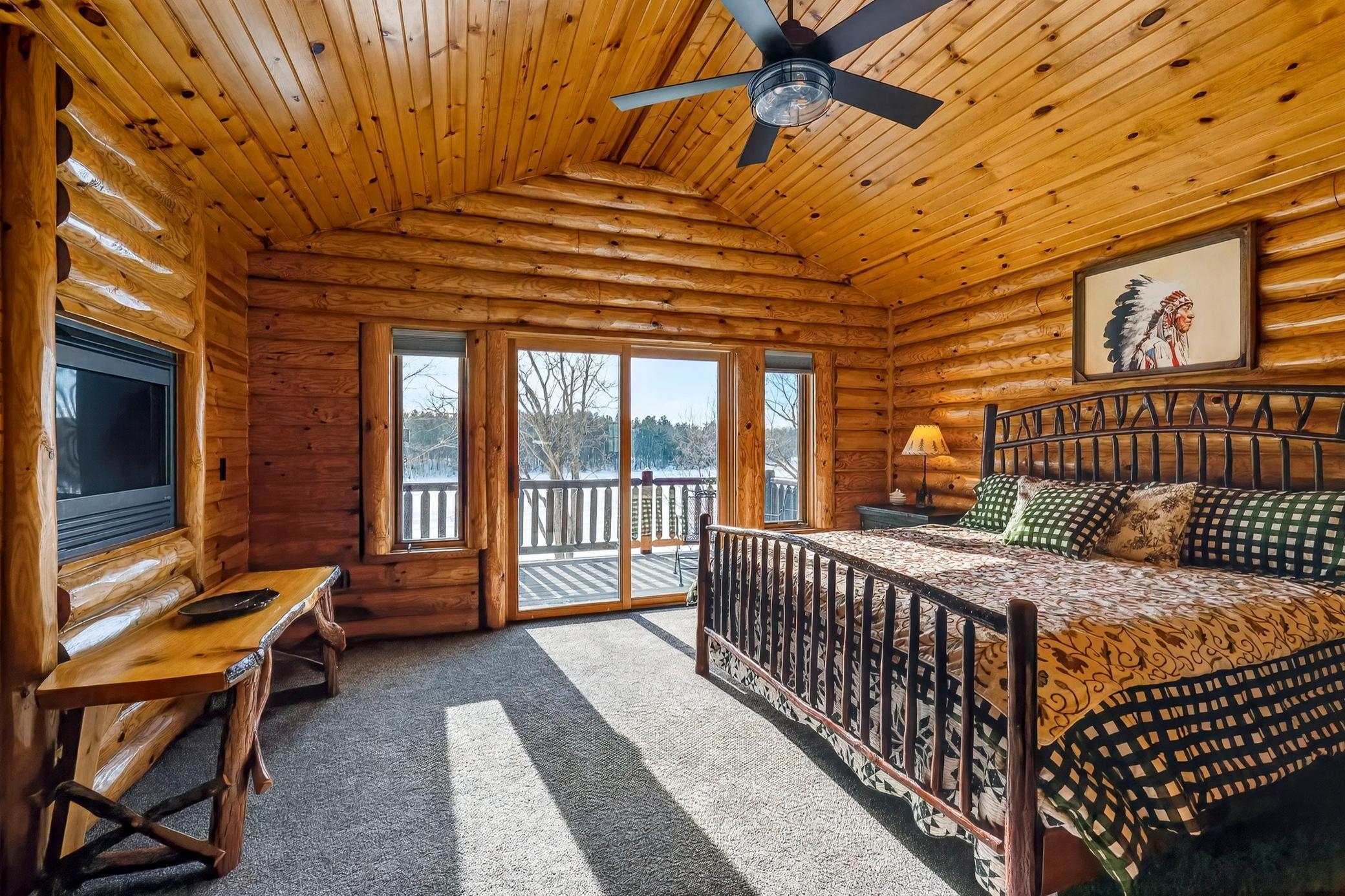 Stunning property on Long Lake! This immaculately cared-for 4-BR, 3-BA chalet-style home offers 3,200 sq ft of open-concept living space with breathtaking lake views on a private lot. Inside, soaring wood ceilings, half-log interior details, hardwood floors, heated tile bathrooms, and a stone fireplace create a cozy yet elegant retreat. The walk-out lower level features a spacious family room with a wet bar, perfect for entertaining. Wake up to lake views from the luxurious owner’s suite with fireplace. Enjoy outdoor living with a screened porch, decks, a lakeside patio, and a professionally landscaped lot with stone steps to the shoreline and a sandy swimming area. Recent updates include a new 50-year roof, heated garage, stamped concrete sidewalks, circular driveway, new laundry room, new furnace, Generac generator, and more. Long Lake offers 19 miles of exceptional fishing and boating, scenic shoreline, sandbars, a marina, and a boat-up golf course. ATV trails nearby. Sold with some furnishings.