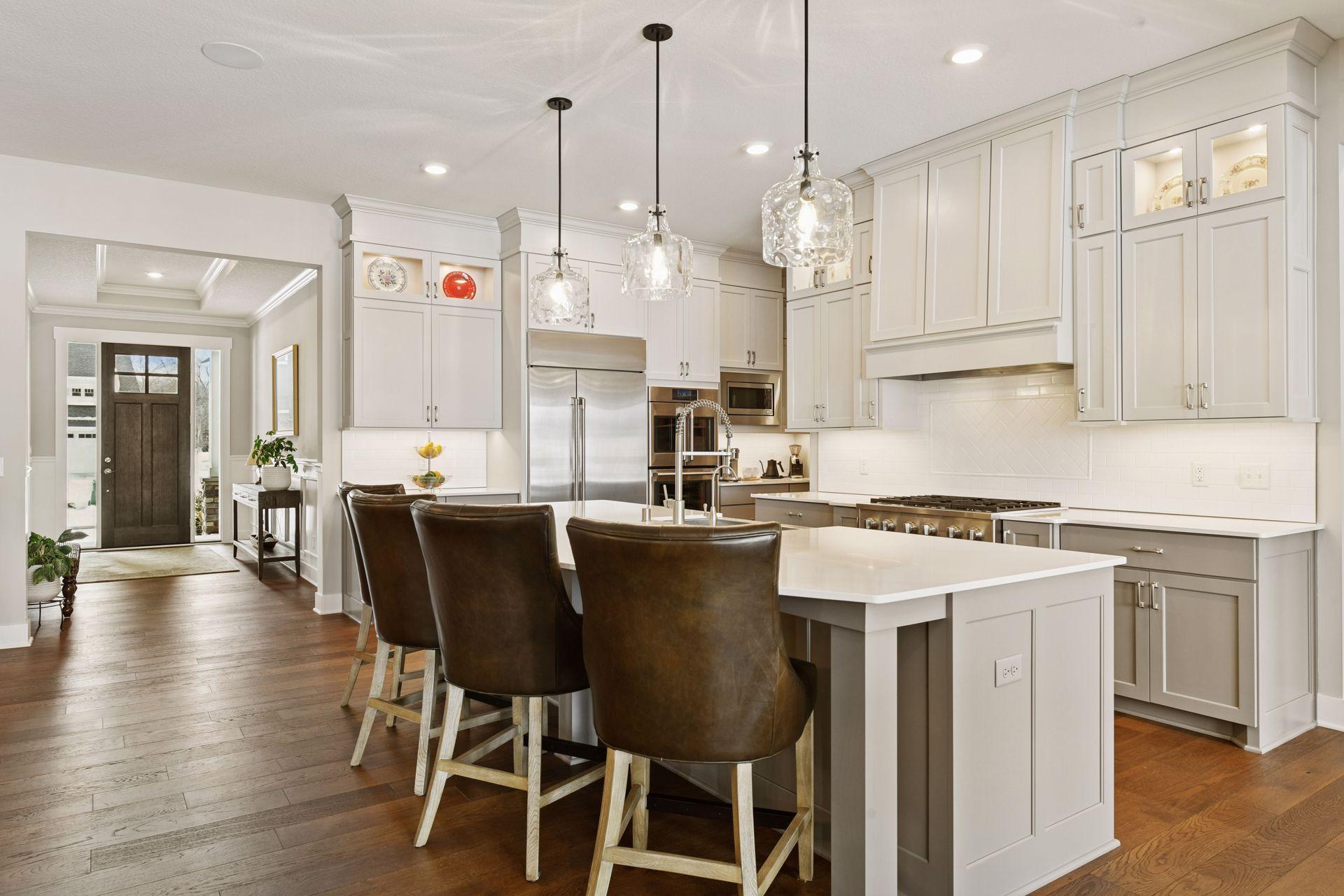 Introducing 24545 Bentgrass Way, nestled in the desirable Minnetonka Country Club neighborhood of Shorewood, Minnesota. Located minutes from charming boutiques and restaurants of Downtown Excelsior and the scenic shores of Lake Minnetonka, this luxurious one level home offers the perfect blend of elegance, comfort and convenience. This home features four bedrooms and four bathrooms, thoughtfully designed for both everyday living and effortless entertaining. The open-concept main level is as functional as it is beautiful, showcasing custom cabinetry, hardwood floors, designer lighting, and 10-foot ceilings throughout. The gourmet kitchen features a large center island, quartz countertops, walk-in pantry, and professional-grade stainless steel appliances. The inviting living room centers around the gas fireplace, while large windows fill the space with southern exposure. Enjoy gathering around the fire in the oversized three season porch overlooking the spacious backyard. The primary bedroom suite showcases a spa-inspired bathroom with soaking tub, walk-in shower, dual vanities, heated floors, and spacious walk-in closet. The main level also includes two additional bedrooms, and laundry room. Designed by w.b. builders, the lower level offers a family room, stunning full wet bar with custom cabinetry, game area, exercise room, guest bedroom, and bathroom. Entertain outdoors around the inground pool. Maintenance-free sundeck, pergola, gas-lined fire pit, and professional landscaping complete this luxurious home. Close to the Lake Minnetonka LRT Regional Trail for miles of walking and biking. Located in the award-winning Minnetonka School District.