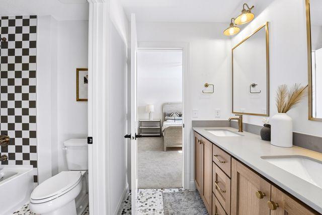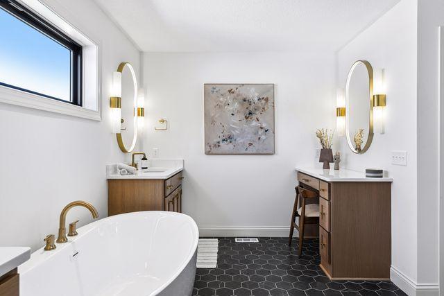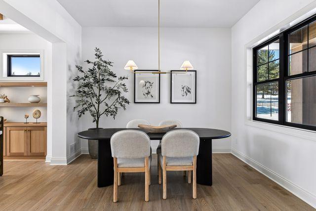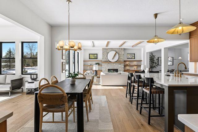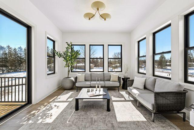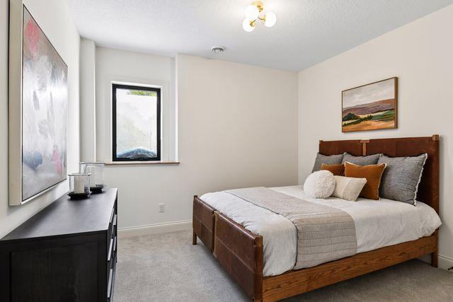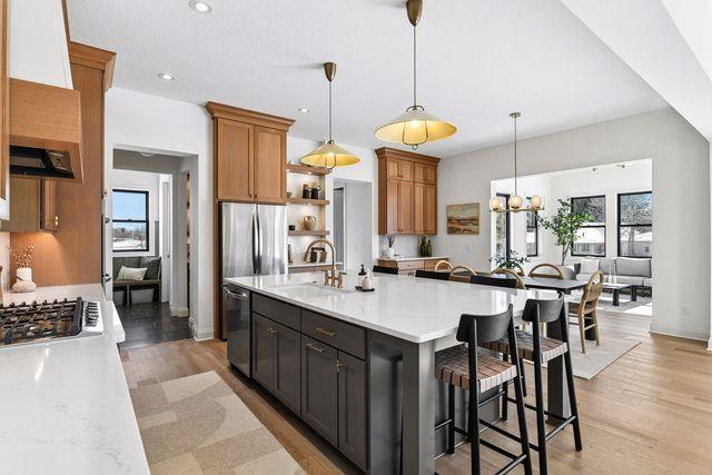 Located on some of the most beautiful land in Chanhassen, this serene neighborhood features executive wooded homesites, with an abundance of parks and trails within the community. Stonegate Builders proudly presents the Harriet. This home has 5 bedrooms, 5 bathrooms and an open floor plan ideal for entertaining. The entrance leads to an open dining area that extends into the great room and kitchen. The gourmet kitchen offers an oversized island, enameled and wood custom cabinetry, quartz countertops, a separate prep area and a pocket office. The great room, with beamed ceilings, features a beautiful fireplace. Also featuring large windows, dinette, sunroom, grill deck with stairs, mudroom and a powder room. The upper level includes the primary suite , luxury bath with soaking tub, tiled shower and walk-in closet. Also included are three additional bedrooms, full bath, bedroom #4 with a private ensuite bath, and laundry room. The lower level includes bedroom #5 and bath, a spacious recreation room with fireplace and built-ins, walk-up wet bar, and a flex room, all on a walkout lot.