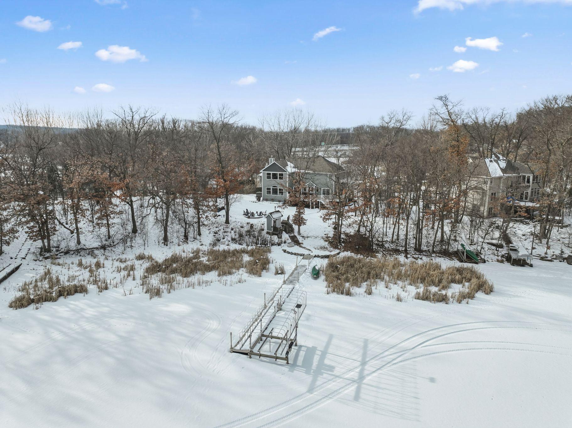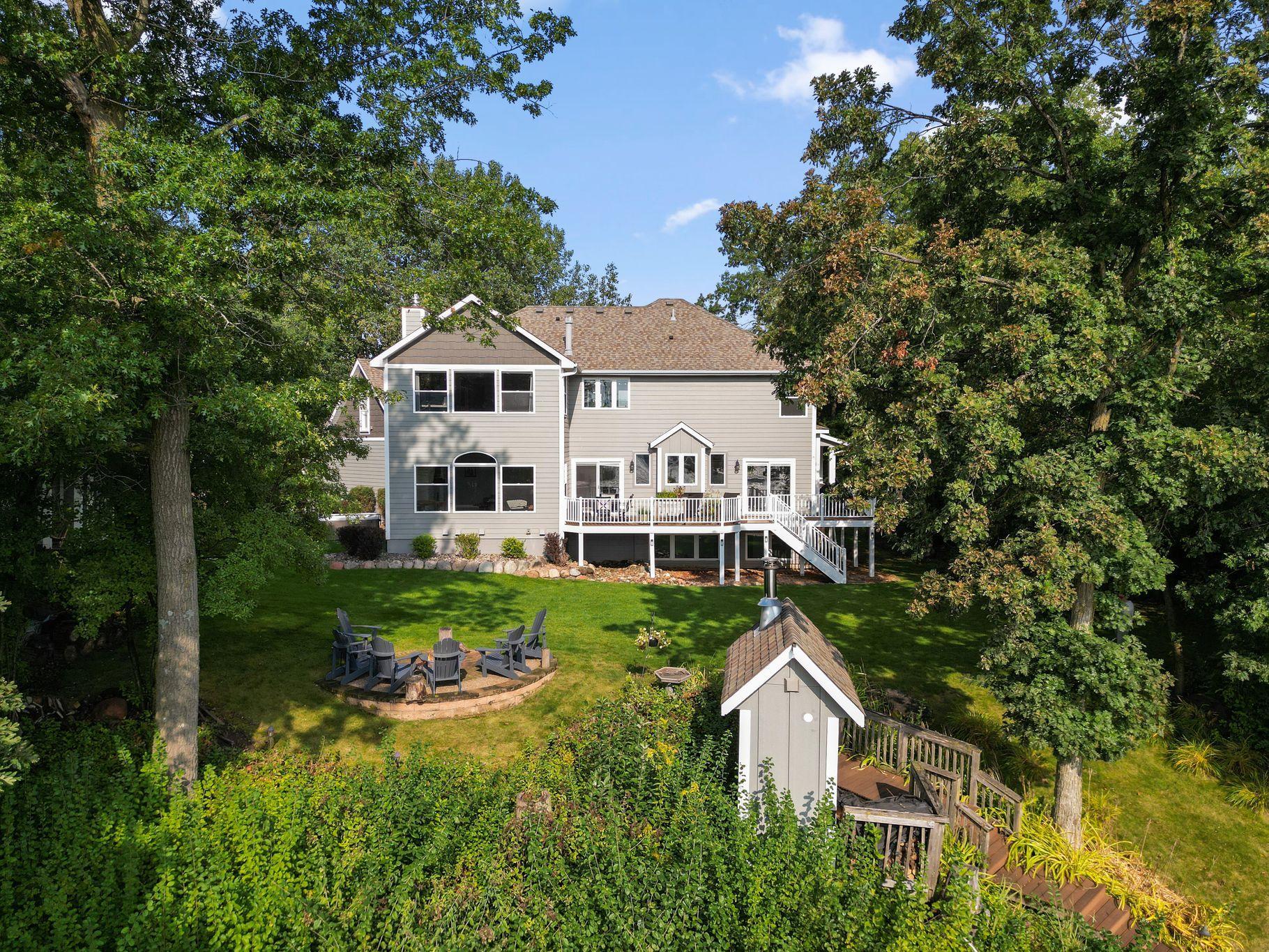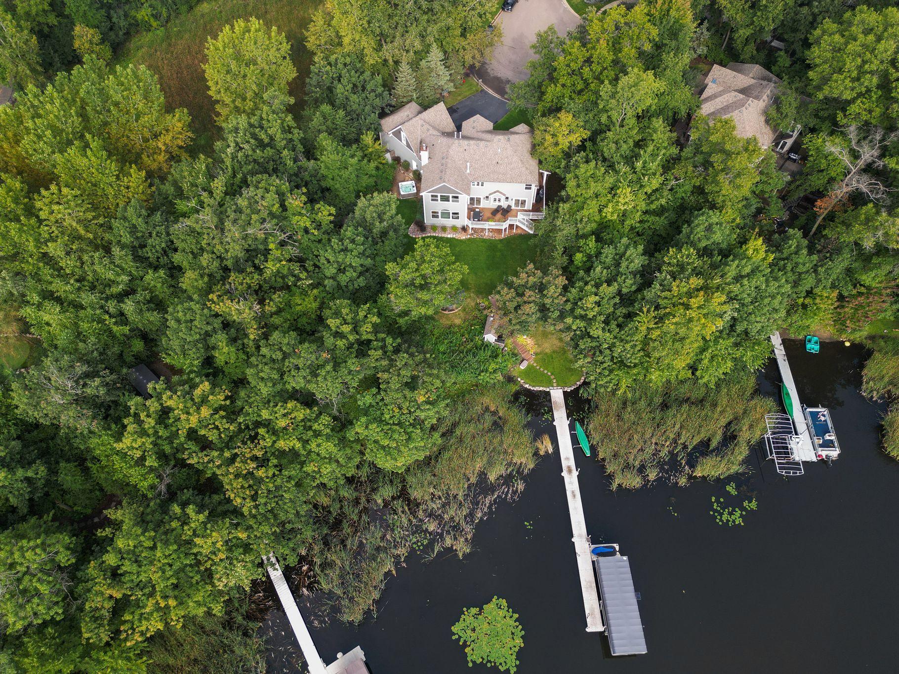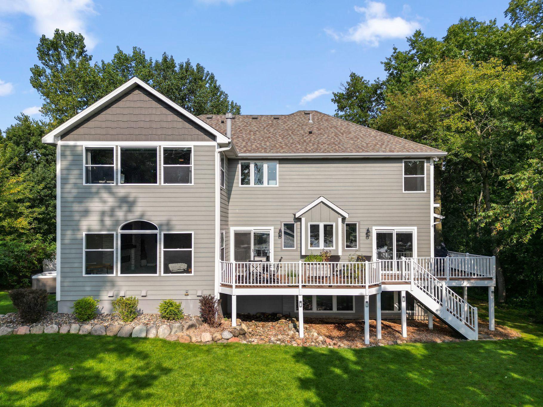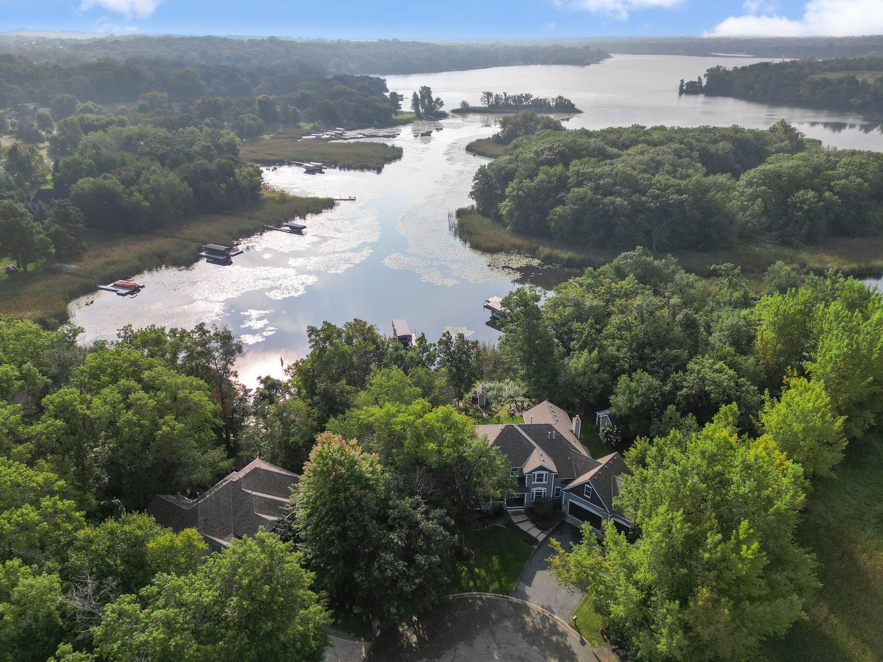 Welcome to Great Oak Shores Point in Lakeville, a convenient getaway. This incredibly remodeled estate has been tastefully remodeled from top to bottom, inside and out. A private and peaceful setting on a .79-acre wooded cul-de-sac lot with approximately 160’ of lake frontage. Easy shoreline access in a deeper bay. Enjoy entertaining, grilling and relaxation on the wrap around deck, firepit, hot tub and sauna. Ranked #4 Best Lake by USA Today in 2025, Lake Marion is a fully recreational lake prime for boating, fishing, swimming at Antlers Park Beach, mountain biking at West Lake Marion Park or exercising around the Juno Trailway. Lakeville Schools are consistently ranked as a Top 10 school district and are highly noted for an excellent athletic program. Convenient to freeway access to the International Airport, shopping and dining in old downtown Lakeville, skiing at Buck Hill that produced Lindsey Vonn, and downtown Minneapolis and St. Paul. This home was built and refreshed into an entertainer’s paradise. As you enter, you’re greeted by an impressive chandelier, wood staircase, luxury vinyl plank flooring throughout, white trim and millwork, shiplap, an office, and a cozy sitting room with library wall, ladder and fireplace. The massive chef’s luxury kitchen has panoramic lake views and is anchored by the massive 18 foot center island with quartzite countertops with ample seating for you and guests, stained maple cabinets, KitchenAid premium appliances with gas range and exhaust hood, icemaker and dual dishwashers. The sun-drenched living room has newer carpet and a toasty warm stone-faced gas fireplace. The upper-level has luxury vinyl plank throughout, a primary suite featuring vaulted ceilings, sunroom with lake views, gas fireplace, dual walk-in closets, spa-like bath with tiled floors, walk in shower, soaker tub and your own private workout studio! The other three upper-level bedrooms are nicely sized and benefit from an upgraded full bath with dual sinks and granite countertop. The lookout lower level has luxury vinyl plank flooring, gas fireplace, a fifth bedroom, walk in tiled shower with dual sinks, and a recreational area with kitchenette and granite countertop. 3+car finished garage with epoxy floors. New LP smart siding and architectural shingles grace the outside. See the video and 3D tour for your own private showing today!