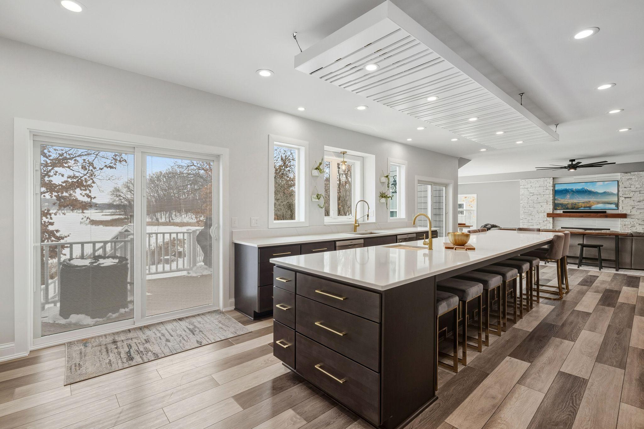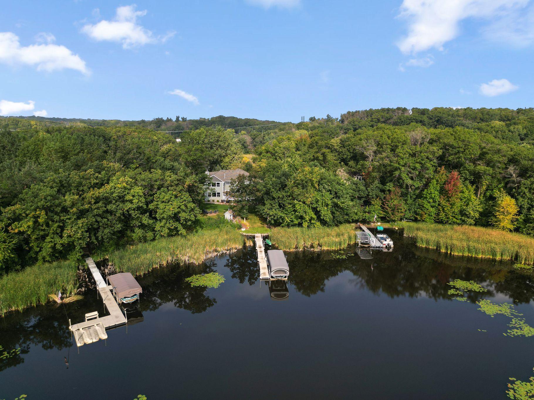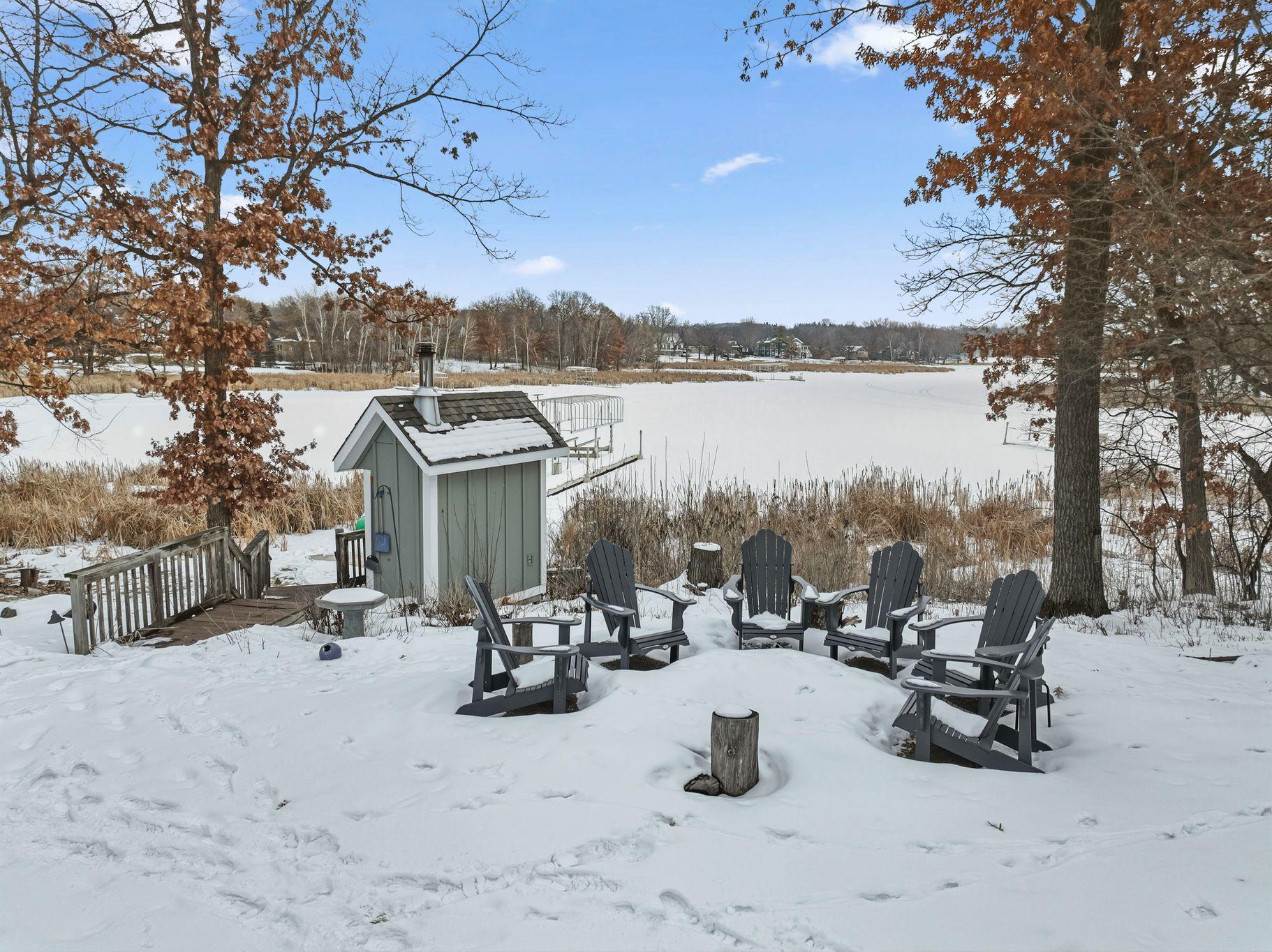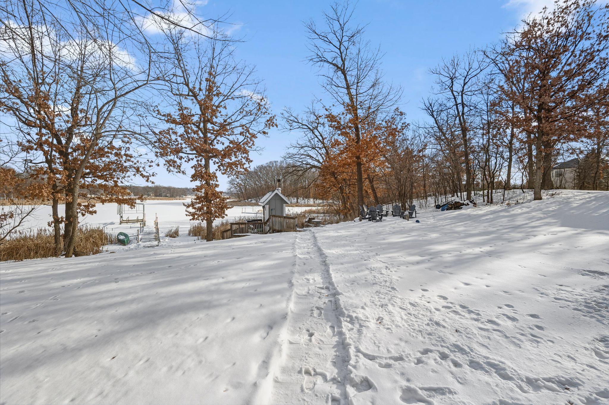 Welcome to Great Oak Shores Point in Lakeville, a convenient getaway. This incredibly remodeled estate has been tastefully remodeled from top to bottom, inside and out. A private and peaceful setting on a .79-acre wooded cul-de-sac lot with approximately 160’ of lake frontage. Easy shoreline access in a deeper bay. Enjoy entertaining, grilling and relaxation on the wrap around deck, firepit, hot tub and sauna. Ranked #4 Best Lake by USA Today in 2025, Lake Marion is a fully recreational lake prime for boating, fishing, swimming at Antlers Park Beach, mountain biking at West Lake Marion Park or exercising around the Juno Trailway. Lakeville Schools are consistently ranked as a Top 10 school district and are highly noted for an excellent athletic program. Convenient to freeway access to the International Airport, shopping and dining in old downtown Lakeville, skiing at Buck Hill that produced Lindsey Vonn, and downtown Minneapolis and St. Paul. This home was built and refreshed into an entertainer’s paradise. As you enter, you’re greeted by an impressive chandelier, wood staircase, luxury vinyl plank flooring throughout, white trim and millwork, shiplap, an office, and a cozy sitting room with library wall, ladder and fireplace. The massive chef’s luxury kitchen has panoramic lake views and is anchored by the massive 18 foot center island with quartzite countertops with ample seating for you and guests, stained maple cabinets, KitchenAid premium appliances with gas range and exhaust hood, icemaker and dual dishwashers. The sun-drenched living room has newer carpet and a toasty warm stone-faced gas fireplace. The upper-level has luxury vinyl plank throughout, a primary suite featuring vaulted ceilings, sunroom with lake views, gas fireplace, dual walk-in closets, spa-like bath with tiled floors, walk in shower, soaker tub and your own private workout studio! The other three upper-level bedrooms are nicely sized and benefit from an upgraded full bath with dual sinks and granite countertop. The lookout lower level has luxury vinyl plank flooring, gas fireplace, a fifth bedroom, walk in tiled shower with dual sinks, and a recreational area with kitchenette and granite countertop. 3+car finished garage with epoxy floors. New LP smart siding and architectural shingles grace the outside. See the video and 3D tour for your own private showing today!