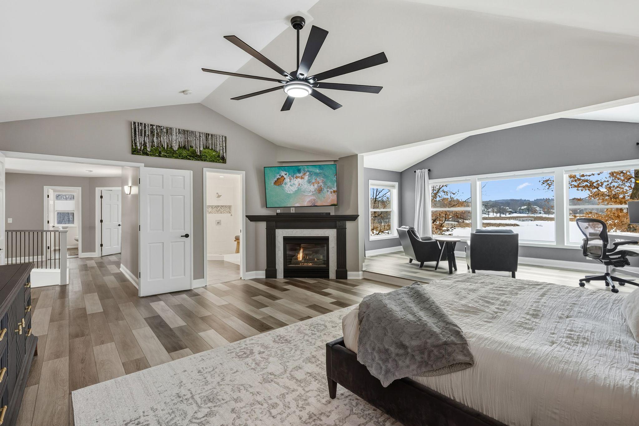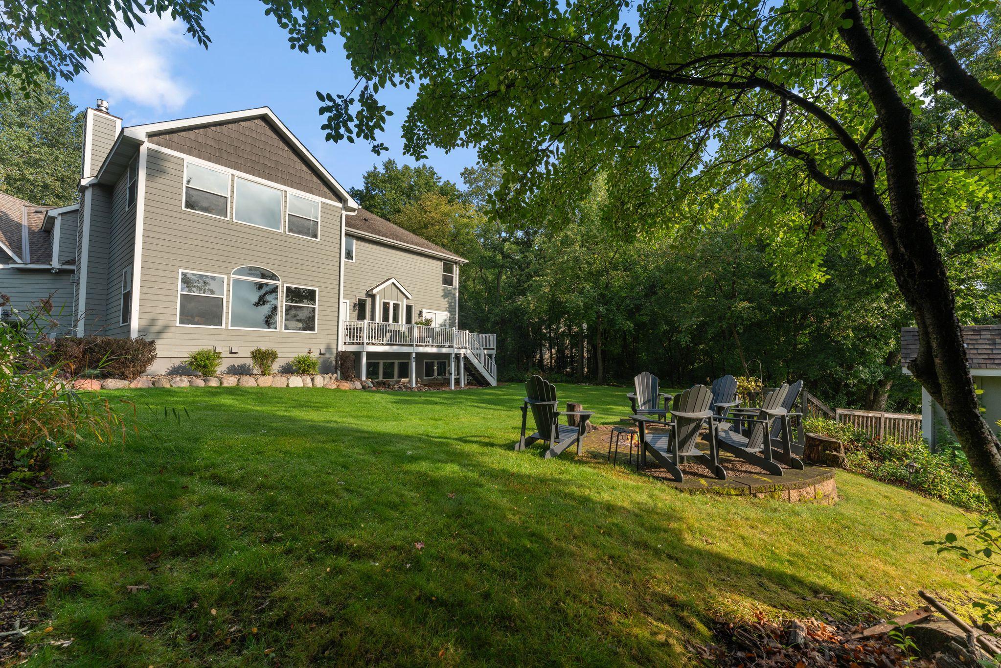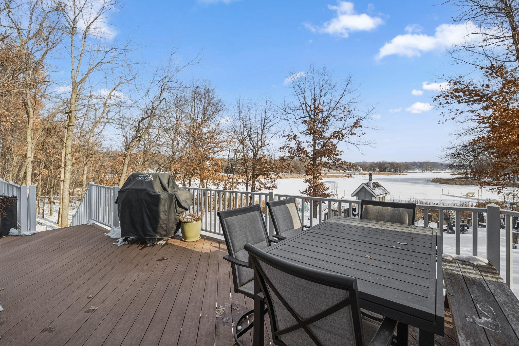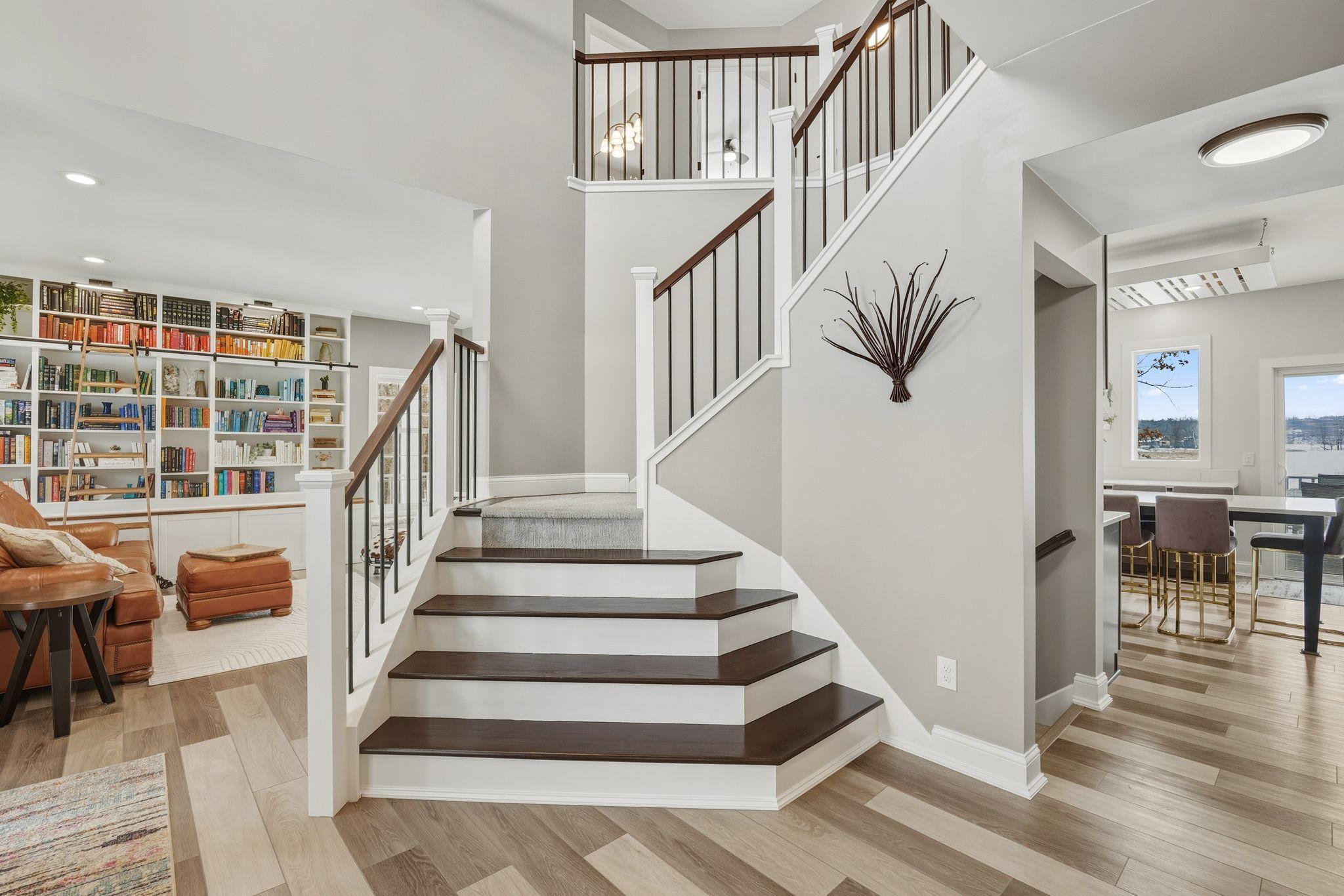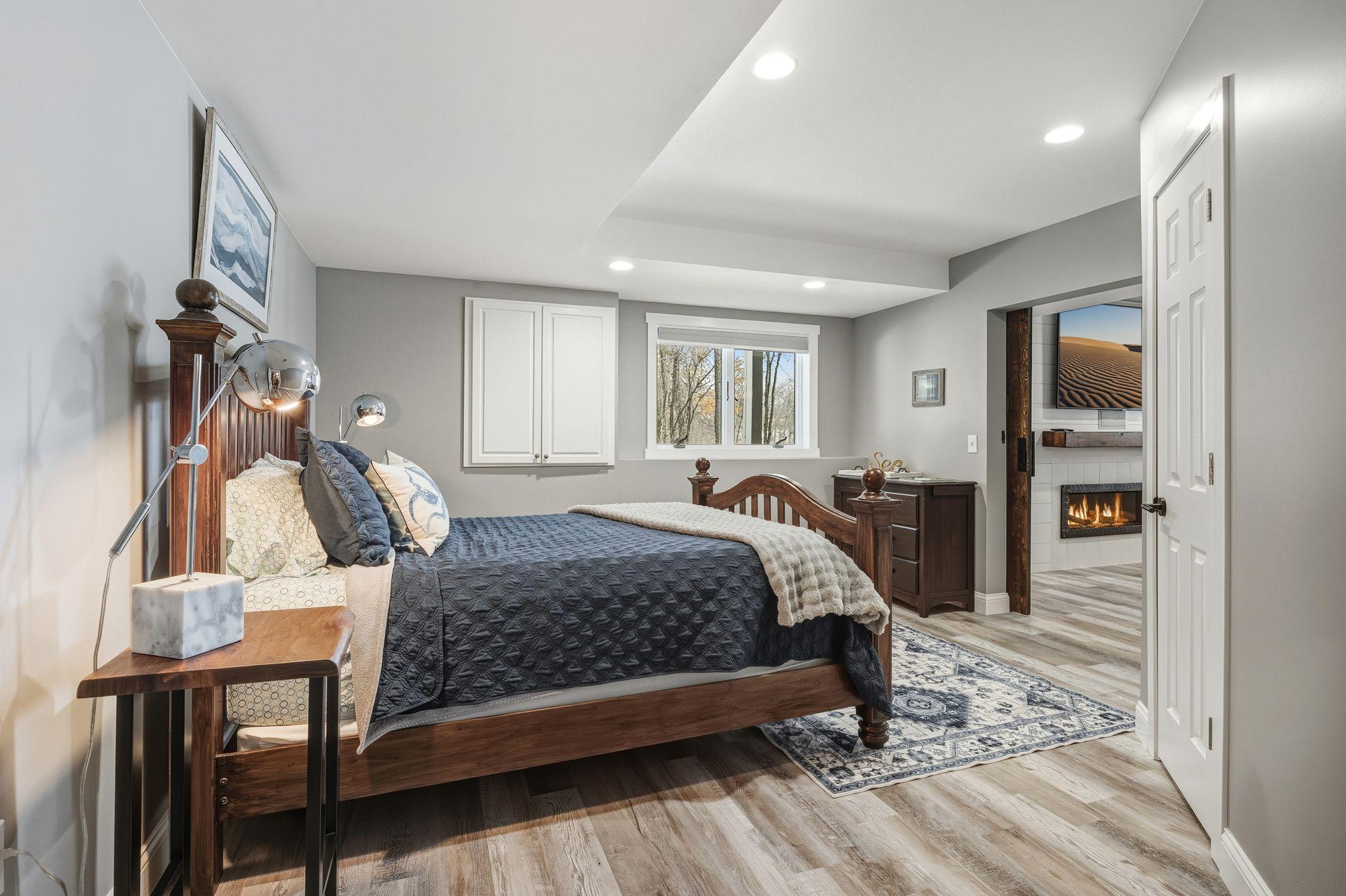 Welcome to Great Oak Shores Point in Lakeville, a convenient getaway. This incredibly remodeled estate has been tastefully remodeled from top to bottom, inside and out. A private and peaceful setting on a .79-acre wooded cul-de-sac lot with approximately 160’ of lake frontage. Easy shoreline access in a deeper bay. Enjoy entertaining, grilling and relaxation on the wrap around deck, firepit, hot tub and sauna. Ranked #4 Best Lake by USA Today in 2025, Lake Marion is a fully recreational lake prime for boating, fishing, swimming at Antlers Park Beach, mountain biking at West Lake Marion Park or exercising around the Juno Trailway. Lakeville Schools are consistently ranked as a Top 10 school district and are highly noted for an excellent athletic program. Convenient to freeway access to the International Airport, shopping and dining in old downtown Lakeville, skiing at Buck Hill that produced Lindsey Vonn, and downtown Minneapolis and St. Paul. This home was built and refreshed into an entertainer’s paradise. As you enter, you’re greeted by an impressive chandelier, wood staircase, luxury vinyl plank flooring throughout, white trim and millwork, shiplap, an office, and a cozy sitting room with library wall, ladder and fireplace. The massive chef’s luxury kitchen has panoramic lake views and is anchored by the massive 18 foot center island with quartzite countertops with ample seating for you and guests, stained maple cabinets, KitchenAid premium appliances with gas range and exhaust hood, icemaker and dual dishwashers. The sun-drenched living room has newer carpet and a toasty warm stone-faced gas fireplace. The upper-level has luxury vinyl plank throughout, a primary suite featuring vaulted ceilings, sunroom with lake views, gas fireplace, dual walk-in closets, spa-like bath with tiled floors, walk in shower, soaker tub and your own private workout studio! The other three upper-level bedrooms are nicely sized and benefit from an upgraded full bath with dual sinks and granite countertop. The lookout lower level has luxury vinyl plank flooring, gas fireplace, a fifth bedroom, walk in tiled shower with dual sinks, and a recreational area with kitchenette and granite countertop. 3+car finished garage with epoxy floors. New LP smart siding and architectural shingles grace the outside. See the video and 3D tour for your own private showing today!