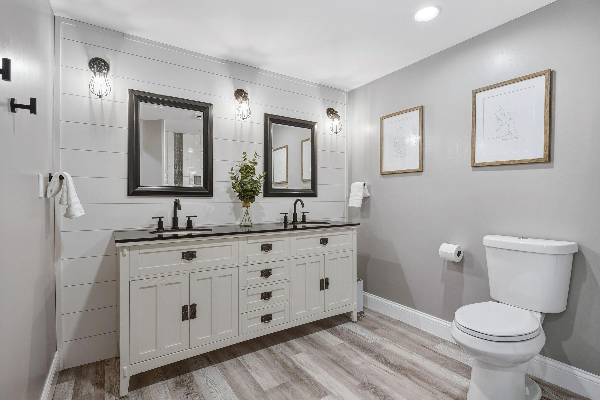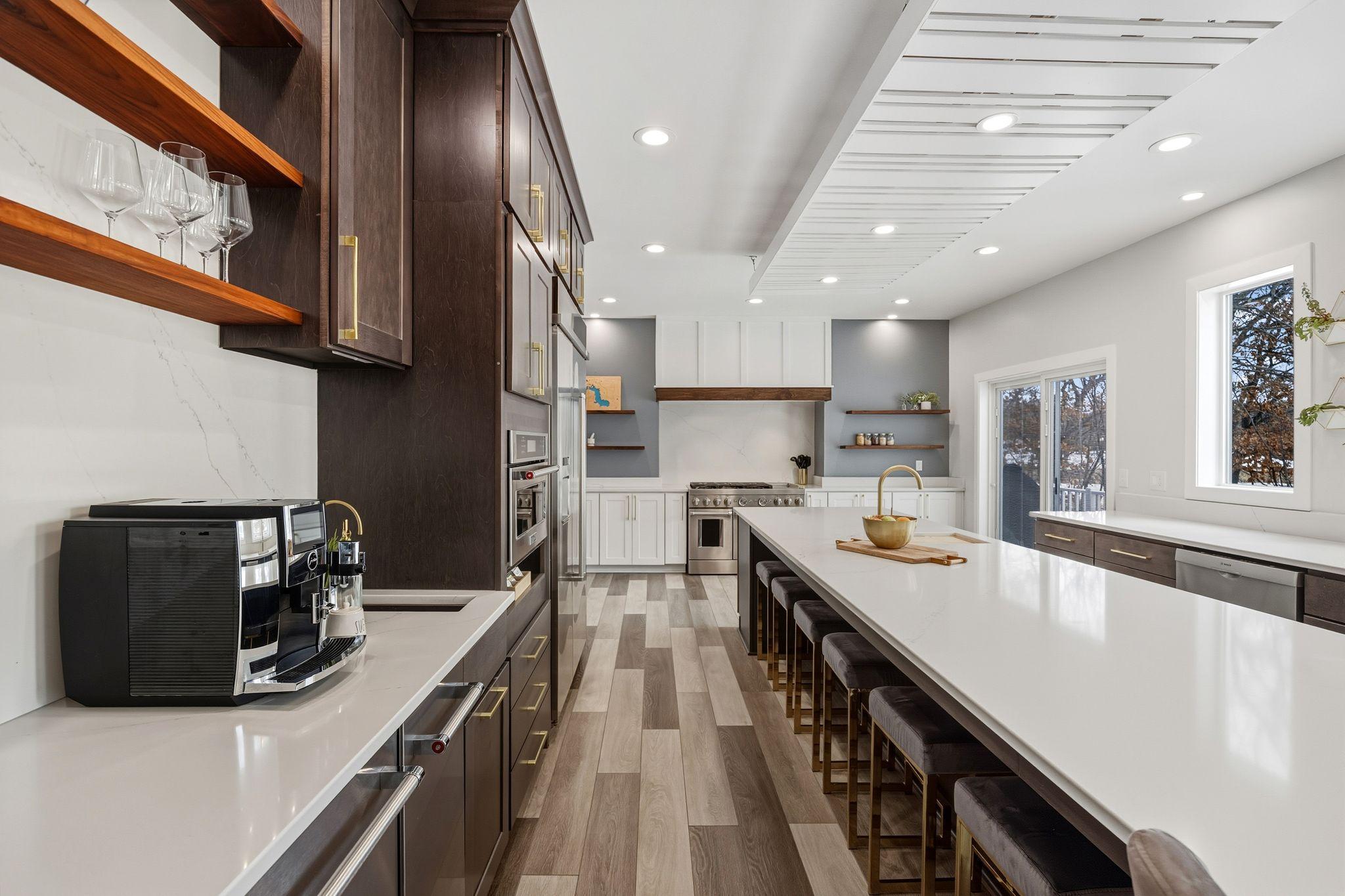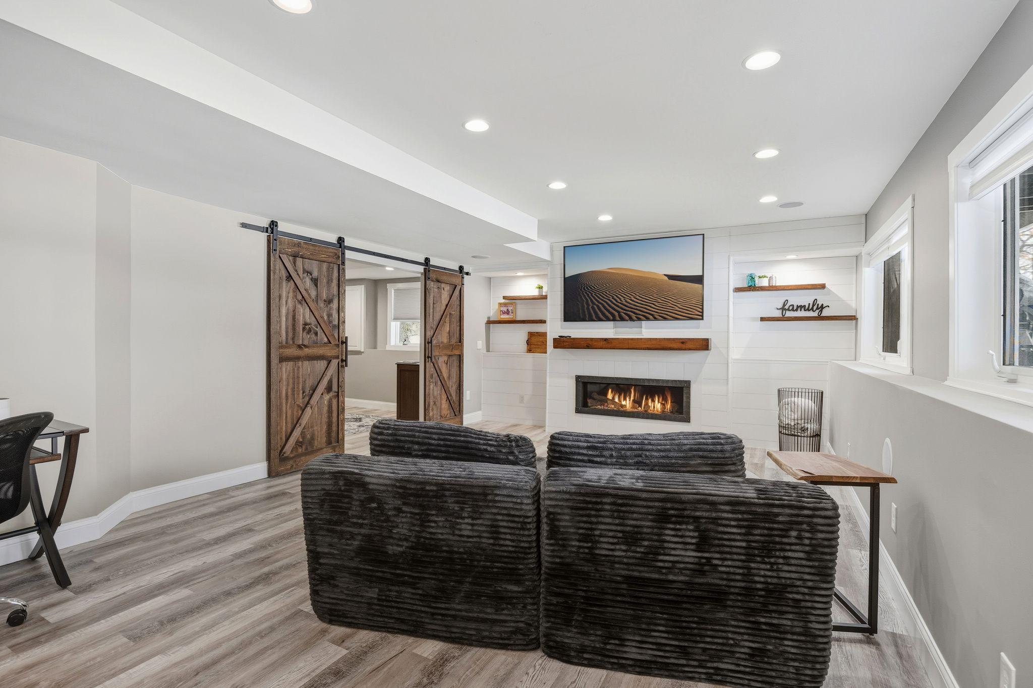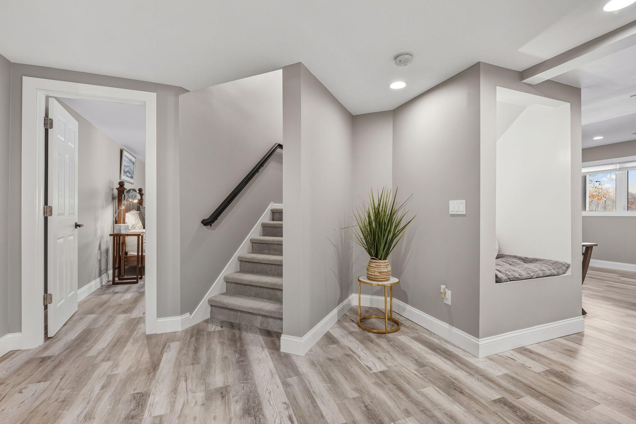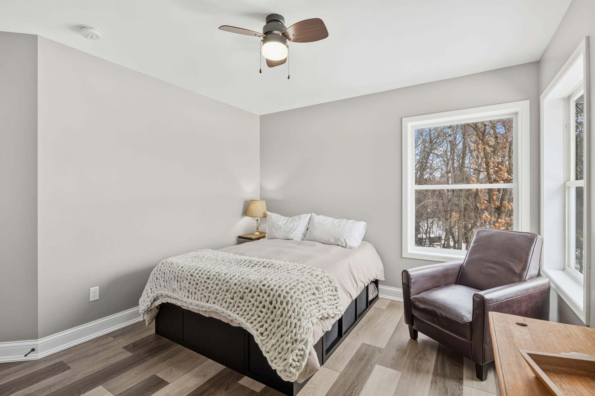 Welcome to Great Oak Shores Point in Lakeville, a convenient getaway. This incredibly remodeled estate has been tastefully remodeled from top to bottom, inside and out. A private and peaceful setting on a .79-acre wooded cul-de-sac lot with approximately 160’ of lake frontage. Easy shoreline access in a deeper bay. Enjoy entertaining, grilling and relaxation on the wrap around deck, firepit, hot tub and sauna. Ranked #4 Best Lake by USA Today in 2025, Lake Marion is a fully recreational lake prime for boating, fishing, swimming at Antlers Park Beach, mountain biking at West Lake Marion Park or exercising around the Juno Trailway. Lakeville Schools are consistently ranked as a Top 10 school district and are highly noted for an excellent athletic program. Convenient to freeway access to the International Airport, shopping and dining in old downtown Lakeville, skiing at Buck Hill that produced Lindsey Vonn, and downtown Minneapolis and St. Paul. This home was built and refreshed into an entertainer’s paradise. As you enter, you’re greeted by an impressive chandelier, wood staircase, luxury vinyl plank flooring throughout, white trim and millwork, shiplap, an office, and a cozy sitting room with library wall, ladder and fireplace. The massive chef’s luxury kitchen has panoramic lake views and is anchored by the massive 18 foot center island with quartzite countertops with ample seating for you and guests, stained maple cabinets, KitchenAid premium appliances with gas range and exhaust hood, icemaker and dual dishwashers. The sun-drenched living room has newer carpet and a toasty warm stone-faced gas fireplace. The upper-level has luxury vinyl plank throughout, a primary suite featuring vaulted ceilings, sunroom with lake views, gas fireplace, dual walk-in closets, spa-like bath with tiled floors, walk in shower, soaker tub and your own private workout studio! The other three upper-level bedrooms are nicely sized and benefit from an upgraded full bath with dual sinks and granite countertop. The lookout lower level has luxury vinyl plank flooring, gas fireplace, a fifth bedroom, walk in tiled shower with dual sinks, and a recreational area with kitchenette and granite countertop. 3+car finished garage with epoxy floors. New LP smart siding and architectural shingles grace the outside. See the video and 3D tour for your own private showing today!