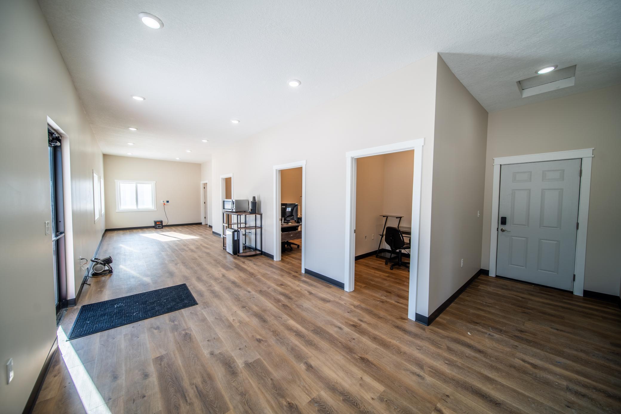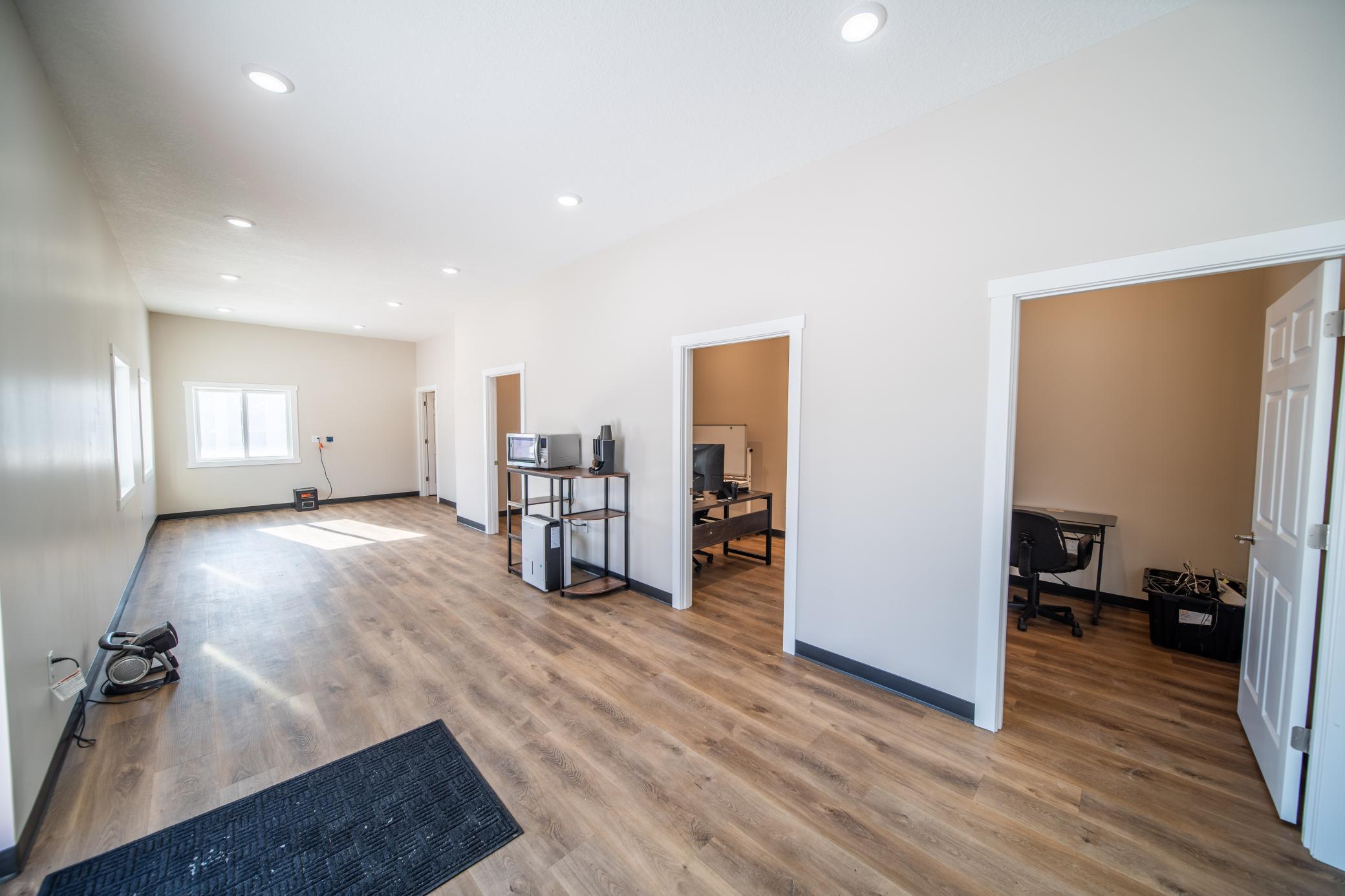 Brand new commercial building available for lease, offering a flexible layout ideal for service, trades, carpenters, Landscape/snow removal, Auto shop, roofing, siding, and light industrial users. The property features a fully finished 1,000 sq ft office suite with a welcoming main lobby, private offices, bathroom, and excellent natural light.