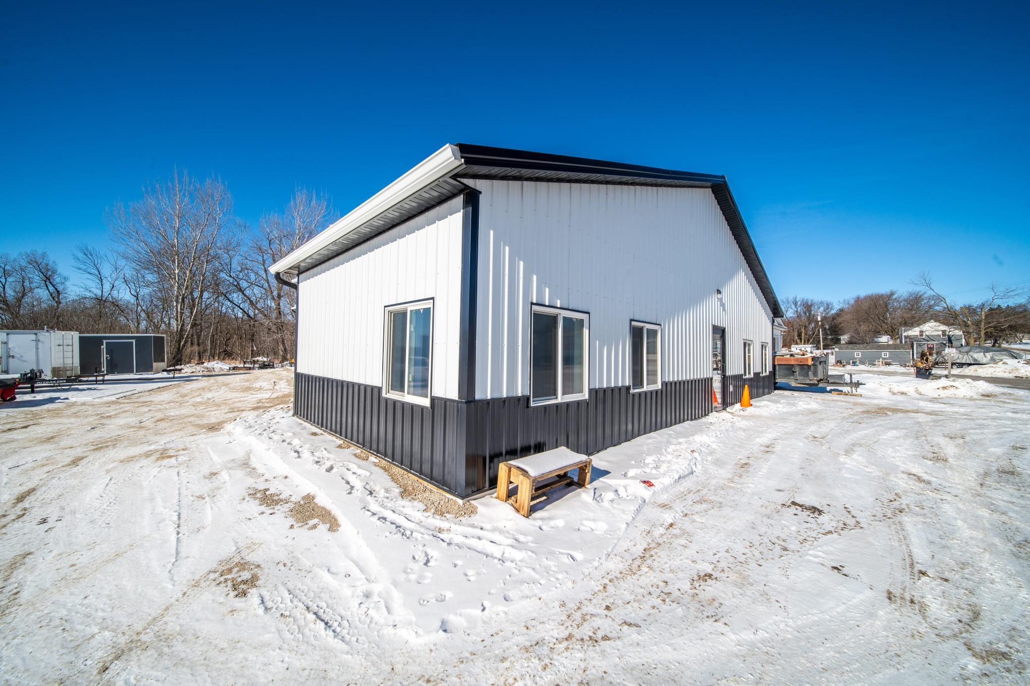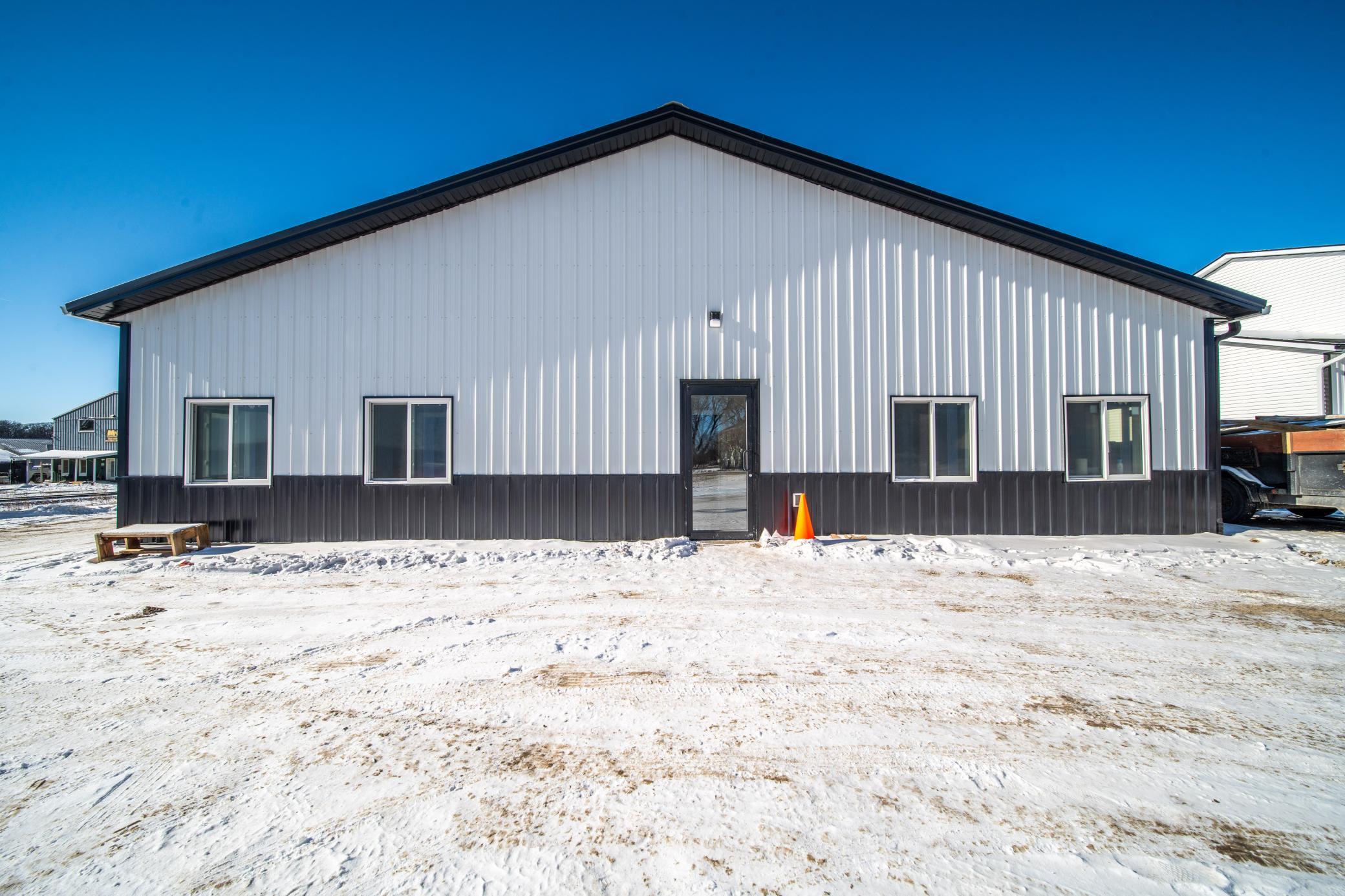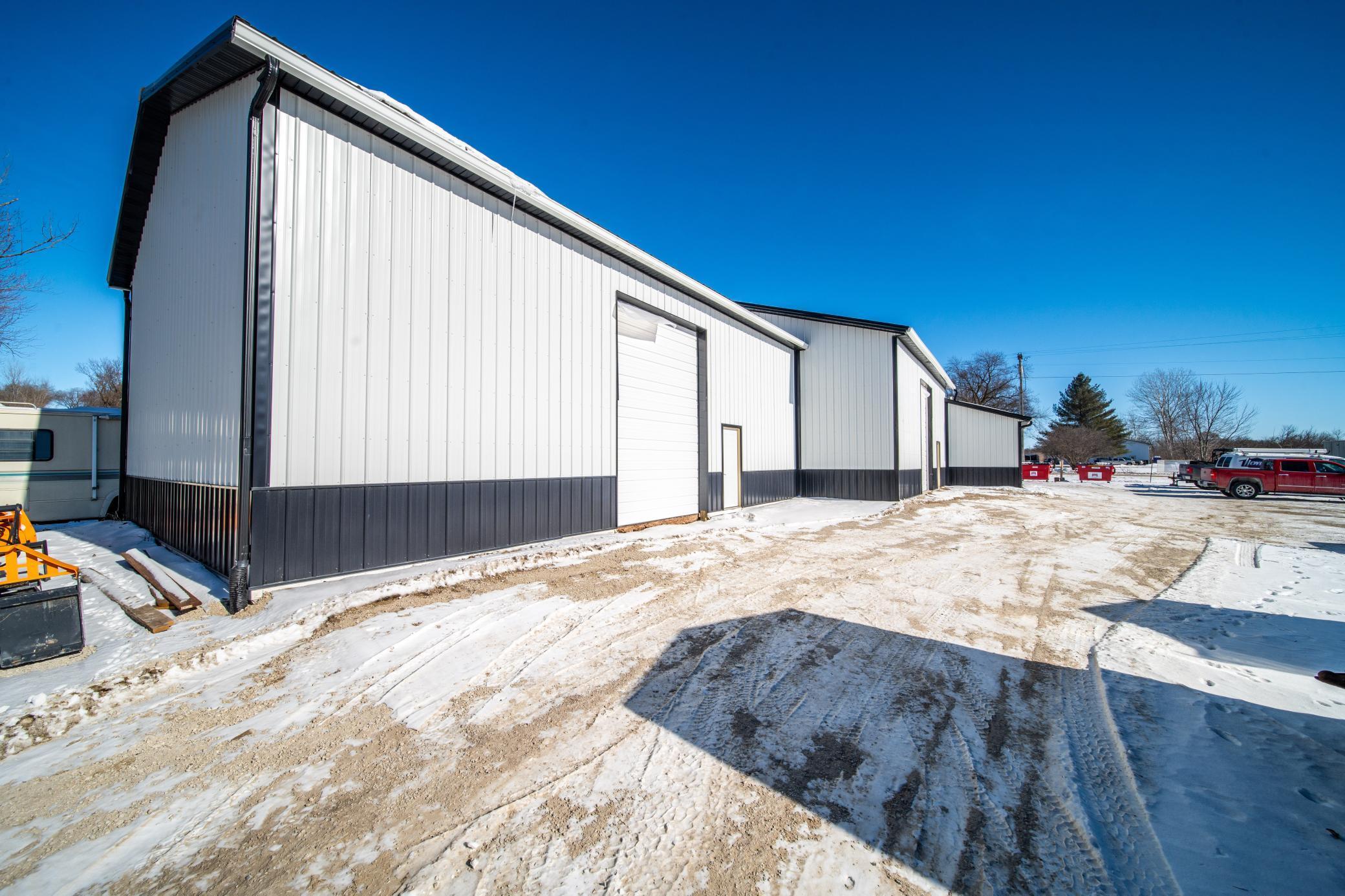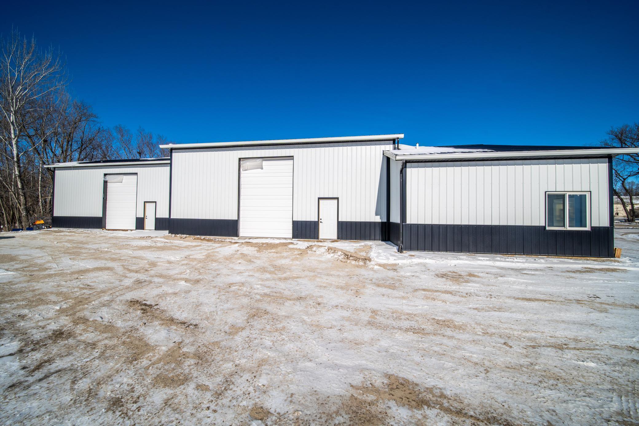 The building includes approximately 3,000 sq ft of shop space, highlighted by a 1,600 sq ft insulated and heated shop directly connected to the office, plus an additional 1,350 sq ft shop area. Sixteen-foot sidewalls and 14-foot overhead doors allow for efficient equipment access and functionality.