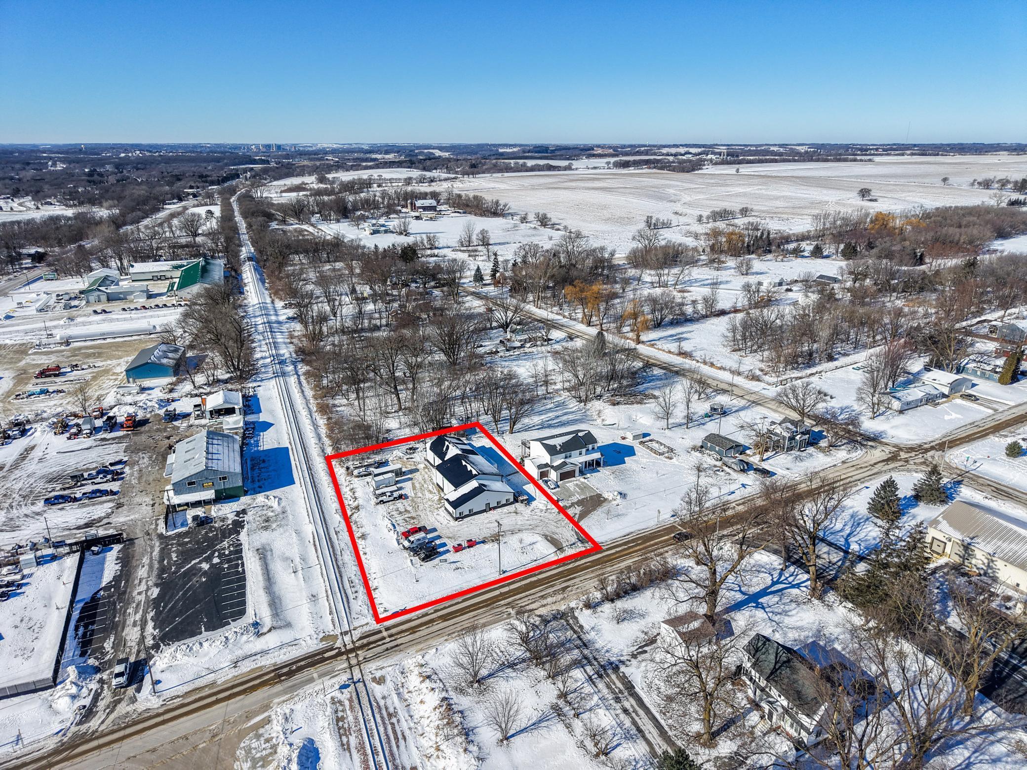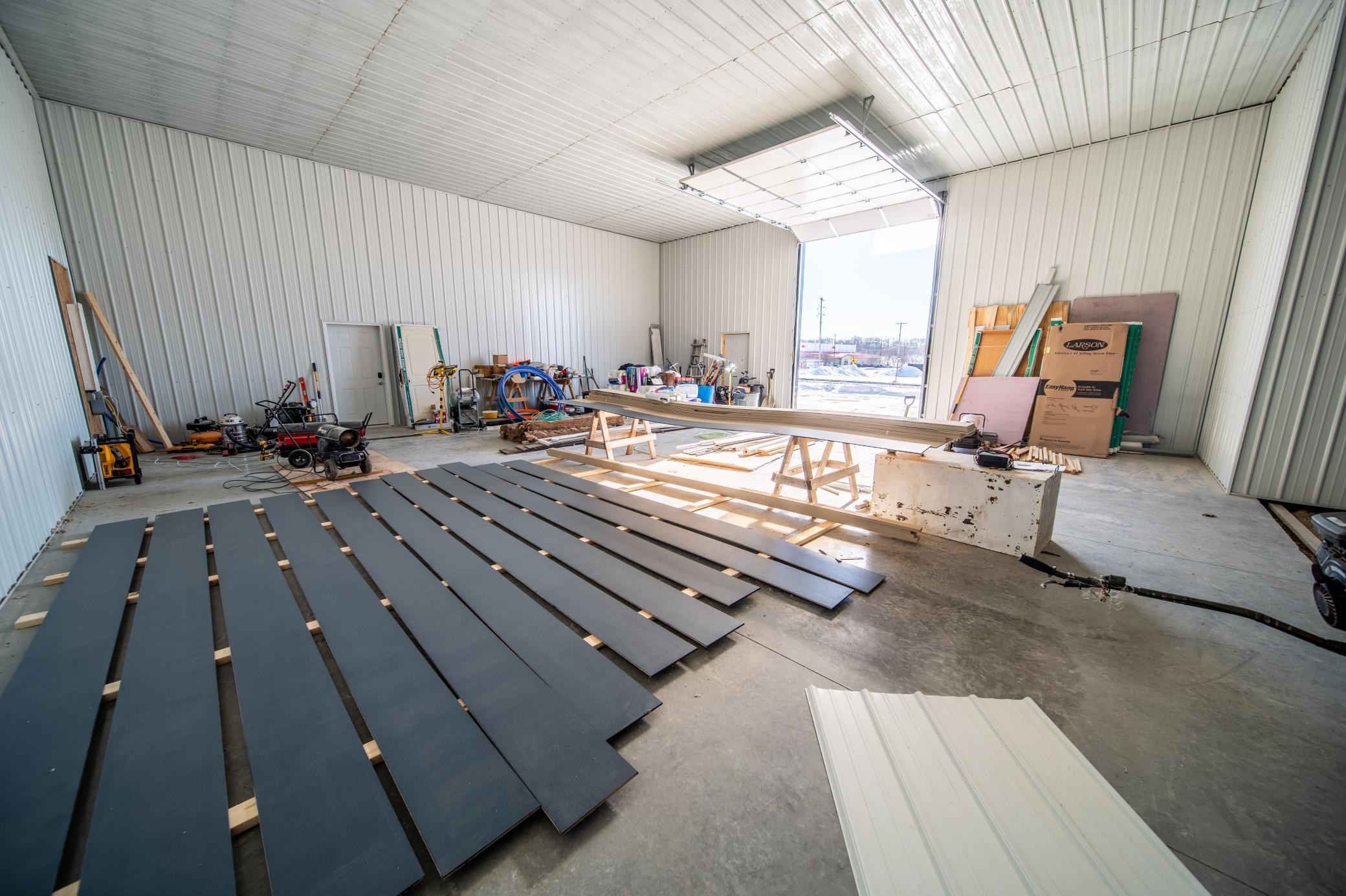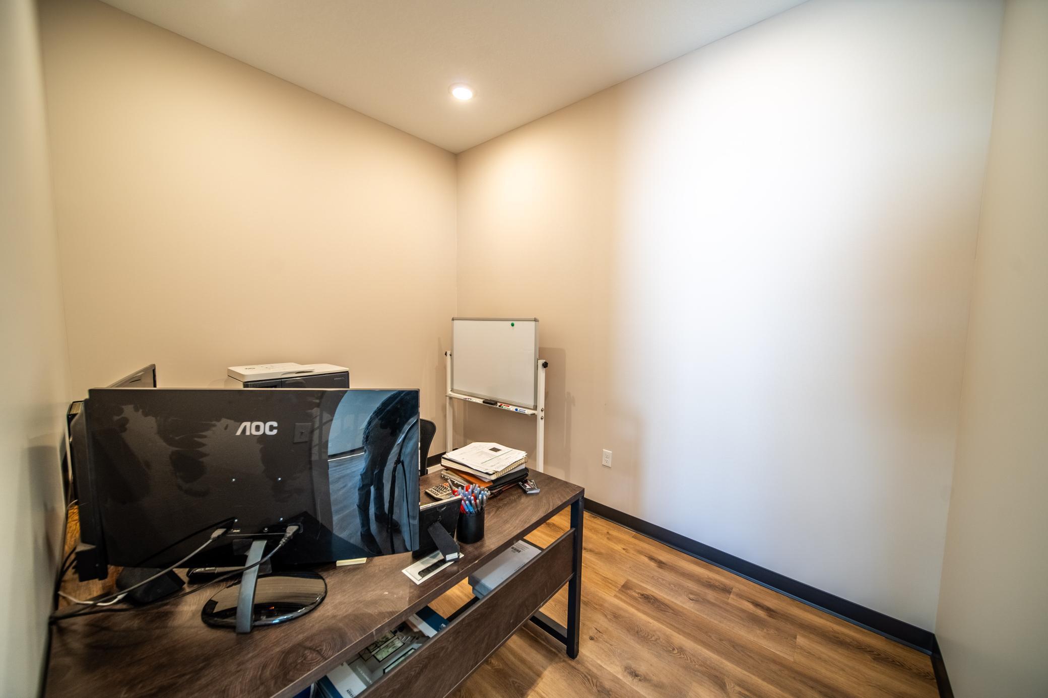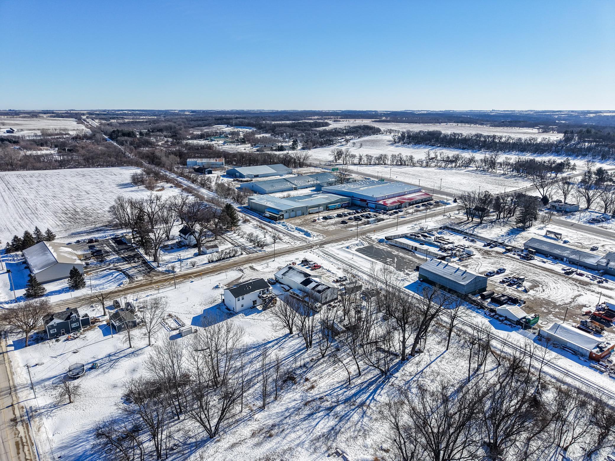 The building includes approximately 3,000 sq ft of shop space, highlighted by a 1,600 sq ft insulated and heated shop directly connected to the office, plus an additional 1,350 sq ft shop area. Sixteen-foot sidewalls and 14-foot overhead doors allow for efficient equipment access and functionality.