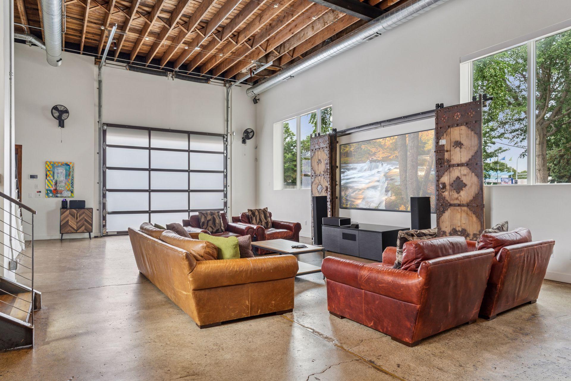 Distinctive rental opportunity located in a converted historic firehouse on a prominent corner lot with off-street parking. Currently utilized as an owner-occupied residence, the property offers excellent flexibility for creative, office, or live/work use. The interior features expansive common areas, mezzanine levels, and private rooms that can be readily converted into office or meeting spaces. Large, open garage areas provide additional functional flexibility. Architectural details include exposed brick, polished concrete floors, and exposed beams, creating a refined industrial aesthetic well-suited for professional or creative users seeking a unique environment.