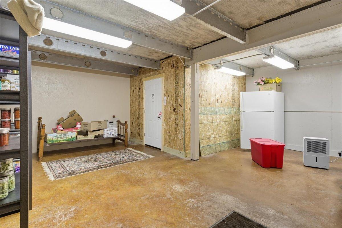 forced air or wood-burning fireplace. A fully equipped one-bedroom quest house includes all amenities, a 2-car garage, and extended man-cave/workshop space. The property also features a separate large garage with a temperature-controlled root cellar/storm shelter ( plumbed for running water), multiple outbuildings, greenhouse, raised garden beds, fruit trees, and a large dog kennel. At least 14 garage parking spaces provide ample room for vehicles, trailers, and guests. Ideal for private retreat, hobby farm, recreational use, or multigenerational living.