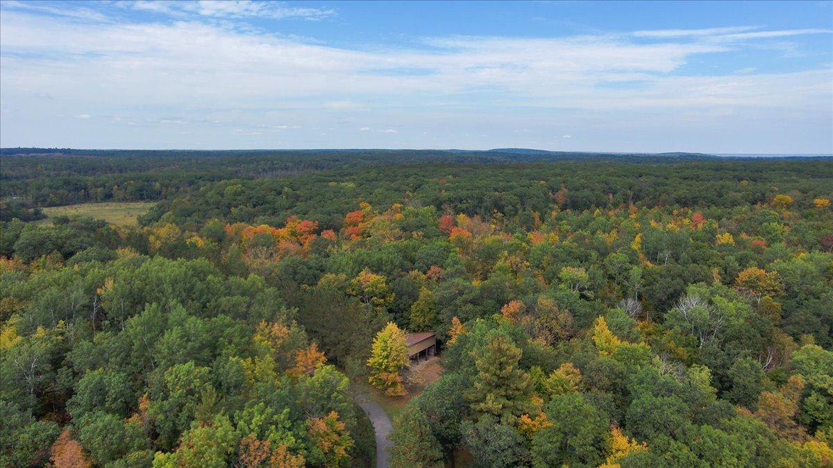 Exceptional 40-acre private Northwoods retreat in Pine Center near Brainerd, surrounded by state land on two sides for unmatched privacy. A paved 1/4 -mile driveway leads to beautifully maintained home
