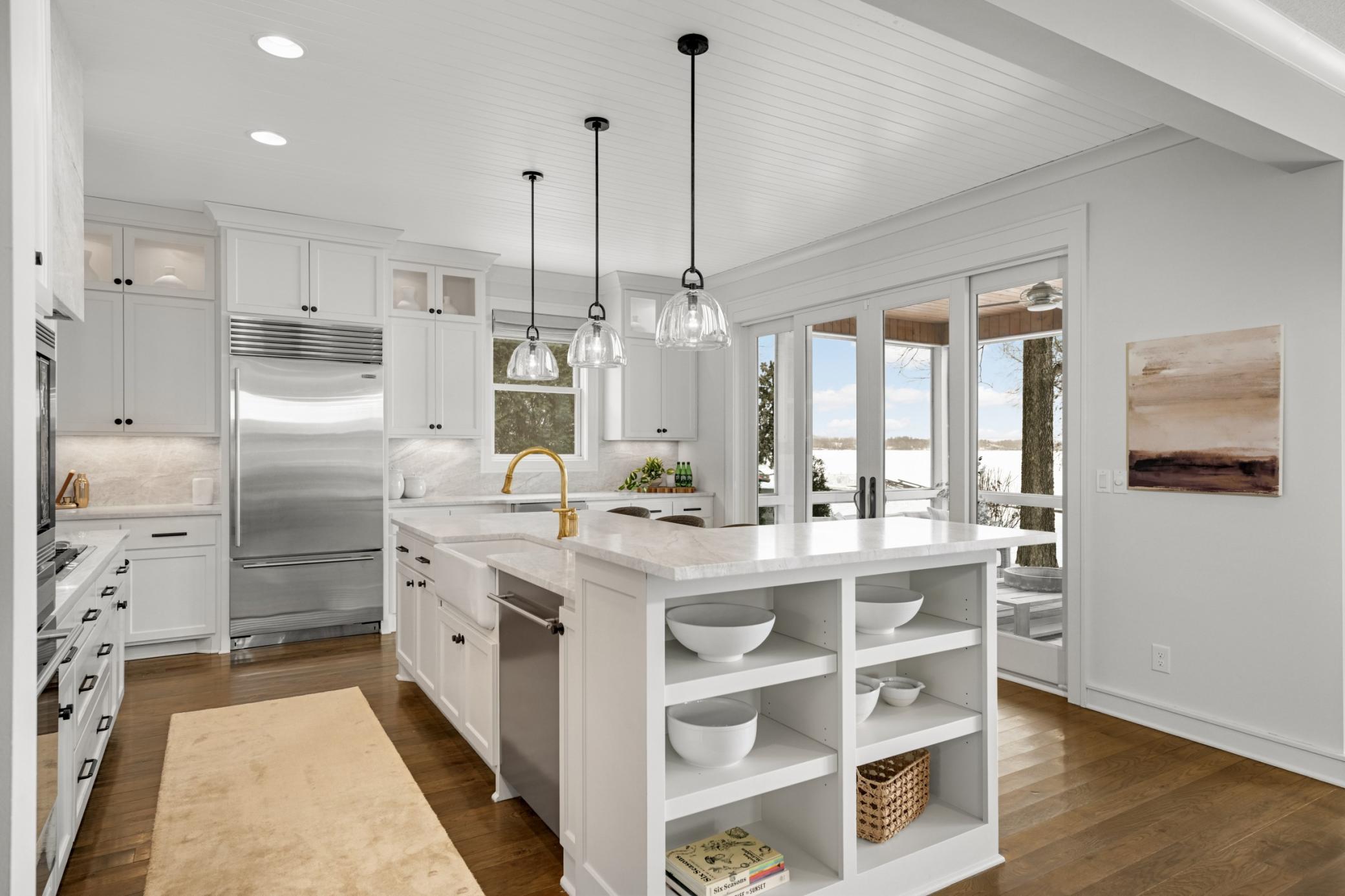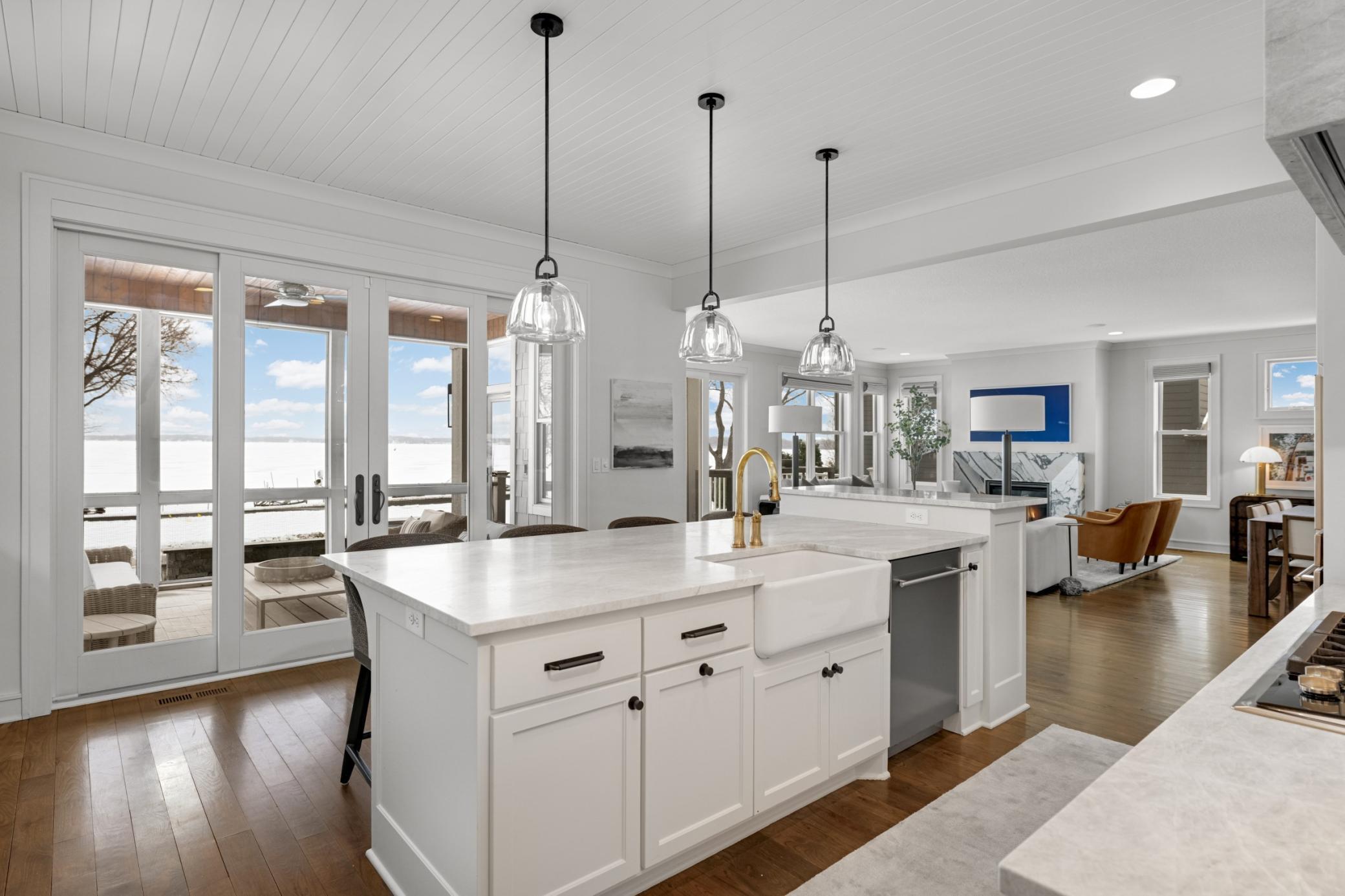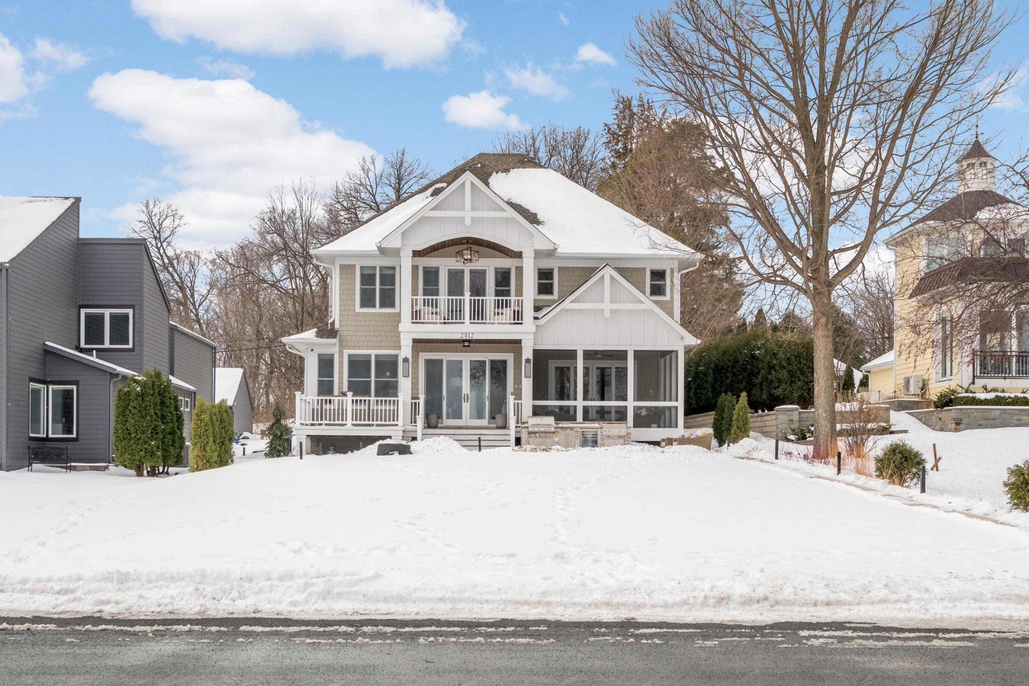 Welcome to this timeless, custom-built Lake Minnetonka residence where refined design meets effortless lakeside living. The great room is both inviting and sophisticated, centered around a stone-surround fireplace and expansive sliding doors that open to a deck and beautifully landscaped backyard, perfectly positioned for both intimate mornings and elevated entertaining. Seamlessly connected to the screened-in porch, the home offers a natural flow between indoor and outdoor living, ideal for long summer evenings by the water. A chef’s dream kitchen featuring a beverage fridge, a dedicated coffee station, and a buffet passthrough, with thoughtfully designed pantry storage. Additional features include a main-level office, a spacious mudroom with custom storage plus oversized closet and drop zone. The upper level features five well-appointed bedrooms, including a tranquil primary suite with a private covered deck overlooking the lake. The spa-inspired primary bath has been completely reimagined with sophisticated design finishes, dual vanities, a soaking tub, and a separate walk-in shower. All bedrooms feature walk-in closets, and all bathrooms throughout the home have been updated, complemented by new Restoration Hardware lighting and plush upper-level carpeting. Stepping outdoors reveals a thoughtfully transformed lakeside setting with newly designed landscaping and a new heated in-ground pool. The outdoor culinary terrace is expertly equipped with a built-in grill, cooktop, and beverage cooler, offering a kitchen like setting that transforms lakeside gatherings from casual to exceptional. The unfinished lower level provides flexibility and abundant storage, ready to accommodate a future recreation room, golf simulator, additional bathroom, and more. This home also offers a heated 3 car garage. Located in the coveted Minnetonka Beach neighborhood, this home embodies a lifestyle of relaxed sophistication and timeless Lake Minnetonka living.