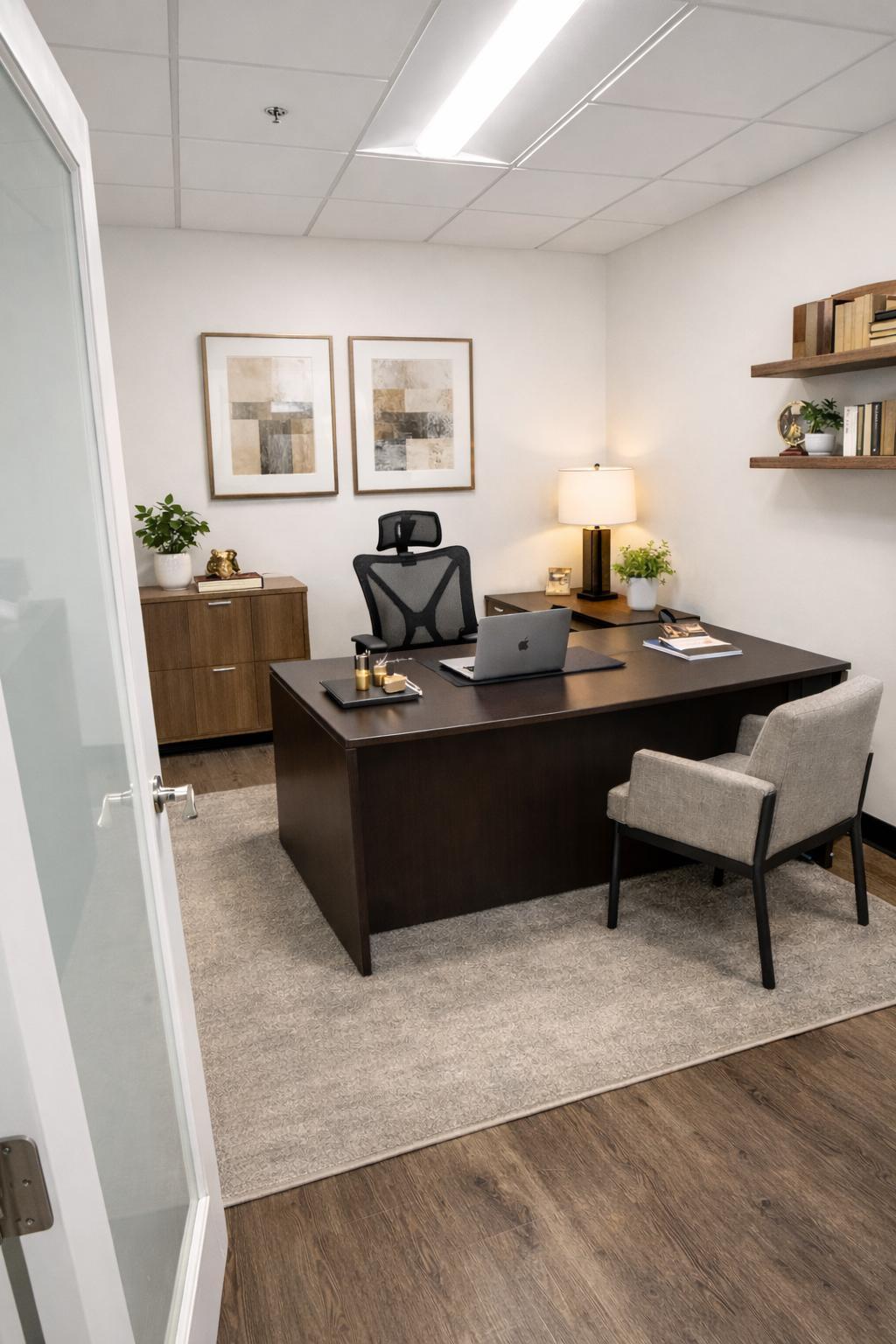 1500 sq feet, fully built out office condo. 5 private offices. Conf room. Kitchen. Reception. Storage. Bathroom. Built new in 2023.