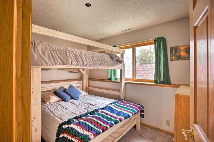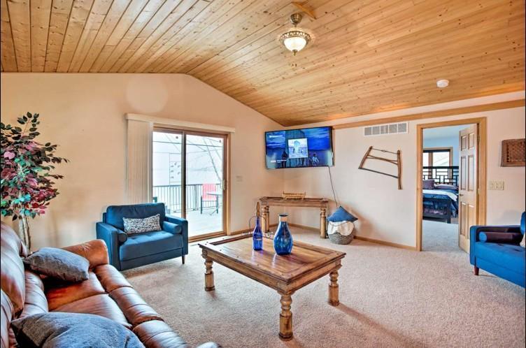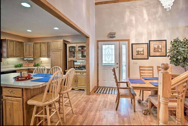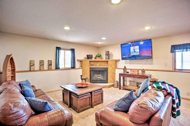 The layout of the home is conducive for family and visitors… Cozy family room with fireplace downstairs that looks out to the lake and two bedrooms with a bathroom to share… Master bedroom is large with Jett tub in master bathroom Also, under underneath the house is a productive and useful unfinished basement with 5 foot ceilings plenty of space for more water, toys, and storage for the house… Also very convenient as an owner’s closet if you decide to rent the property.