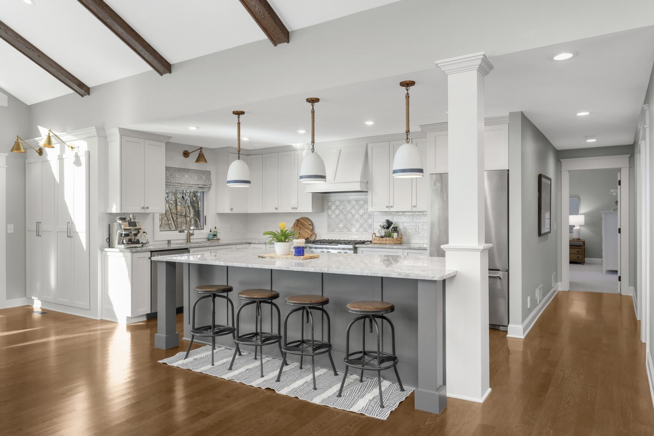 Gorgeous remodel. Every surface has been touched. From the moment you step in with the full windows and private views (seasonal lake views and killer sunsets in the Winter) you know this is a special property. A hard to find main floor living with 2 additional bedrooms on the main. Open floor plan, spacious laundry/mud room, and a heated 3 stall garage. A 4 season porch is off the kitchen with access to the generous deck overlooking the professional landscaped back yard. The lower level has 2 more bedrooms and 2 baths, an office, spacious family room and game room, and a sauna. Manor Park is a block away with a playground, ice skating, and fields. Excelsior is a mile away. Walk in for coffee or dinner! Deephaven Elementary/Minnetonka schools.