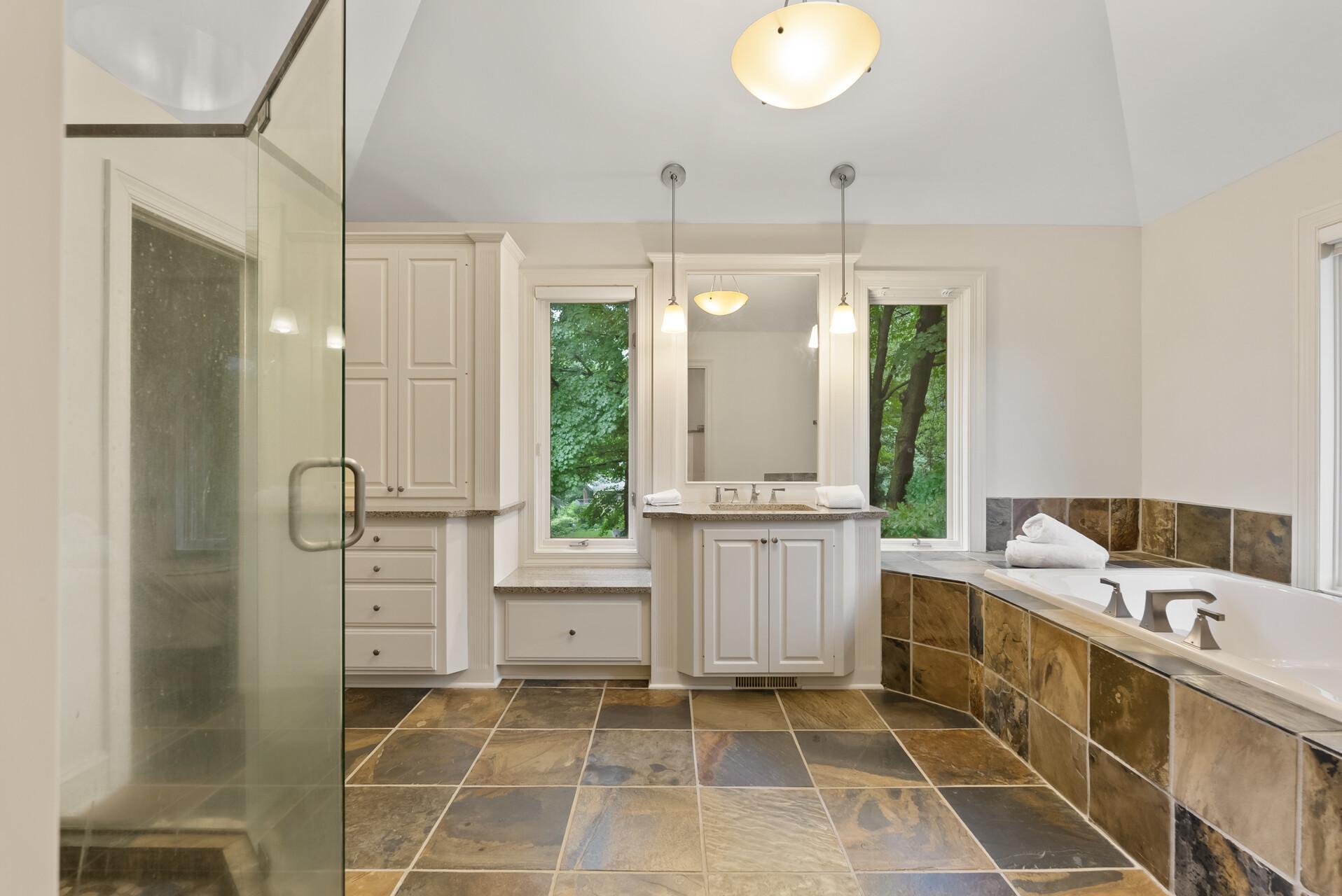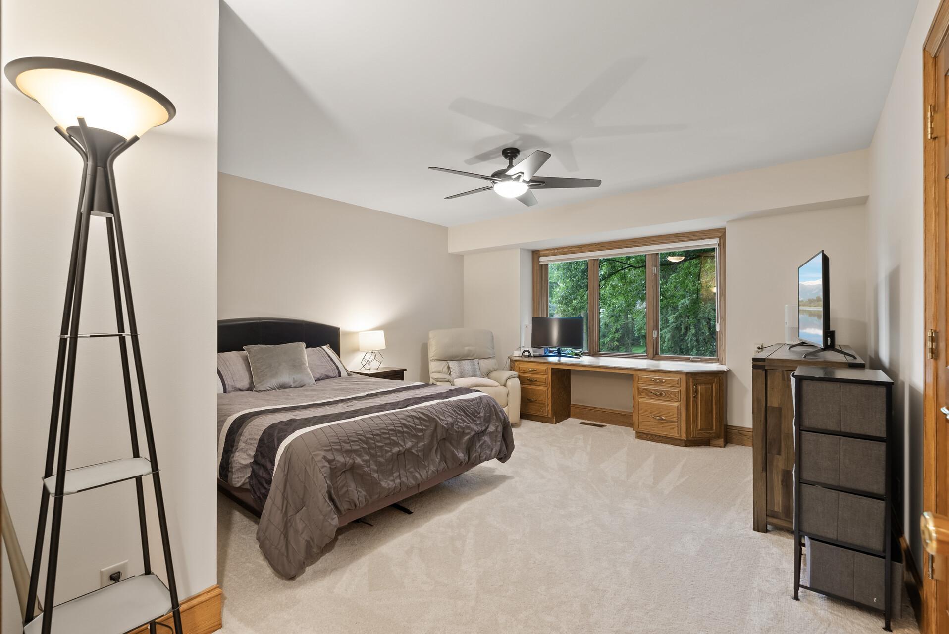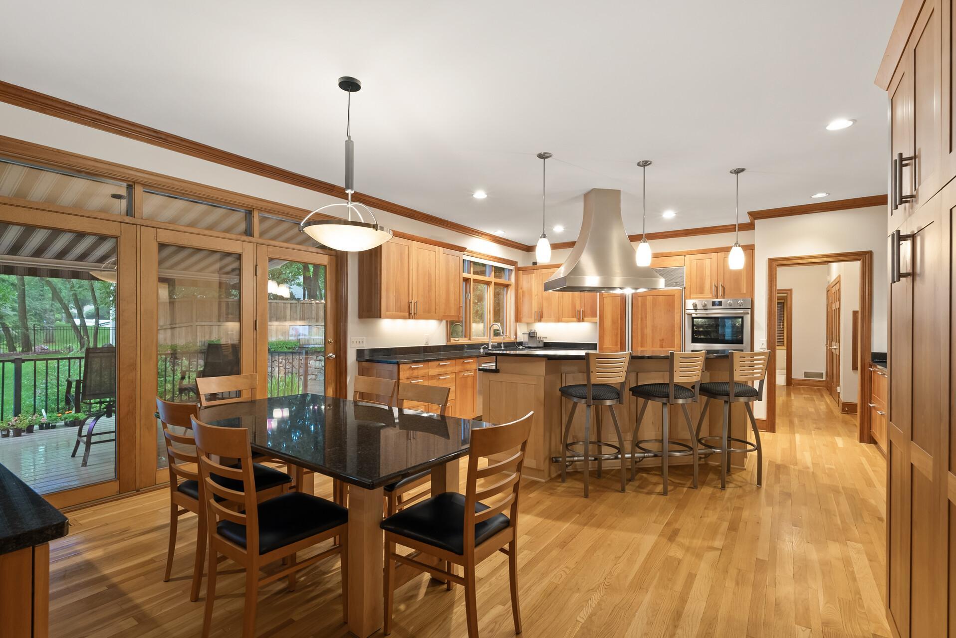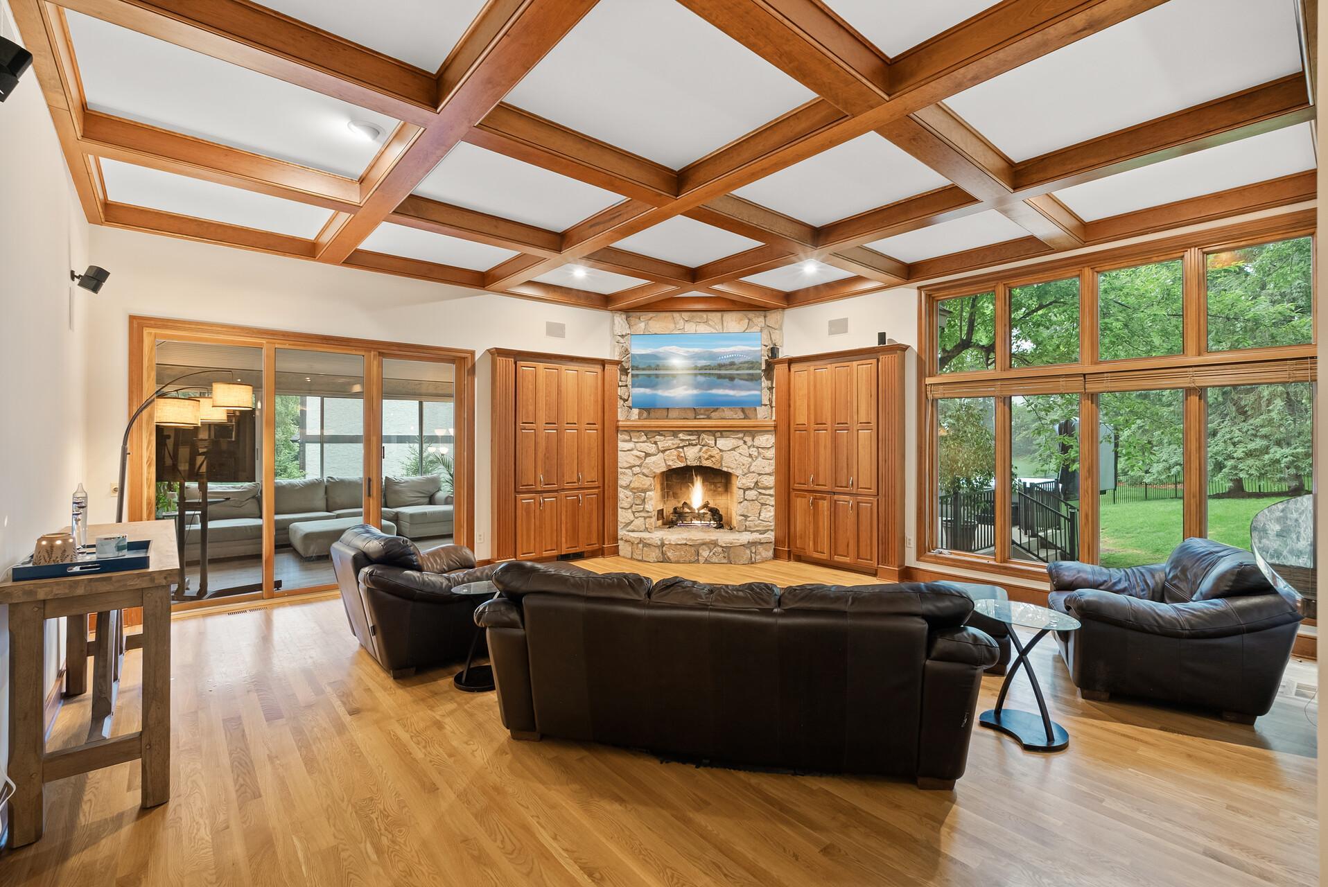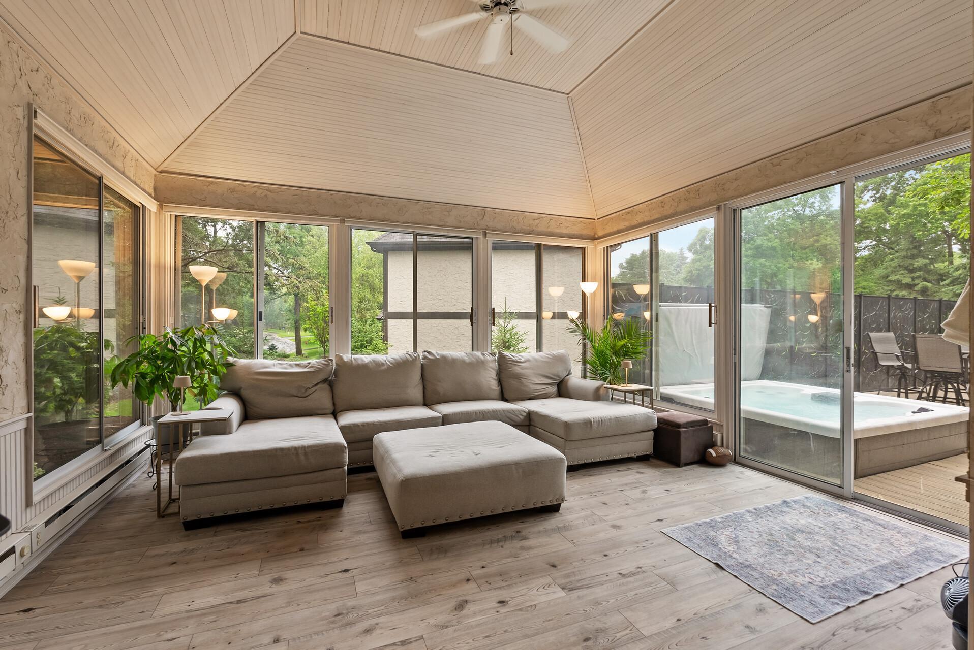 The main floor also includes a warm and inviting living room, formal dining room, and a sun-drenched 4-season porch with walls of windows and walkout access to the maintenance-free deck—ideal for indoor-outdoor entertaining. A dedicated main floor office provides privacy and quiet away from the central living areas.