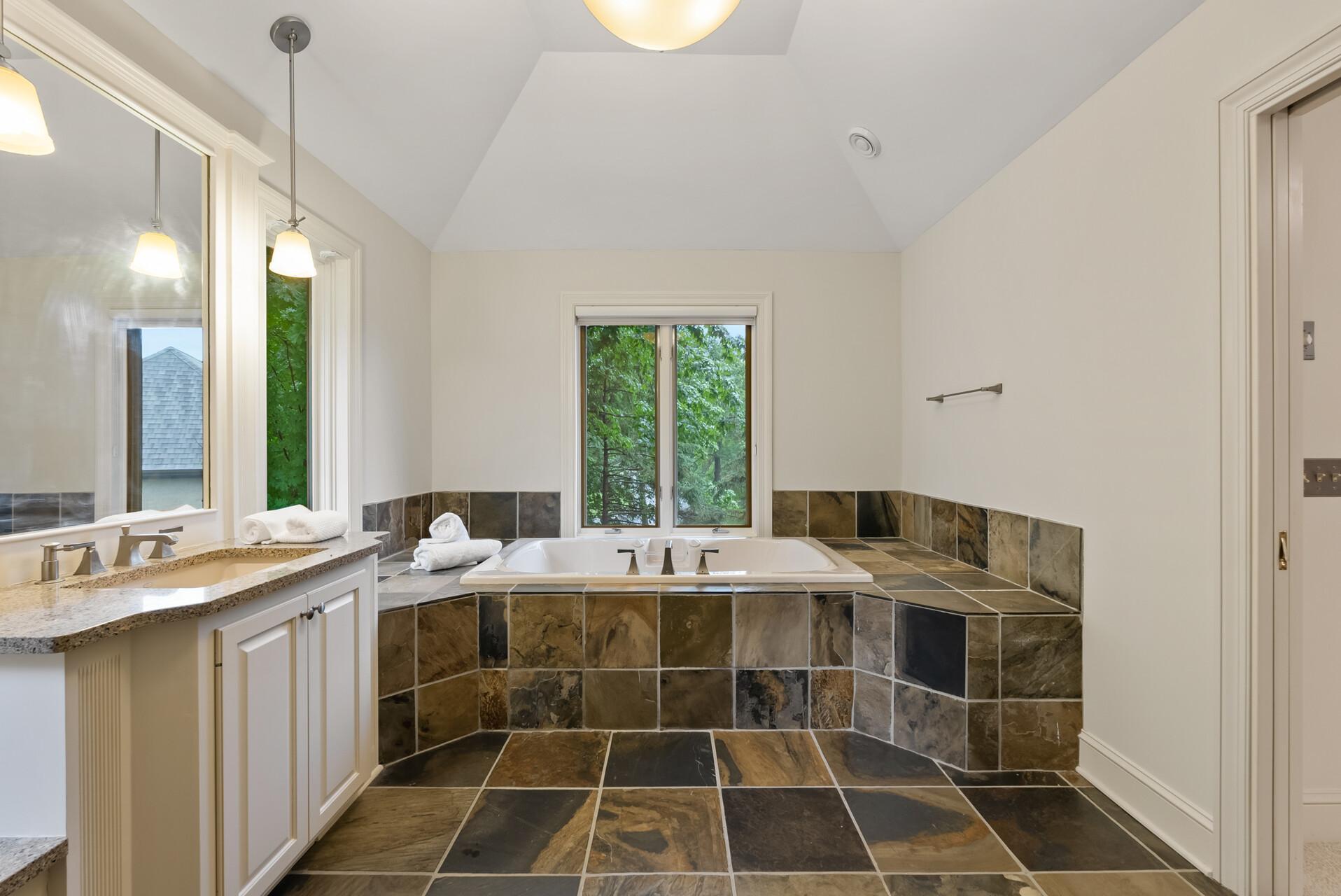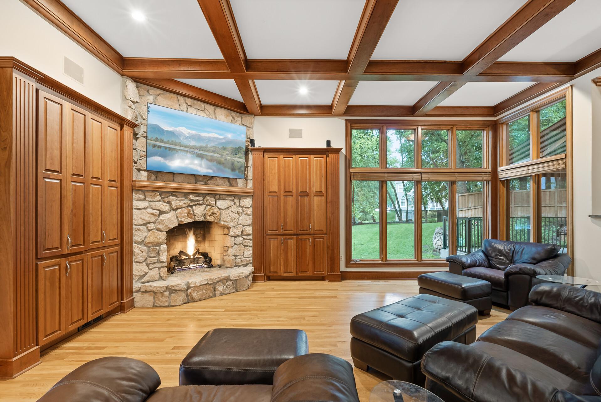Upstairs, the magnificent owner's suite is a true retreat with a cozy sitting area, fireplace, and a spa-like ensuite bathroom. Four upper-level bedrooms offer abundant storage and comfort for family or guests.