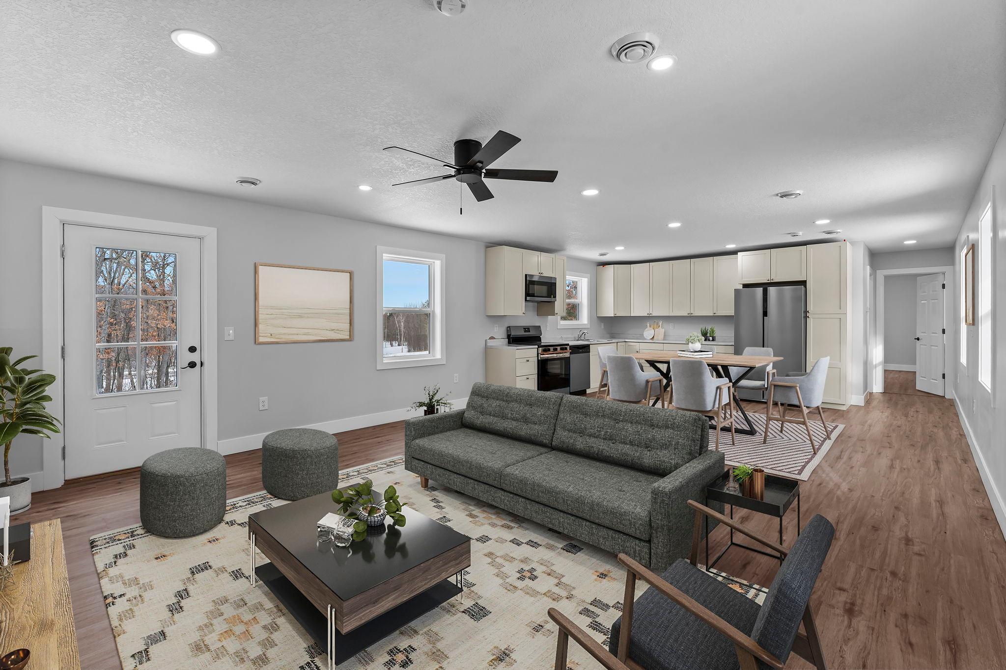 Enjoy modern, comfortable living at 1782 US Highway 8, ideally positioned just outside St. Croix Falls with direct access to Highway 8 for quick travel to Amery, the St. Croix Valley, and the Twin Cities. This fully remodeled lower level duplex unit offers over 1,200 square feet of updated living space designed for everyday convenience.