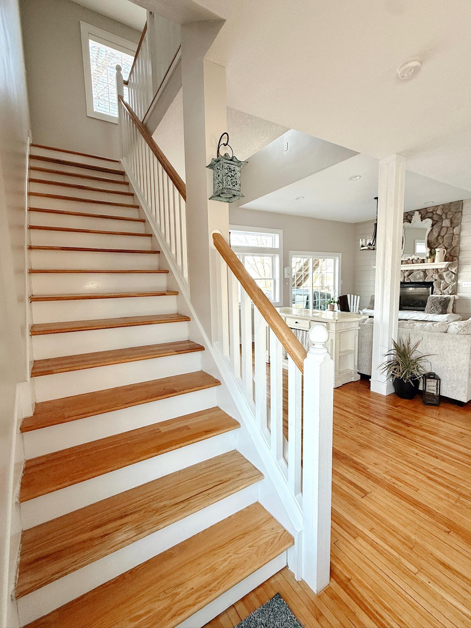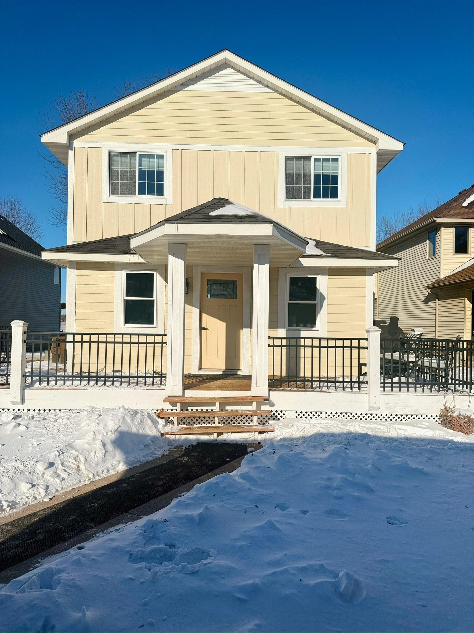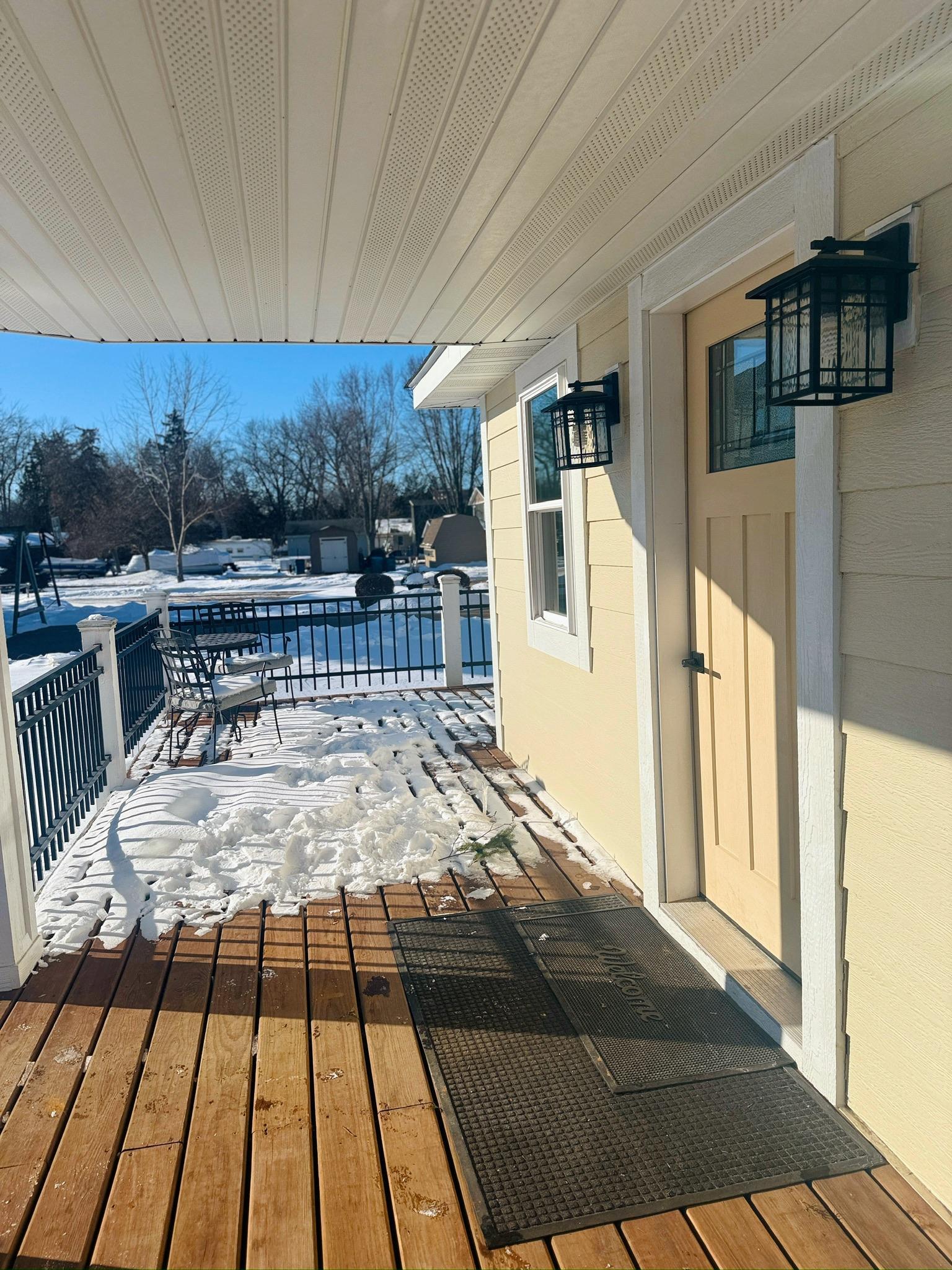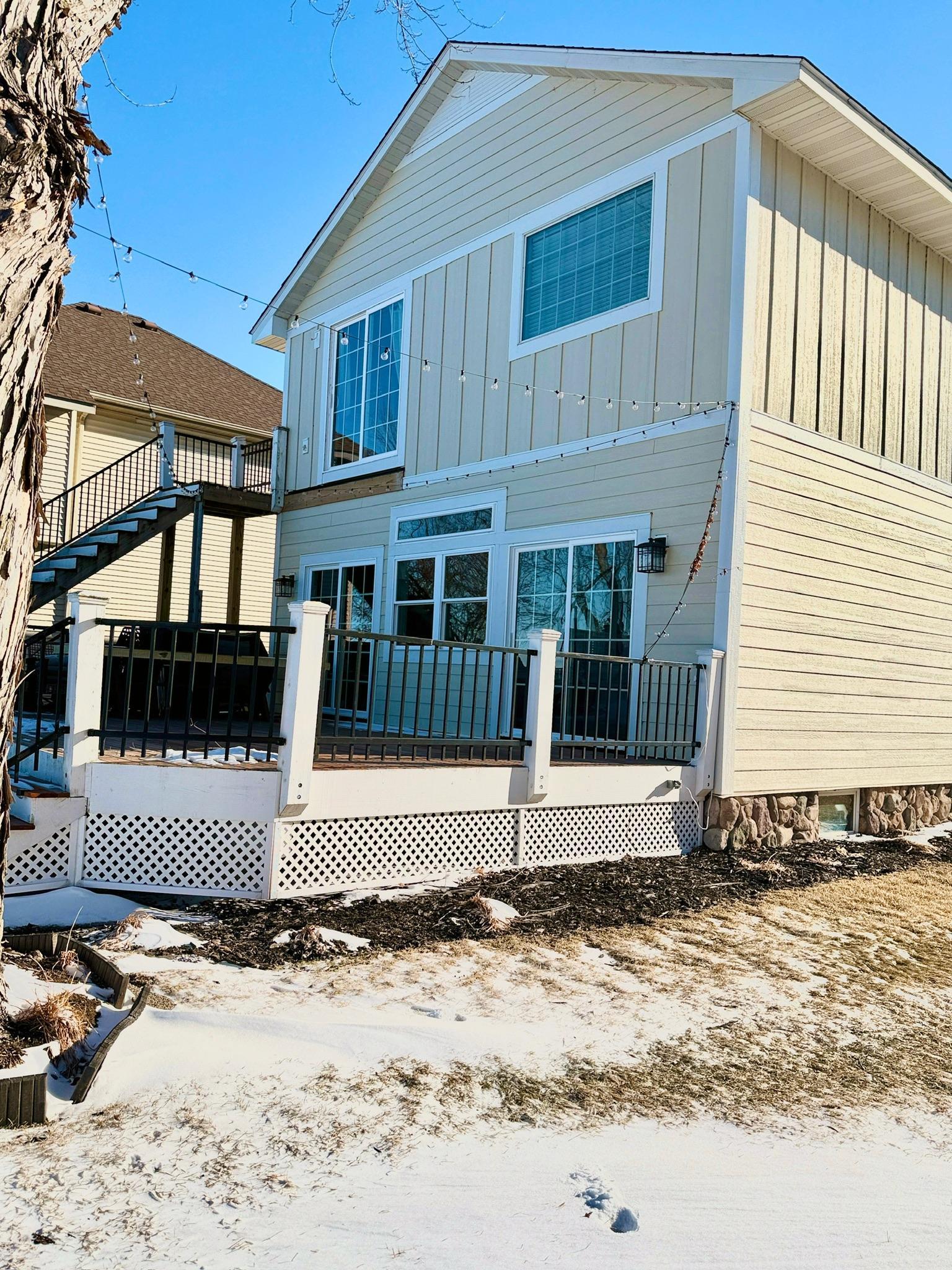 Modern Craftsman design meets relaxed lake-cottage living in this thoughtfully designed 4-bedroom, 2-bath lakefront home on highly sought-after Ideal Avenue, the name truly lives up to it. Set on a .3-acre lot with 50 feet of lakeshore, this Forest Lake property offers a well-balanced setting that combines lakefront living with a vibrant, established neighborhood feel. Inside, high ceilings and hardwood floors create a warm, inviting atmosphere that feels both elevated and comfortable. The kitchen features a functional layout with an island and flows naturally into the surrounding living and dining spaces, anchored by a cozy fireplace—perfect for every Minnesota season. Large windows throughout the home invite in natural light and frame peaceful lake views. Outside, the lifestyle takes center stage. An expansive deck overlooks the water and is ideal for sunset dinners, morning coffee, or gathering with friends and family. The shoreline offers shallow, swimmable water, making it easy to enjoy the lake throughout the day. A welcoming front porch, detached two-stall garage, and recent exterior updates including new LP SmartSide siding and windows provide everyday ease and low-maintenance living. Located just off Highway 97, this home offers convenient access to town, schools, and everyday essentials while remaining part of an ideal neighborhood made up primarily of full-time residents. The neighborhood offers a one-mile walking route that adds to the lifestyle appeal, making it easy to enjoy the area on foot year-round. A rare opportunity to own a Forest Lake home with 50 feet of lakeshore that has been loved and cared for by the same family for 30 years.