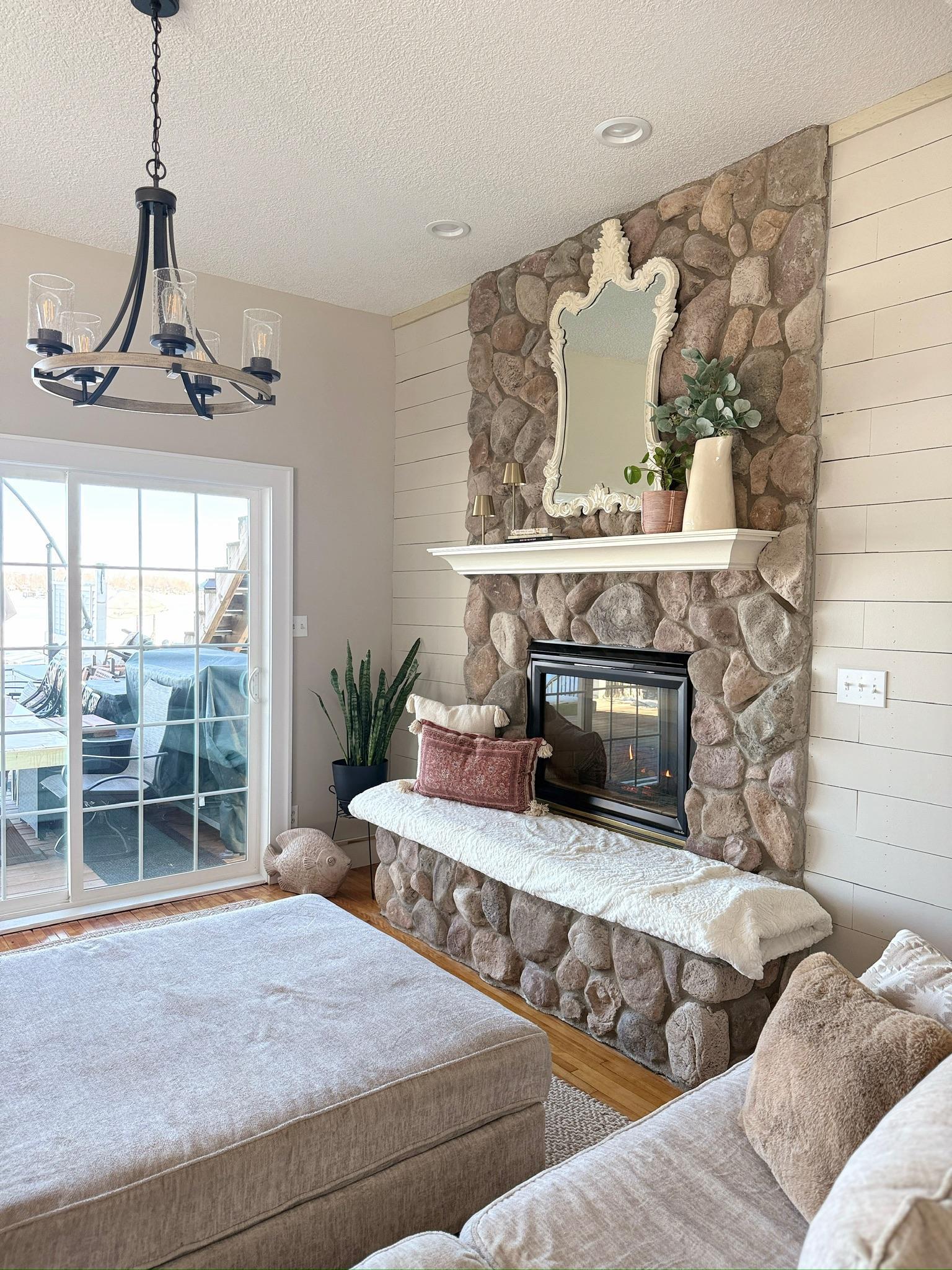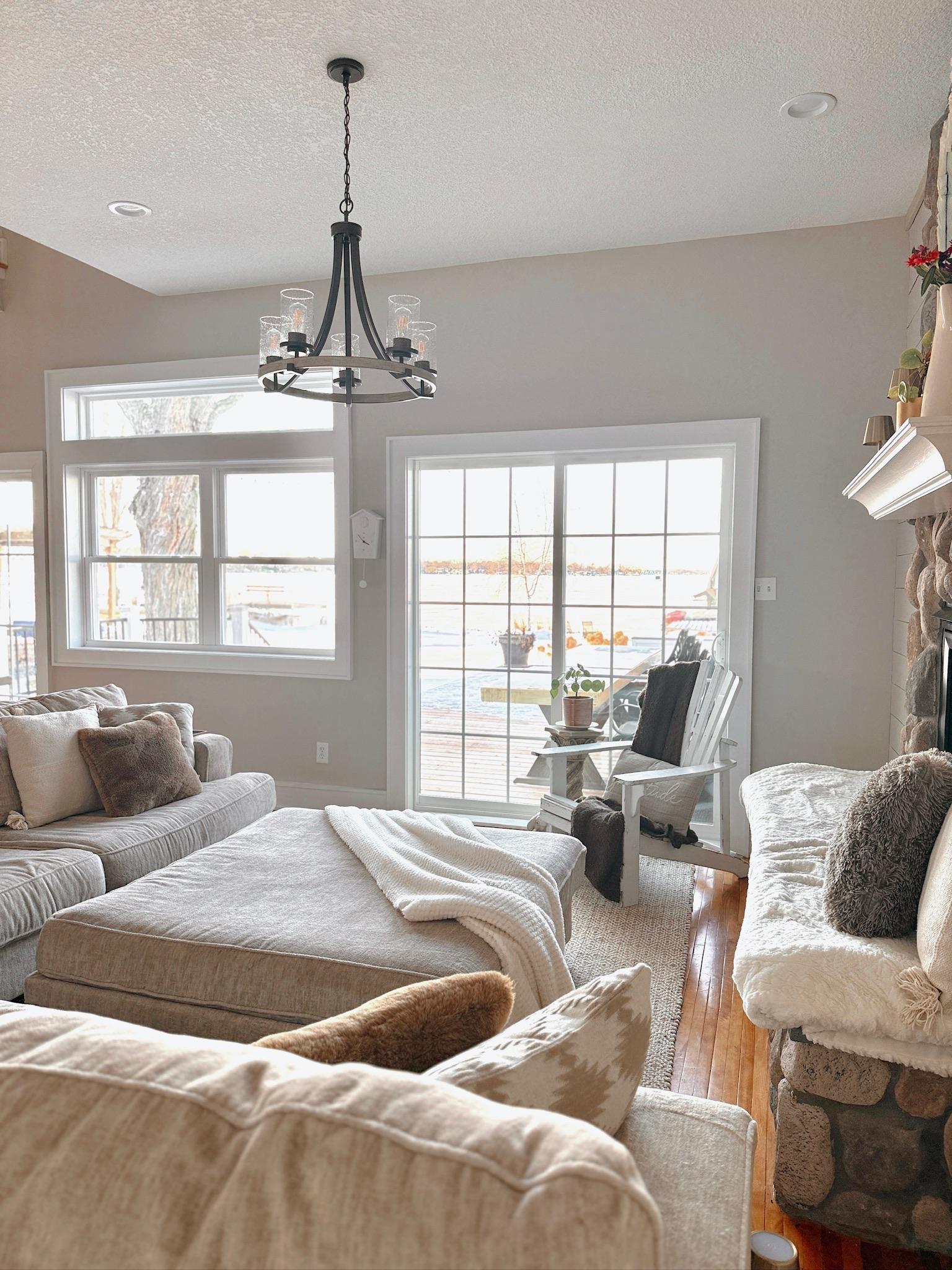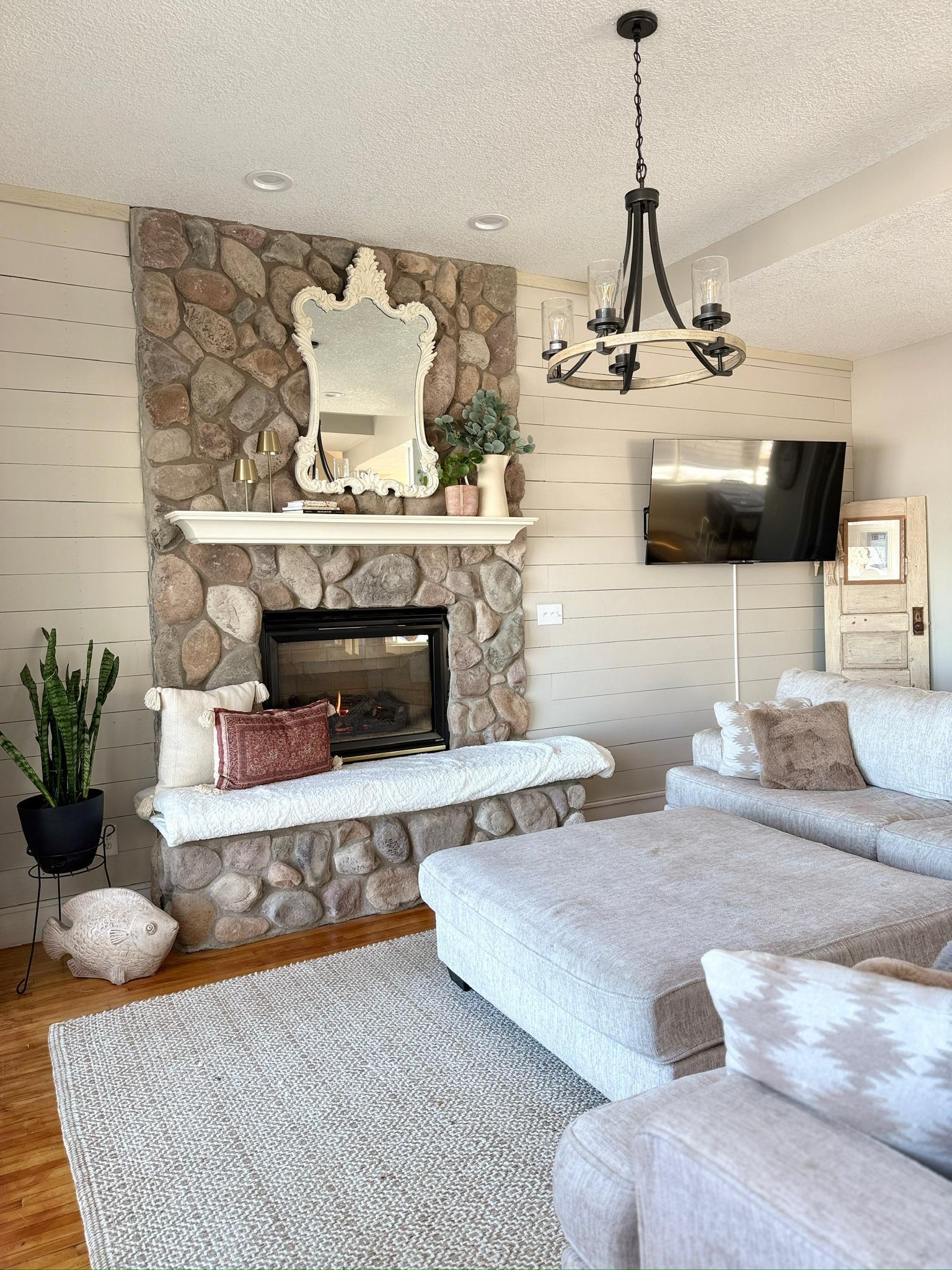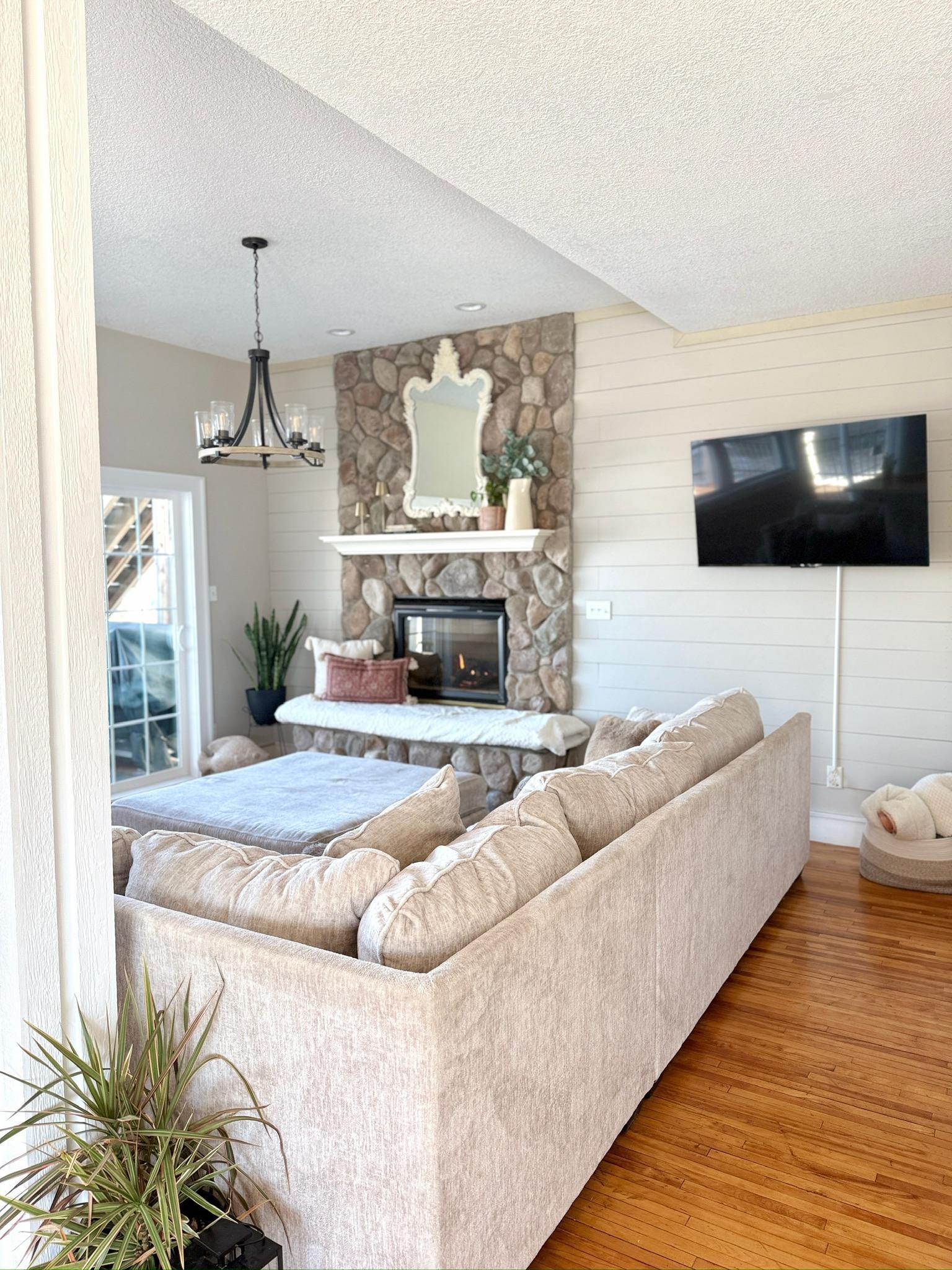 Modern Craftsman design meets relaxed lake-cottage living in this thoughtfully designed 4-bedroom, 2-bath lakefront home on highly sought-after Ideal Avenue, the name truly lives up to it. Set on a .3-acre lot with 50 feet of lakeshore, this Forest Lake property offers a well-balanced setting that combines lakefront living with a vibrant, established neighborhood feel. Inside, high ceilings and hardwood floors create a warm, inviting atmosphere that feels both elevated and comfortable. The kitchen features a functional layout with an island and flows naturally into the surrounding living and dining spaces, anchored by a cozy fireplace—perfect for every Minnesota season. Large windows throughout the home invite in natural light and frame peaceful lake views. Outside, the lifestyle takes center stage. An expansive deck overlooks the water and is ideal for sunset dinners, morning coffee, or gathering with friends and family. The shoreline offers shallow, swimmable water, making it easy to enjoy the lake throughout the day. A welcoming front porch, detached two-stall garage, and recent exterior updates including new LP SmartSide siding and windows provide everyday ease and low-maintenance living. Located just off Highway 97, this home offers convenient access to town, schools, and everyday essentials while remaining part of an ideal neighborhood made up primarily of full-time residents. The neighborhood offers a one-mile walking route that adds to the lifestyle appeal, making it easy to enjoy the area on foot year-round. A rare opportunity to own a Forest Lake home with 50 feet of lakeshore that has been loved and cared for by the same family for 30 years.
