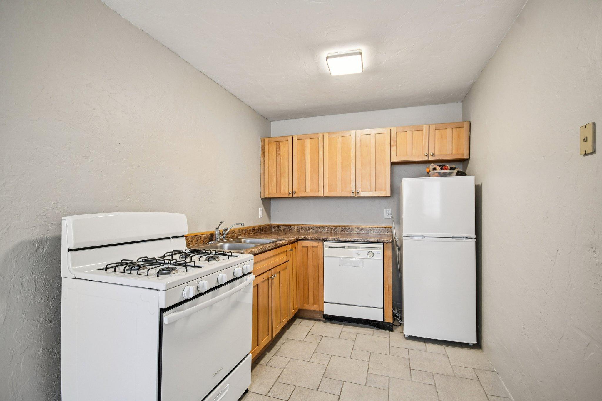The living space features generous natural light and a practical flow ideal for everyday living. The kitchen is equipped with ample cabinet storage, full appliances, and an efficient workspace. Adjacent living and dining areas provide flexibility for furniture arrangements.