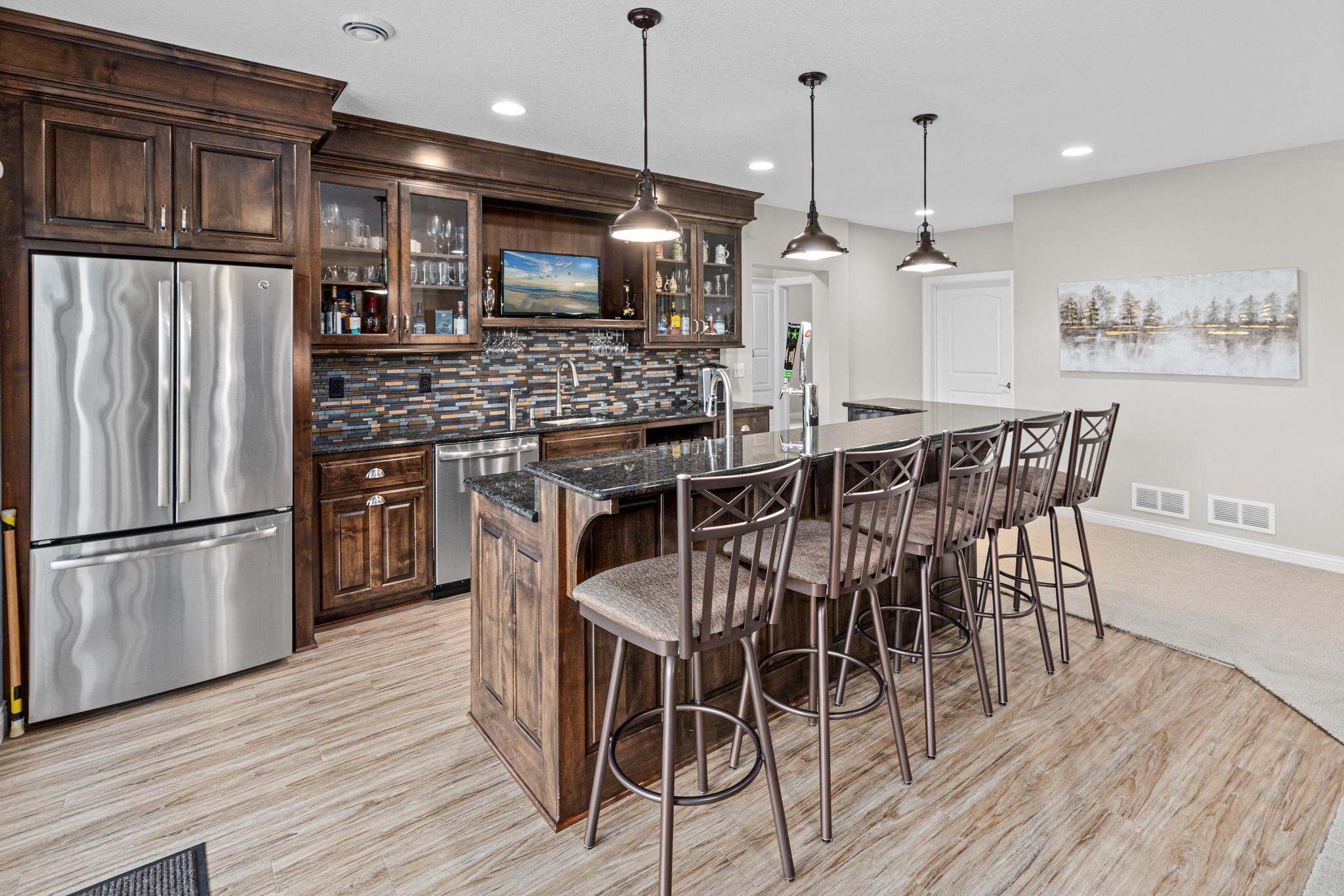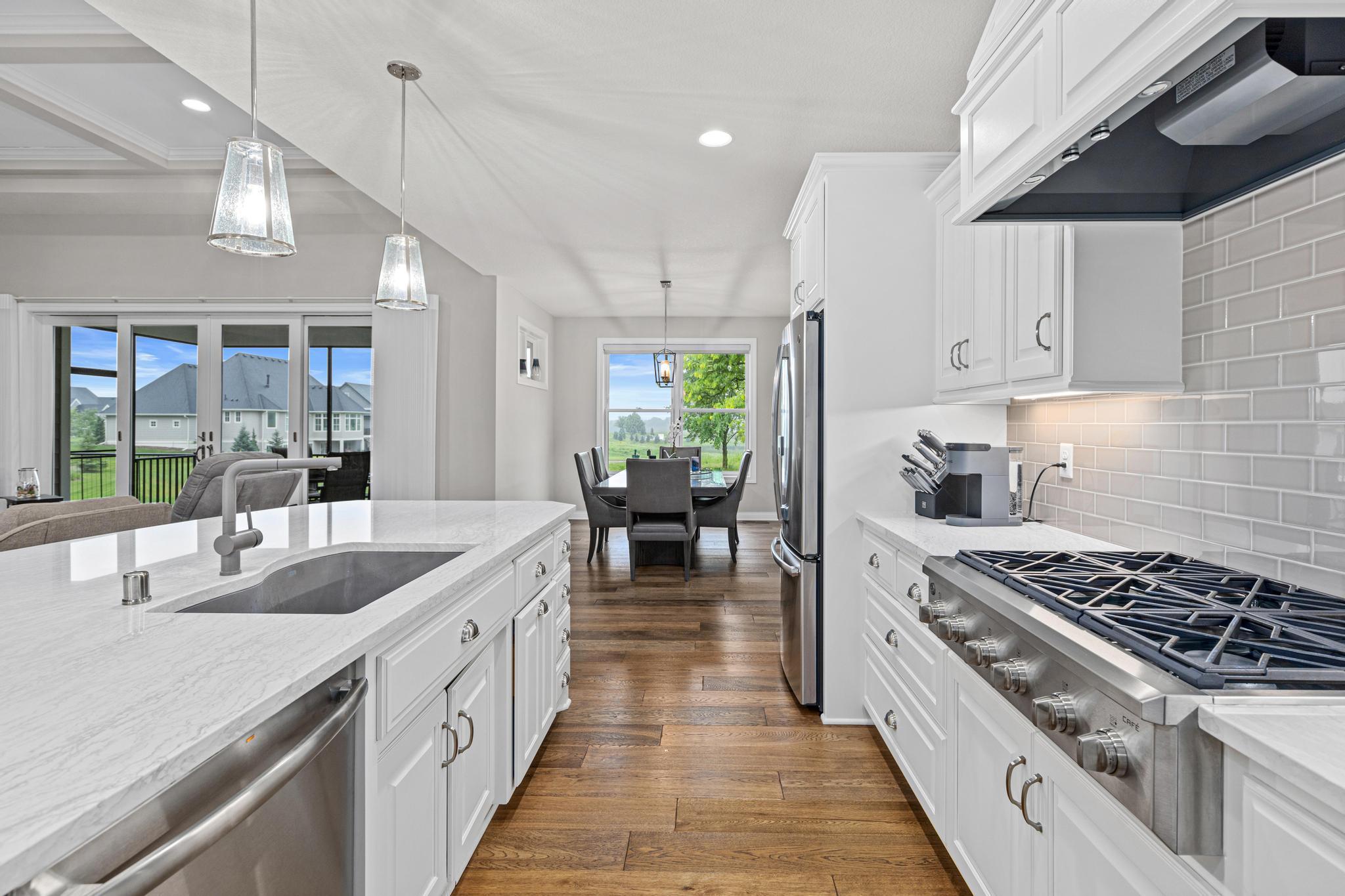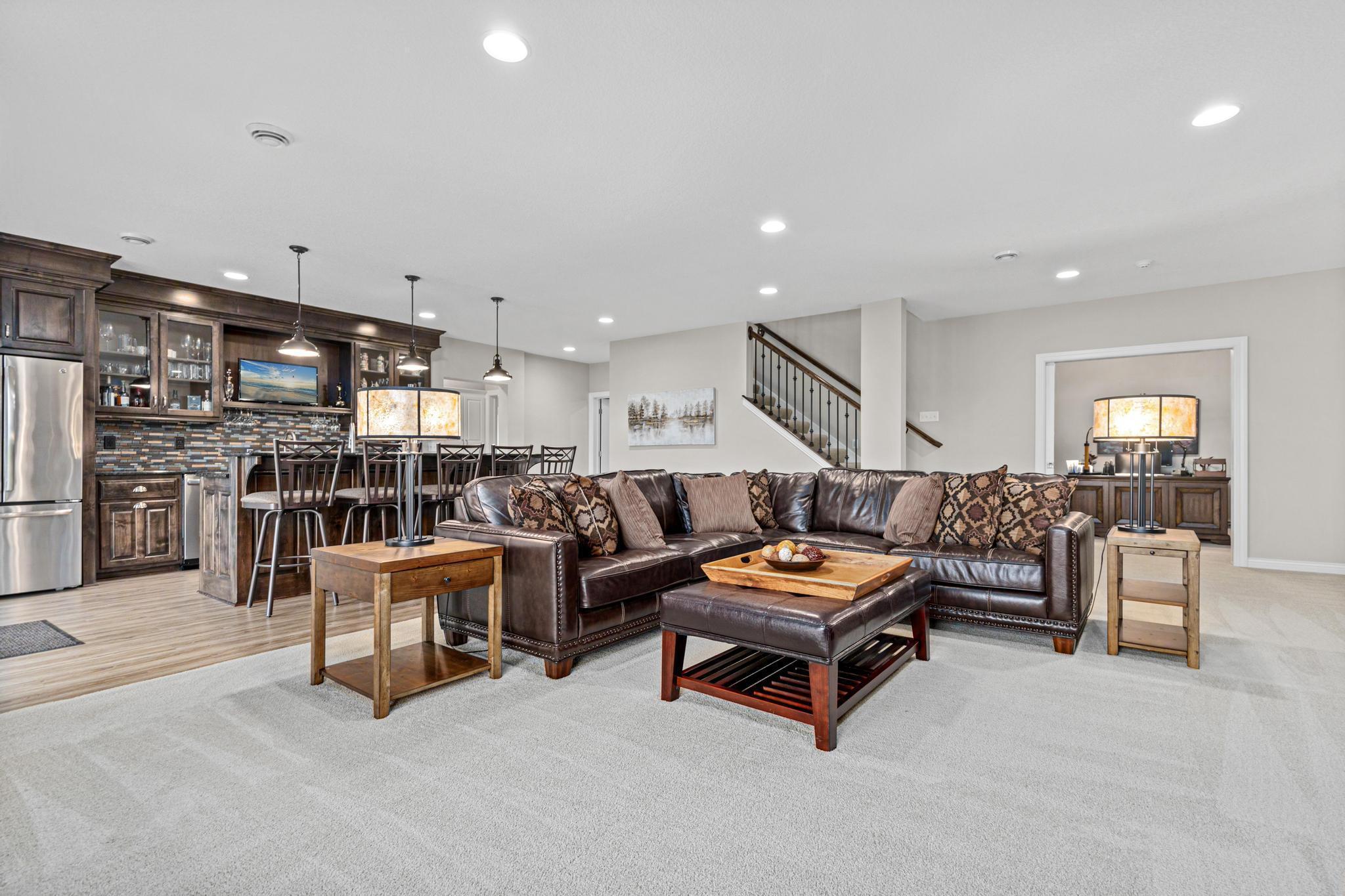 Luxury Living on the Royal Golf Club! Set on the prestigious 16th hole of the Royal Golf Club, this stunning custom-built home delivers an exceptional blend of refined elegance, modern comfort, and vibrant community living. With thoughtful design and high-end finishes throughout, this residence offers a lifestyle as impressive as its surroundings. From the moment you arrive, you’ll appreciate the inviting curb appeal, enhanced by stone accents, professional landscaping, and a welcoming covered front porch. Inside, the main level is a showstopper — anchored by a gourmet kitchen that blends style and function. Enjoy white cabinetry, quartz countertops, a sprawling center island with seating for six, subway tile backsplash, premium stainless appliances including a gas cooktop and double wall ovens, and a walk-in pantry. The open-concept layout flows seamlessly into the dining area and great room, featuring hardwood floors, abundant natural light, and access to a large screened-in porch overlooking the course—ideal for entertaining or unwinding in serene comfort. Just beyond is a grilling deck perfect for casual evenings with friends and family. Downstairs, the finished walkout lower level offers a true entertainer’s dream with a fully equipped custom wet bar, rich cabinetry, stone backsplash, beverage fridge, and seating for guests. A spacious family room, guest bedrooms, and full bath complete the space, all with access to a covered patio and beautifully maintained backyard. Additional highlights include: Oversized 3-car garage (1080 sq ft) with ample storage and includes a 9000 lb lift to store your hobby car and still park a golf cart! Private backyard with lush landscaping and golf course views. Designer lighting and finishes throughout. Spacious guest suites and flex space for a home office, gym or billiard room! Also, the association fee provides exclusive access to Royal Club residents to enjoy the pool and fitness center! About the Community The Royal Golf Club offers a lifestyle unlike any other— championship-caliber private golf on a course co-designed by legends Arnold Palmer and Annika Sörenstam, plus access to a clubhouse with dining, walking trails, playgrounds, and scenic views of Horseshoe Lake. Located just minutes from Woodbury and Stillwater, residents enjoy top-rated schools, convenient shopping, and easy freeway access — all while nestled in a quiet, resort-style setting. Whether you're an avid golfer, love to entertain, or simply desire high-quality living in an extraordinary neighborhood, 1920 Annika Drive is the place to call home. Furniture negotiable with sale. Note: This detached villa is governed by two HOA's through Associa Minnesota. Master association - The Royal Golf Club - $790 paid twice a year on 1/1 & 7/1. Sub association - The Masters Villa - $215 paid monthly.