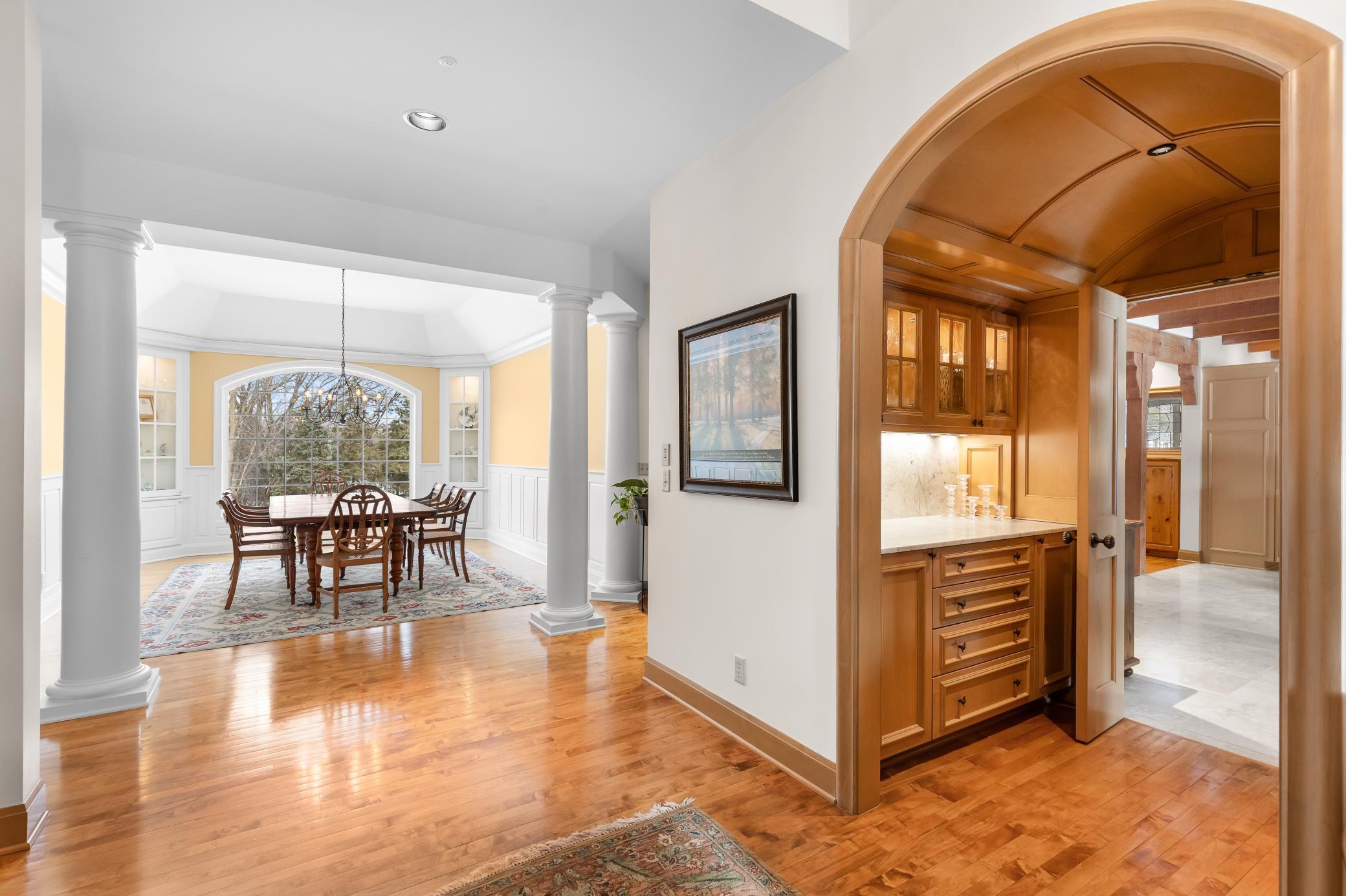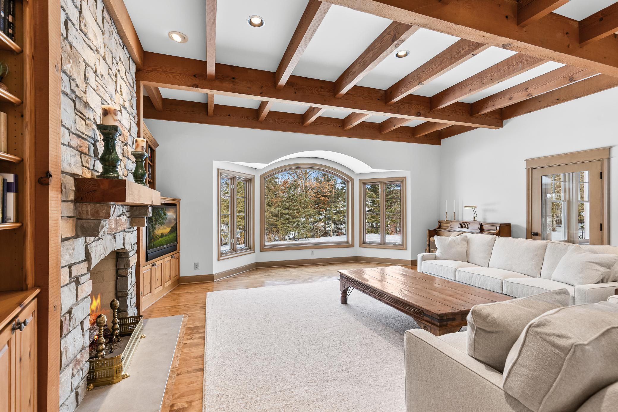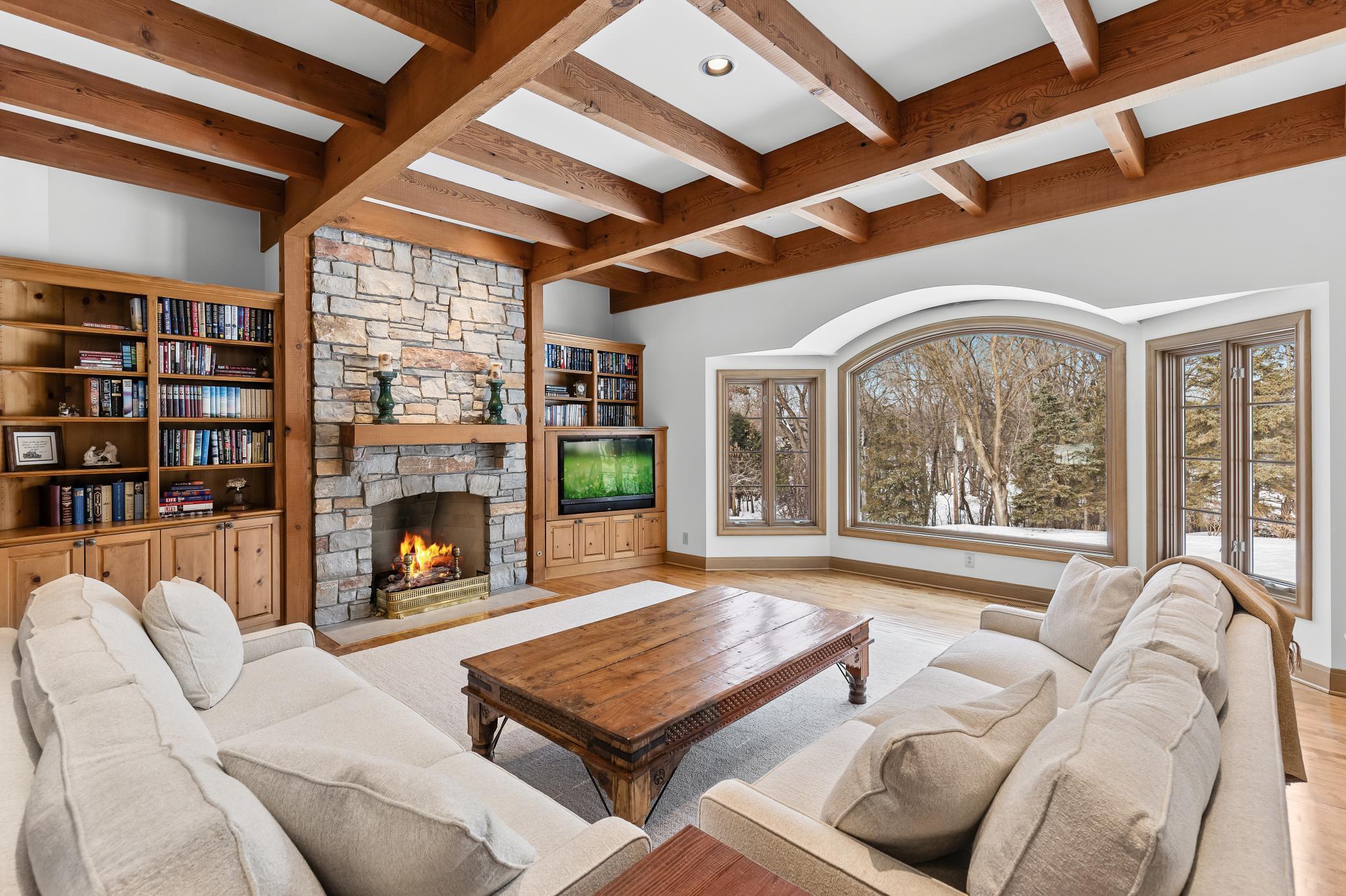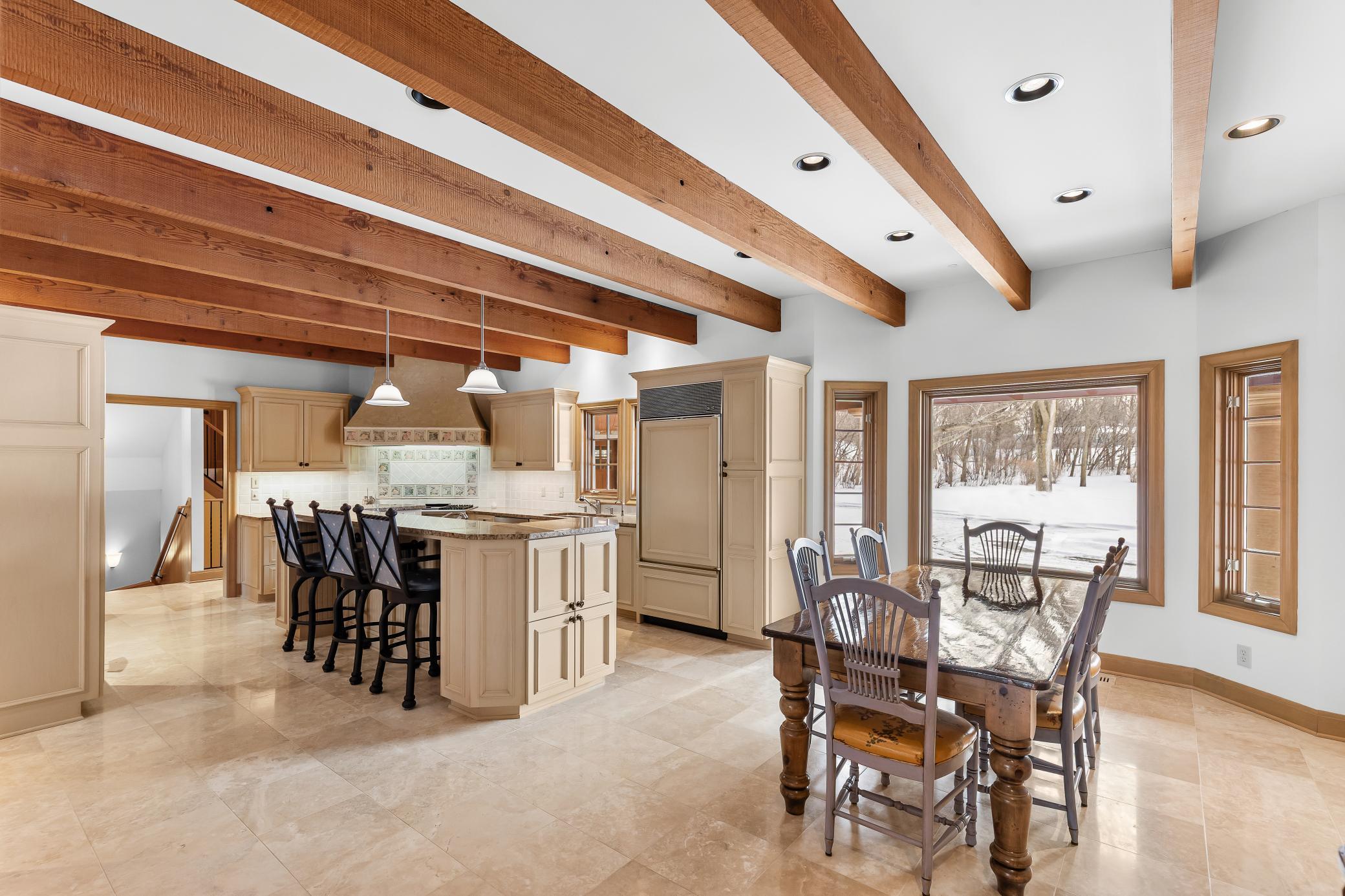 Privately tucked away at the end of a serene drive just minutes from Wayzata, this extraordinary one-owner estate rests on two breathtaking acres of level lawns, gardens, and storybook grounds. Custom built by Erotas and meticulously maintained, the residence offers over 10,000 square feet of timeless craftsmanship, architectural intention, and exceptional livability including 5+ bedrooms and 7 baths. Soaring ceilings adorned with hand-hewn beams crafted from reclaimed Lake Superior timber create warmth, scale, and a sense of enduring artistry throughout the home. Sunlight pours through expansive windows, revealing peaceful views from nearly every room and seamlessly connecting elegant interiors to the stunning landscape beyond. The main-level owner's suite is a true private retreat, featuring heated floors, steam shower, fireplace, private deck, and an expansive walk-in dressing space. Designed for both refined daily living and unforgettable entertaining, the home showcases an incredible, highly functional floor plan with dual staircases, elevator access, two laundry rooms, and beautifully flowing gathering spaces anchored by a chef’s kitchen with exceptional pantry, spacious rear entry, and custom lockers. Recreation and wellness are elevated with an indoor sport court and viewing area, dedicated workout studio, sauna, game and media spaces, and a walkout lower level with fireplace and wet bar. Outdoors, a resort-style pool and charming pool house with ¾ bath create a secluded summer sanctuary, complemented by multiple patios, grilling terrace, and the remarkable privacy of the surrounding grounds. Upper-level bedrooms each offer distinctive architectural character—including a dramatic two-story suite with lofted study, a turreted bedroom retreat, and generous bonus spaces with potential for additional bedrooms or baths. Heated floors, exquisite millwork, and uncompromising quality speak throughout. A heated four-car garage completes this rare offering—an estate where privacy, craftsmanship, recreation, and natural beauty converge just moments from the heart of Wayzata.