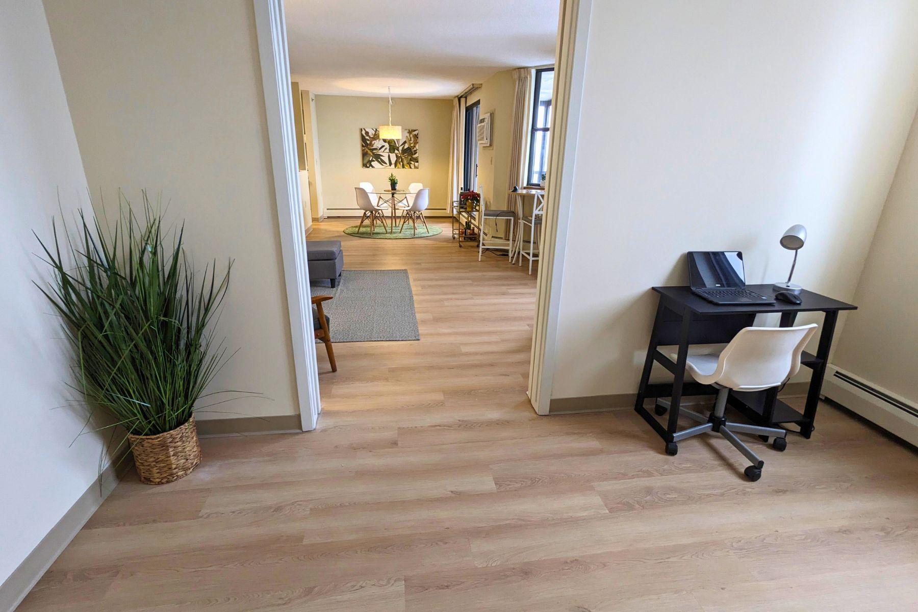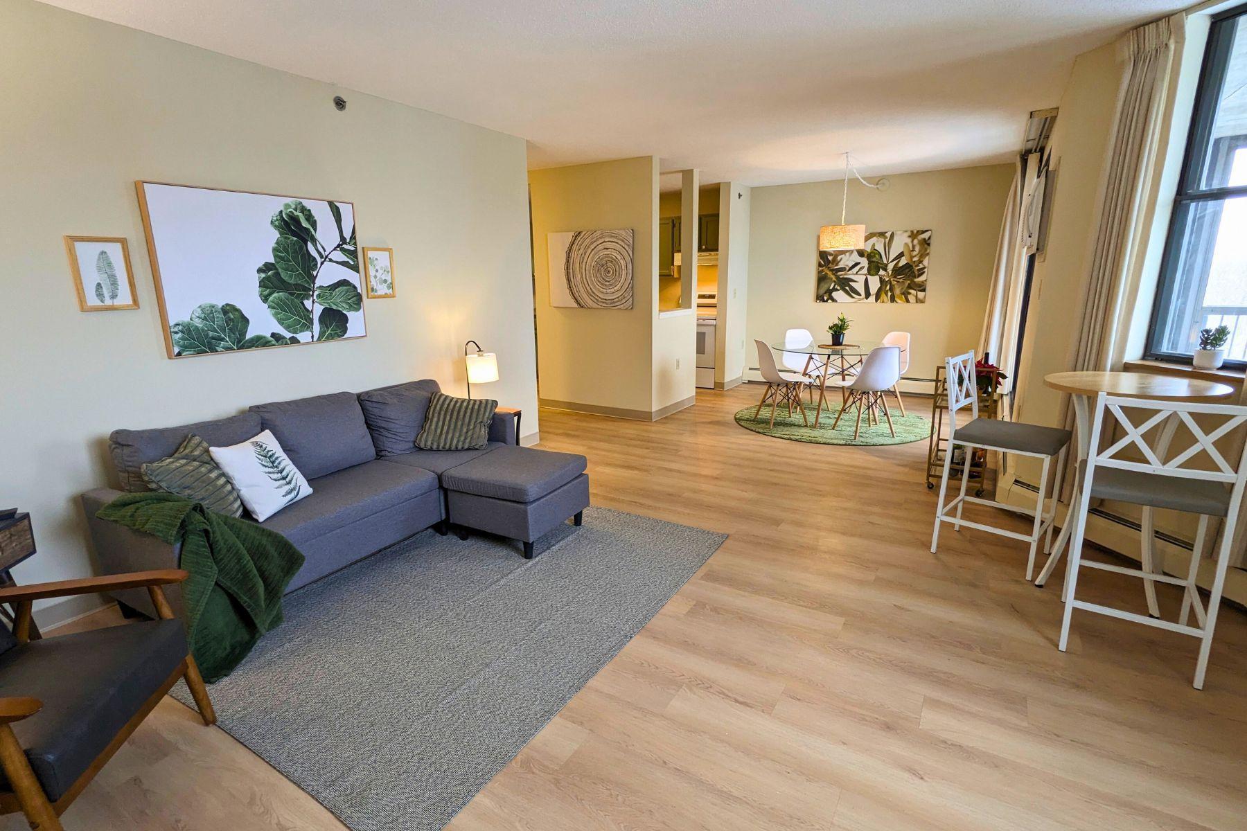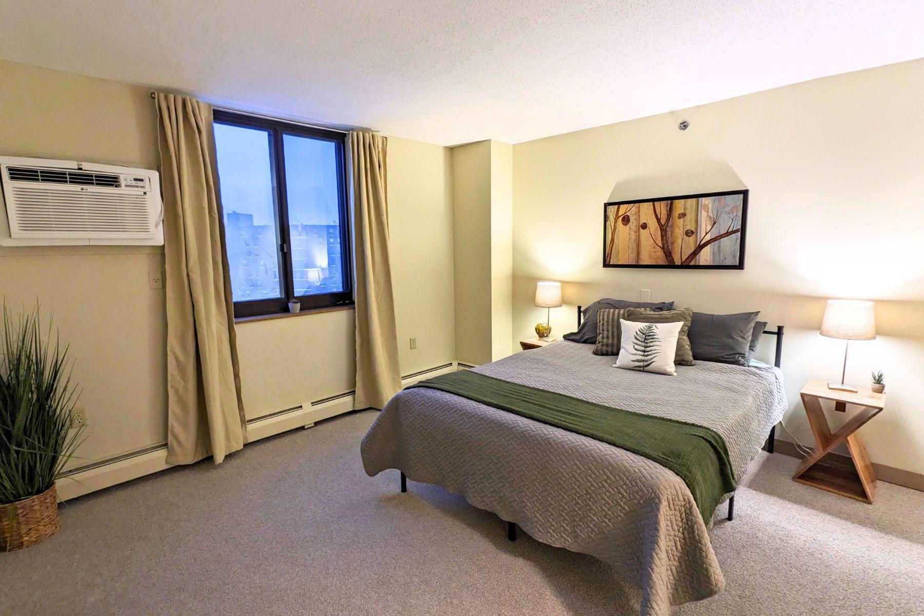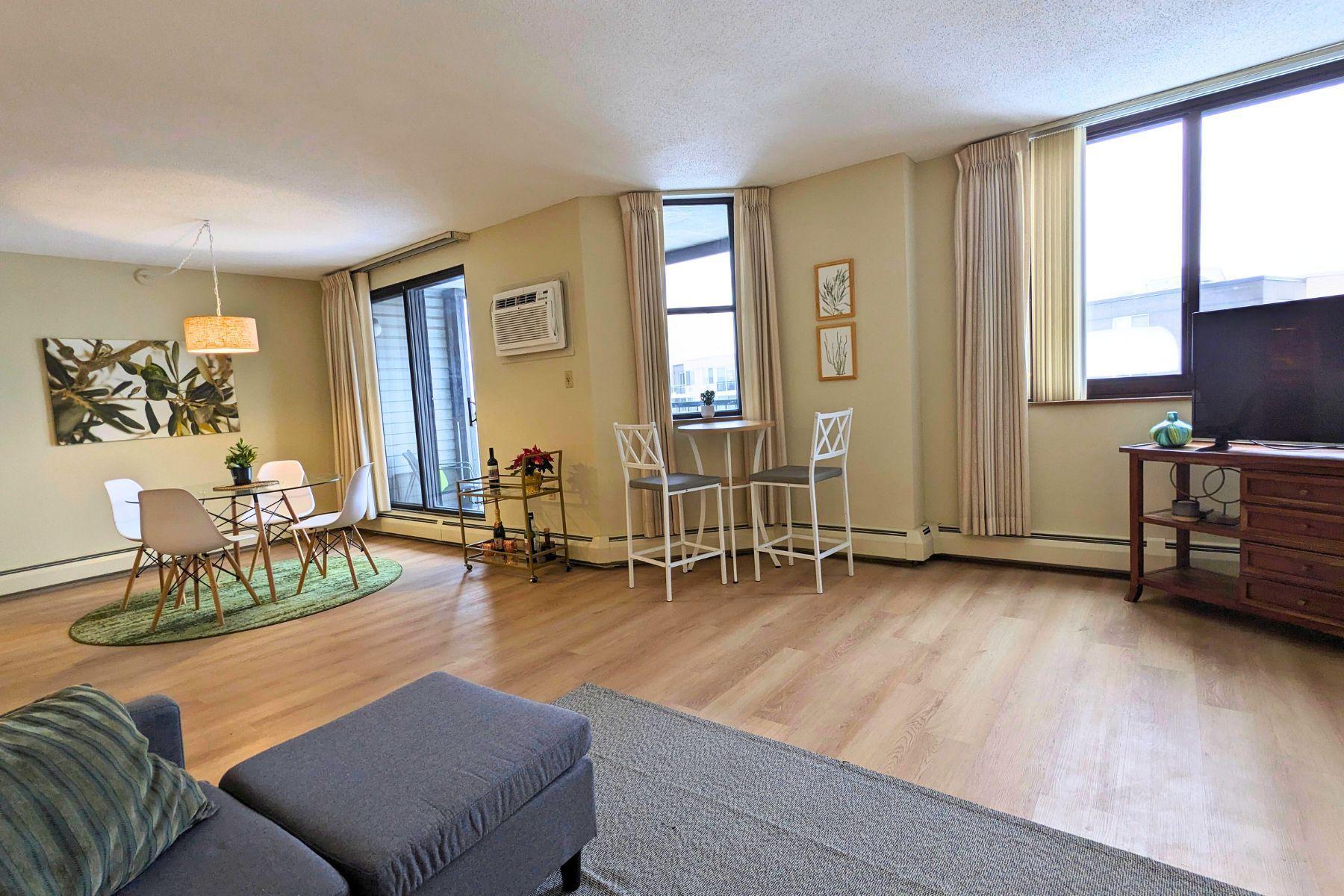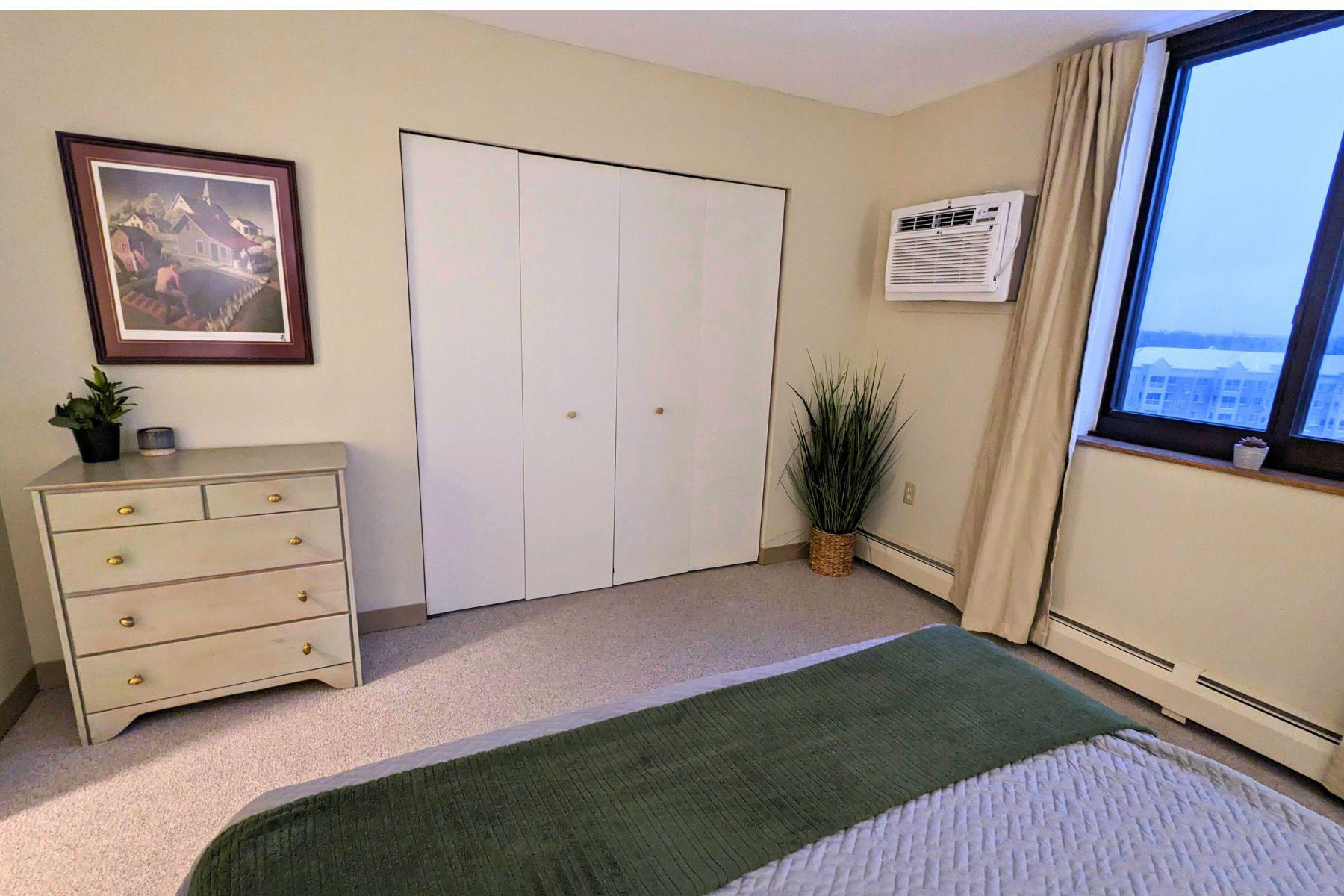 For rent by owner. Welcome to the 55+ senior community at Woodlake Point! This bright, spacious, open-concept condo is located walking distance to hiking trails, shops and services, and a few minutes from Edina Southdale and Galleria. You'll appreciate the easy access to 35W and Hwy 62 where you are within 15 minutes of downtown Minneapolis, and 10 minutes of MSP airport and the Mall of America. Unit 804 is a 976 square foot corner unit with 1 large primary bedroom plus a second bedroom/flex space. The condo is light-filled and updated with newer flooring, fresh paint, updated kitchen with new countertops, sink, and newer appliances, and two new remote-controlled AC units. Relax on your private screened balcony with views of downtown Minneapolis to the north and the MN River Valley to the south. The affordable rent is a great value because heated underground parking, internet, cable TV, laundry, and more are all included. Tenant only pays electricity and renter's insurance. Woodlake Point offers secured entrances, on-site property manager, a gym, community room, library, workshop, large patio, and guest suites. $55 application fee for background and credit check and a $150 HOA registration fee (non refundable). There is a $1450 rental security deposit and the HOA charges a $250 move-in damage deposit, and both are refundable if no damage is incurred. See supplements for additional details. Contact property owner for more info or to set up a tour. Owner is a MN real estate agent.