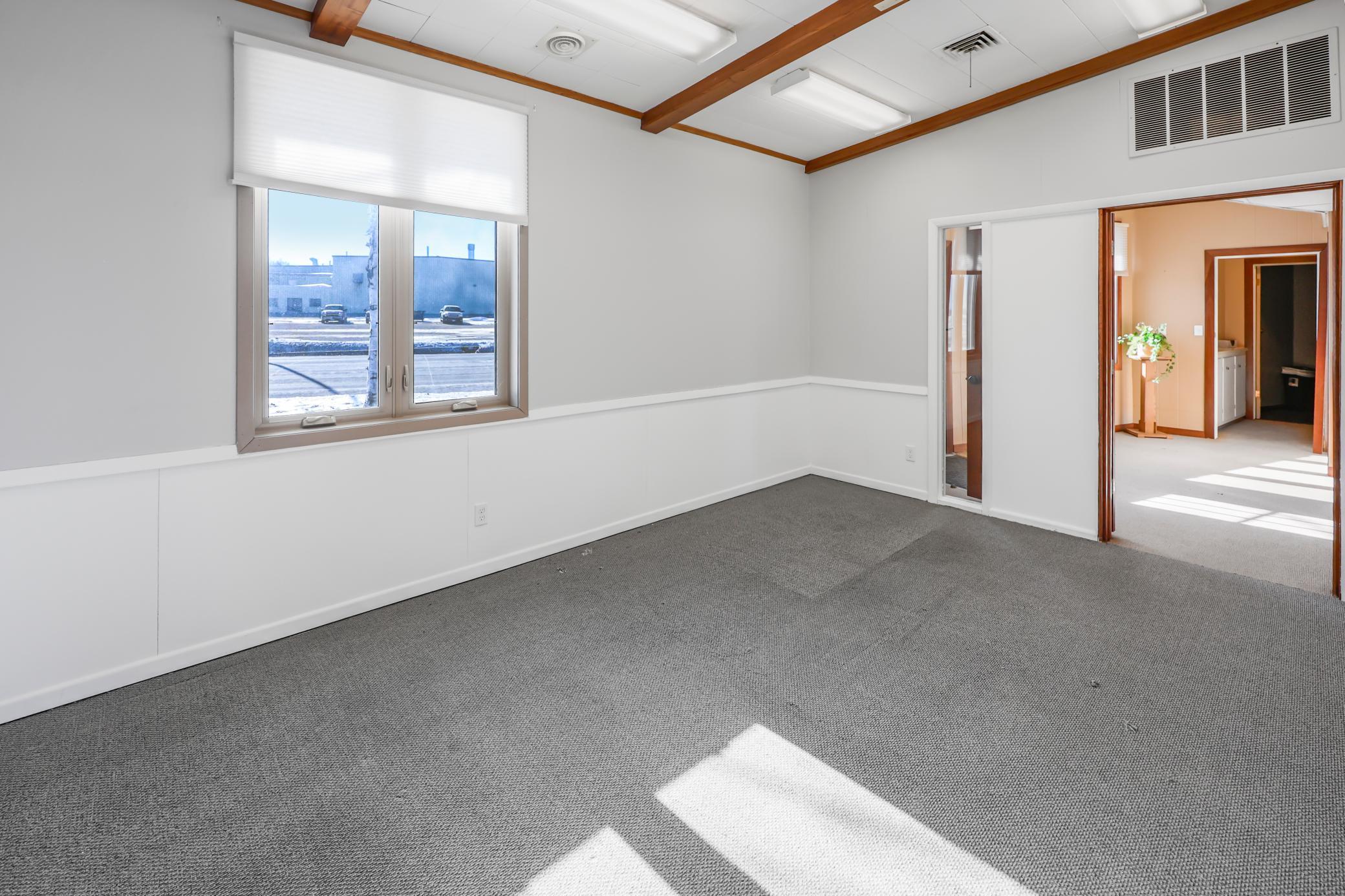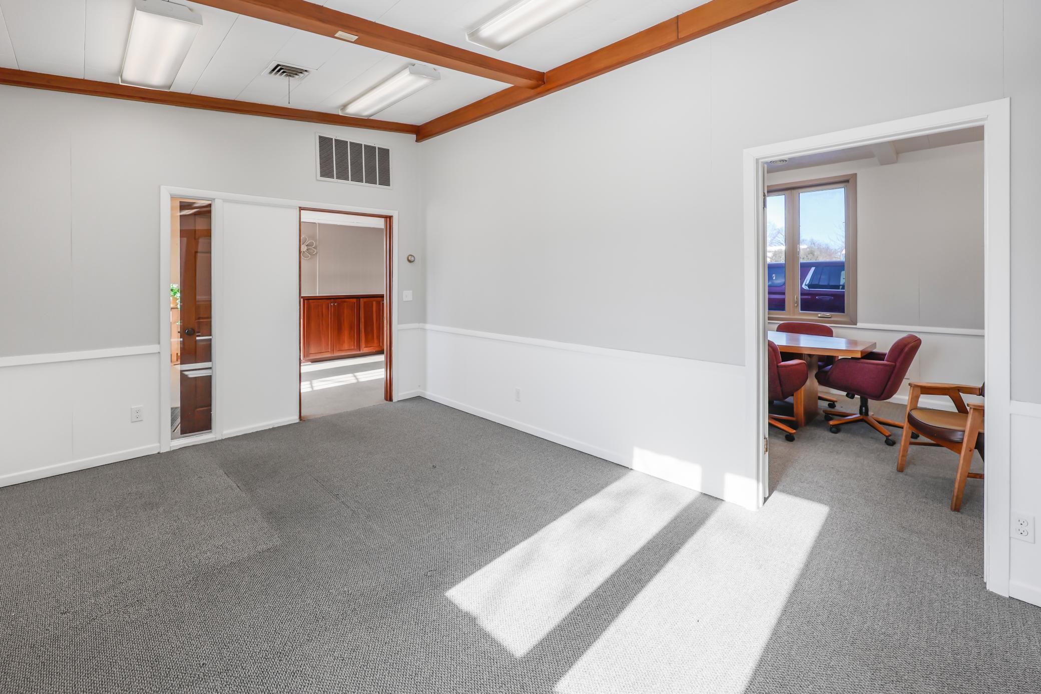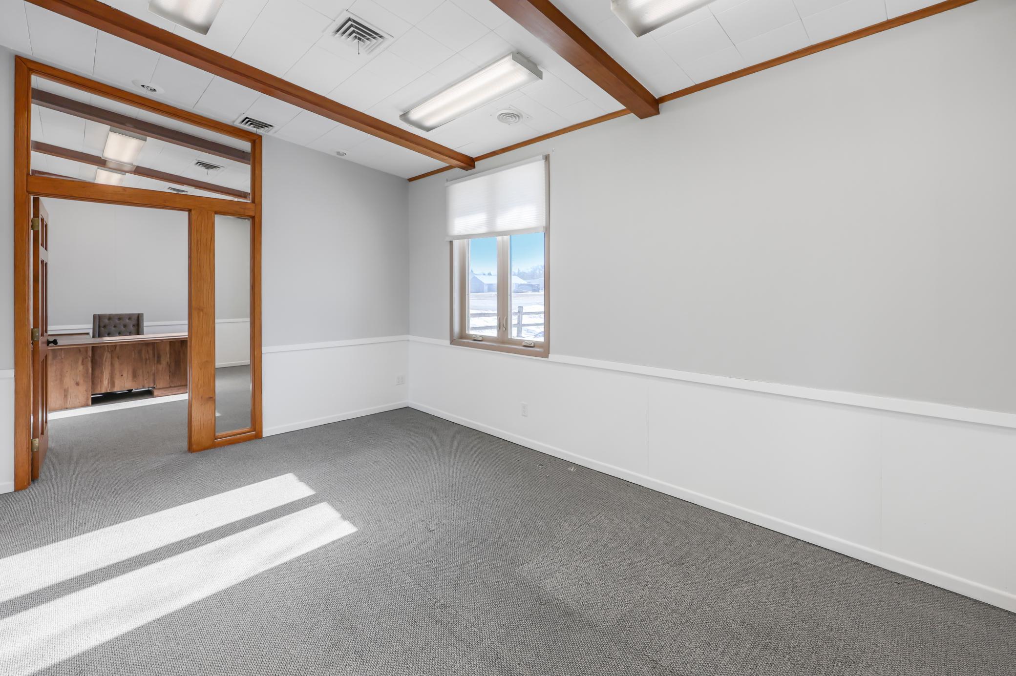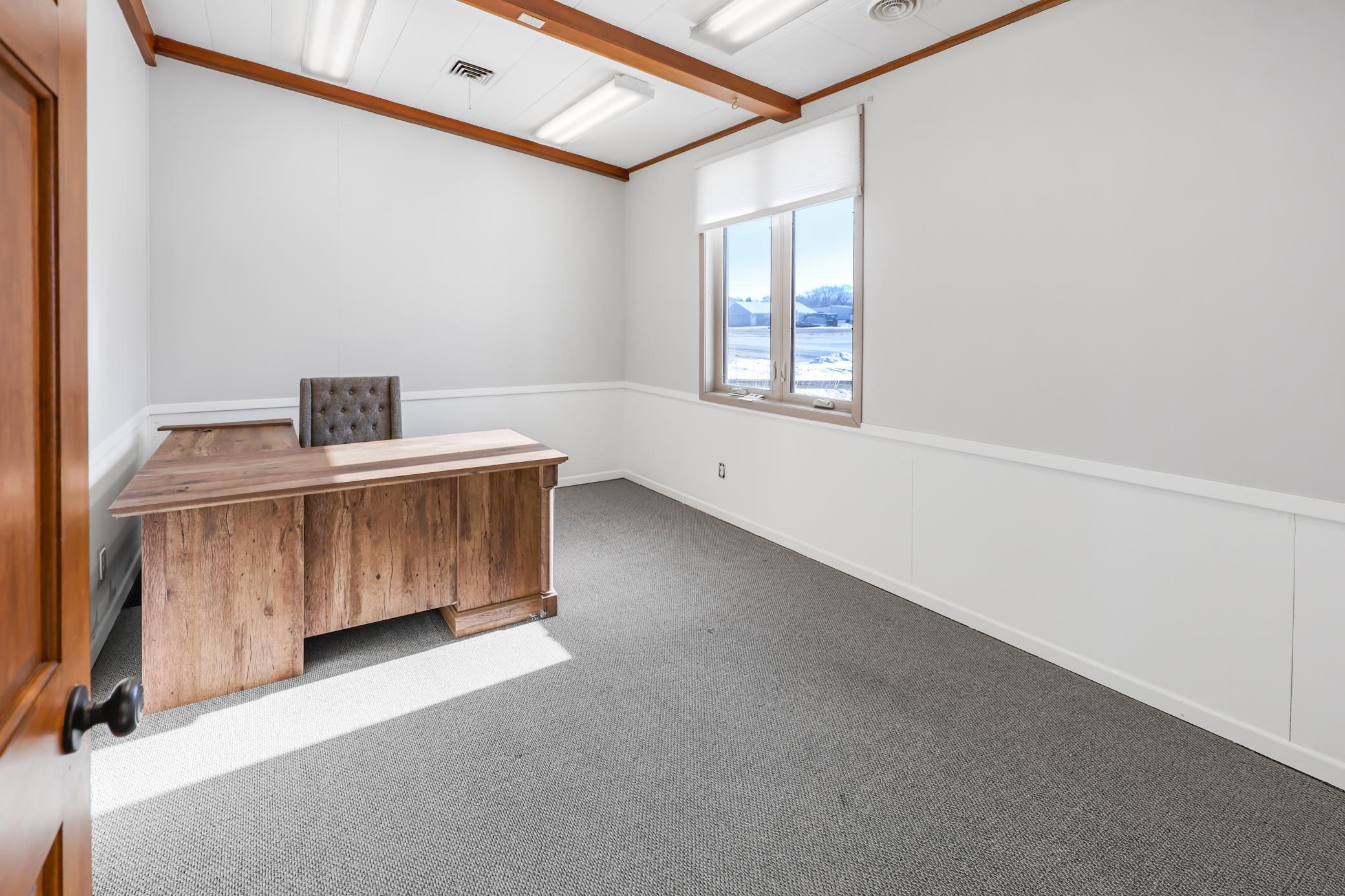 Office Space for Lease. Beautiful mid-century modern building. Located on Hwy 12 in Litchfield (~10,000 cars/day). Great high traffic, high visibility location. Lots of recent updates. Easy access parking. Multiple entrances. Reasonable utilities. Tons of natural light. Common area features an updated break-room, shared bathrooms and storage. Additional storage in side rooms and basement. Offices can be split. Large conference room in east office. Great professional space. Come check it out.