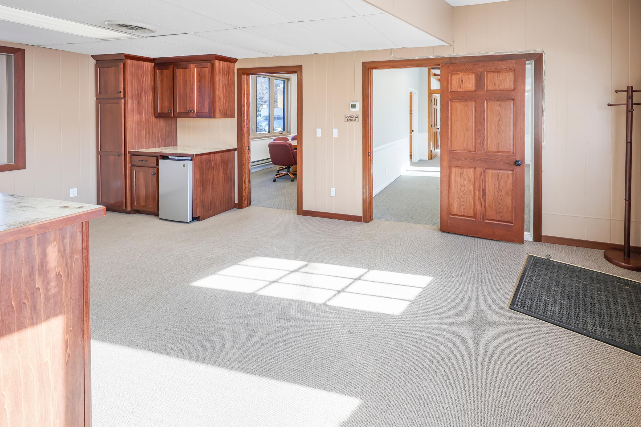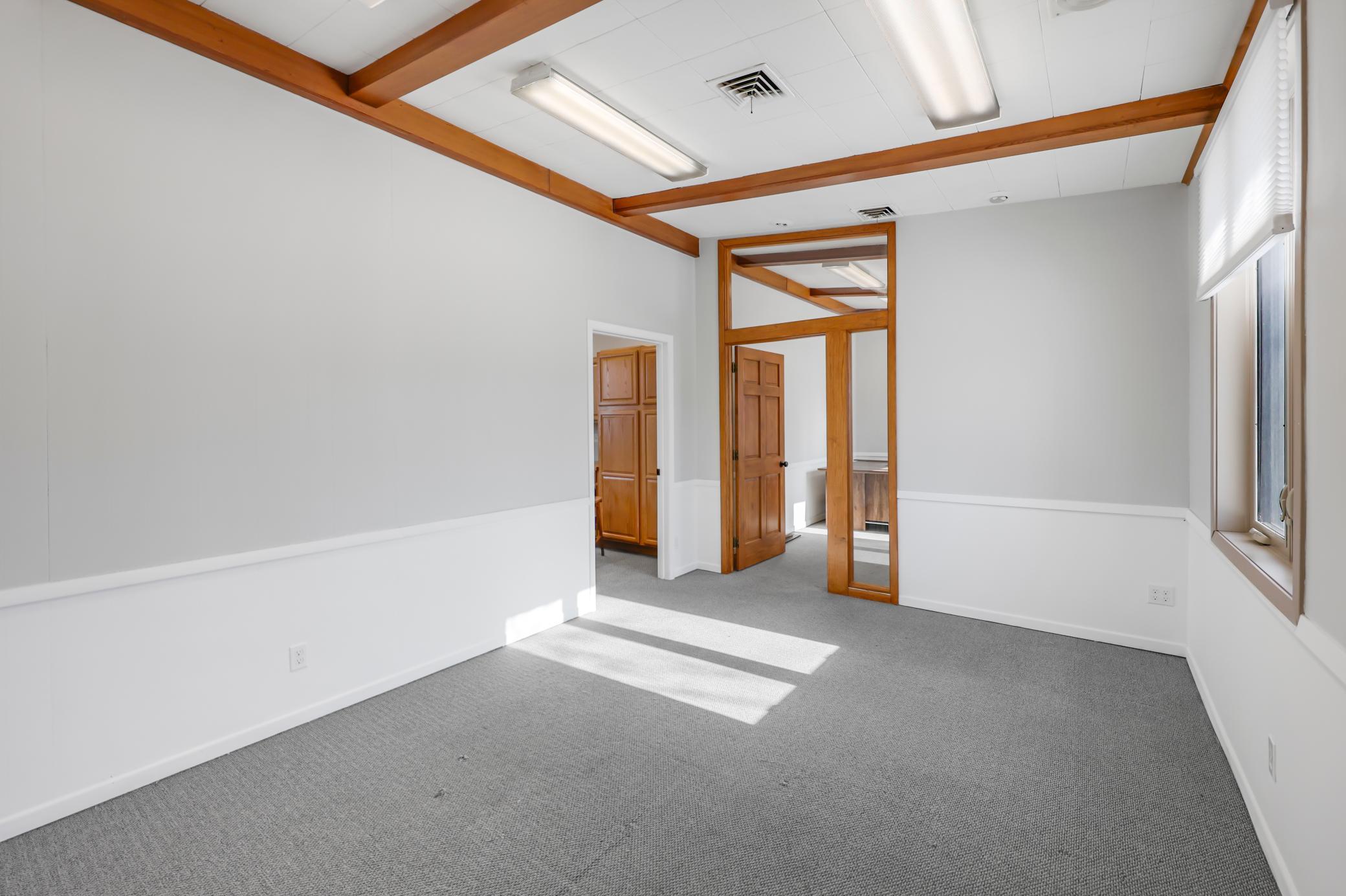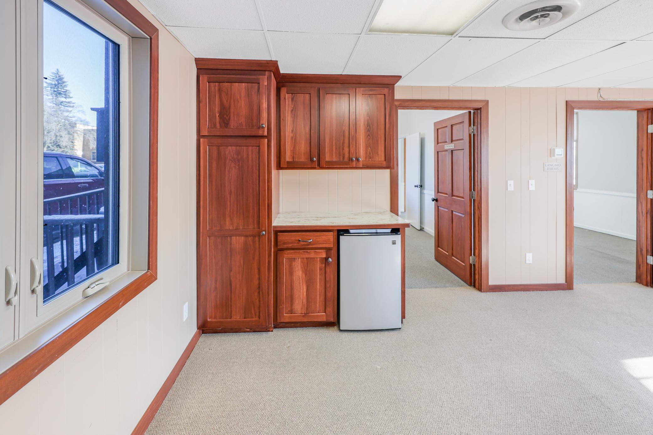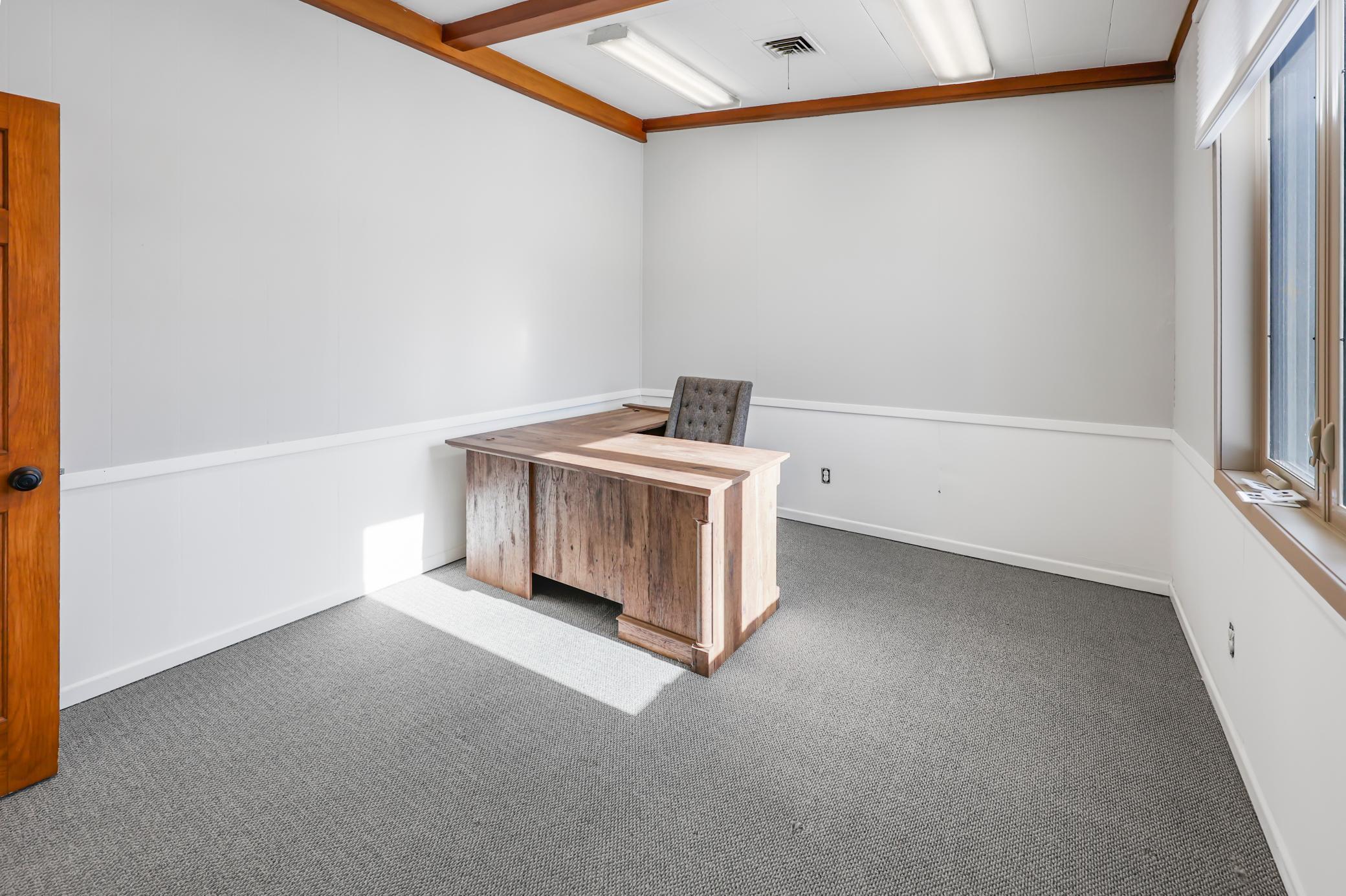 Office Space for Lease. Beautiful mid-century modern building. Located on Hwy 12 in Litchfield (~10,000 cars/day). Great high traffic, high visibility location. Lots of recent updates. Easy access parking. Multiple entrances. Reasonable utilities. Tons of natural light. Common area features an updated break-room, shared bathrooms and storage. Additional storage in side rooms and basement. Offices can be split. Large conference room in east office. Great professional space. Come check it out.