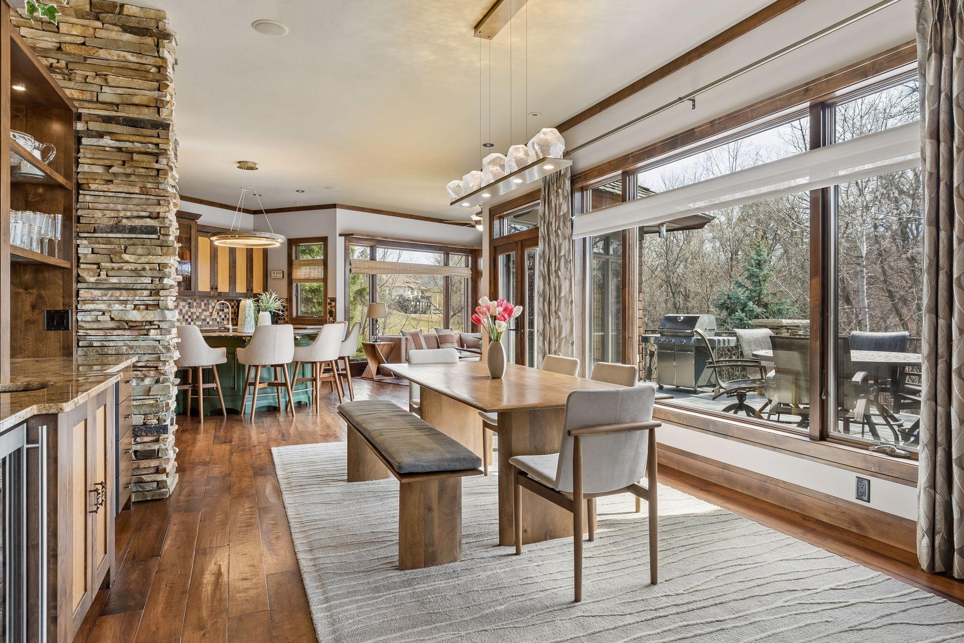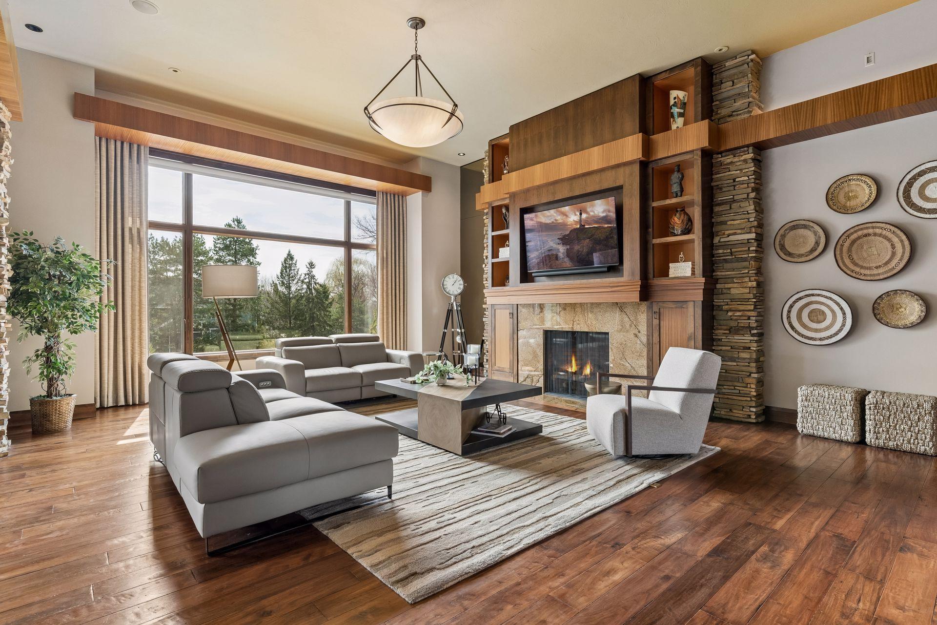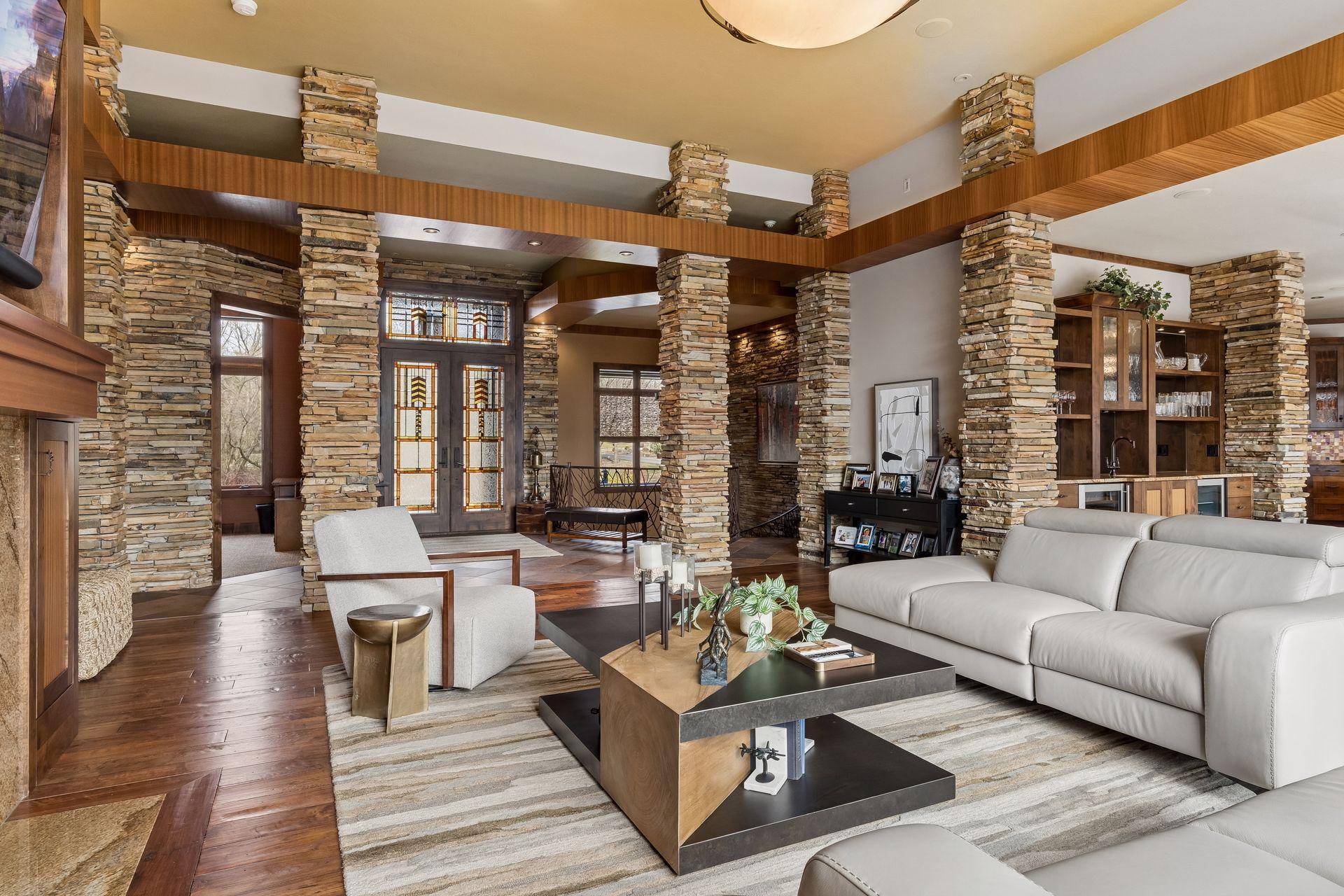 Timeless elegance privately set on 2.2 acres along one of Mendota Heights’ most desirable streets, this exceptional residence offers a rare blend of privacy, refined living, and effortless access to the Twin Cities’ most sought-after amenities. Brilliantly designed, the home lives grand yet remarkably inviting. A gracious foyer with a sweeping curved staircase welcomes guests, leading to a sun-filled gathering room with 14-foot soaring ceilings, statement fireplace, and expansive windows overlooking tranquil pond views and a heavily wooded, park-like setting. Entertain in style in the elegant dining room and chef’s gourmet kitchen. A dedicated office provides ideal work-from-home flexibility. The main-level owner’s suite is a true retreat with spa-inspired finishes. The walkout lower level is built for unforgettable evenings, featuring two spacious bedrooms, a billiards area, full bar, and a golf practice facility. Step outside to a private patio with firepit surrounded by breathtaking, meticulously designed landscaping. Heated 3-car garage. An extraordinary, private estate offering sophistication, comfort, and timeless appeal—just minutes to the Minnesota Vikings practice facility and MSP Airport. Do not miss your opportunity to call this home!