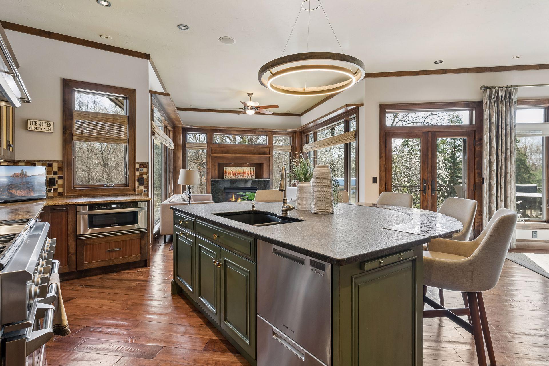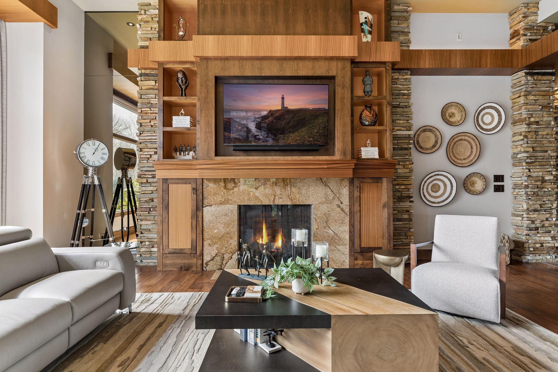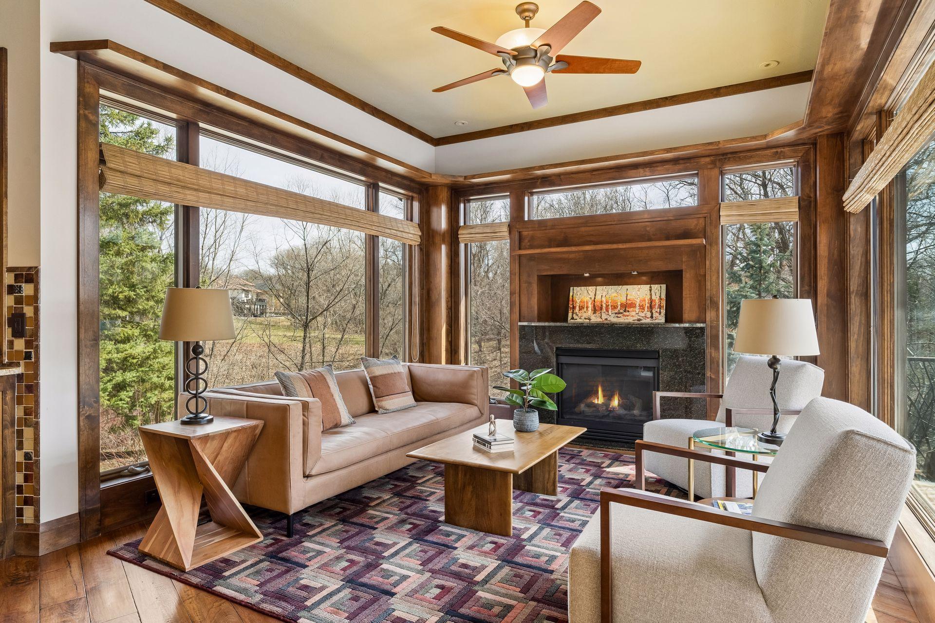 Timeless elegance privately set on 2.2 acres along one of Mendota Heights’ most desirable streets, this exceptional residence offers a rare blend of privacy, refined living, and effortless access to the Twin Cities’ most sought-after amenities. Brilliantly designed, the home lives grand yet remarkably inviting. A gracious foyer with a sweeping curved staircase welcomes guests, leading to a sun-filled gathering room with 14-foot soaring ceilings, statement fireplace, and expansive windows overlooking tranquil pond views and a heavily wooded, park-like setting. Entertain in style in the elegant dining room and chef’s gourmet kitchen. A dedicated office provides ideal work-from-home flexibility. The main-level owner’s suite is a true retreat with spa-inspired finishes. The walkout lower level is built for unforgettable evenings, featuring two spacious bedrooms, a billiards area, full bar, and a golf practice facility. Step outside to a private patio with firepit surrounded by breathtaking, meticulously designed landscaping. Heated 3-car garage. An extraordinary, private estate offering sophistication, comfort, and timeless appeal—just minutes to the Minnesota Vikings practice facility and MSP Airport. Do not miss your opportunity to call this home!