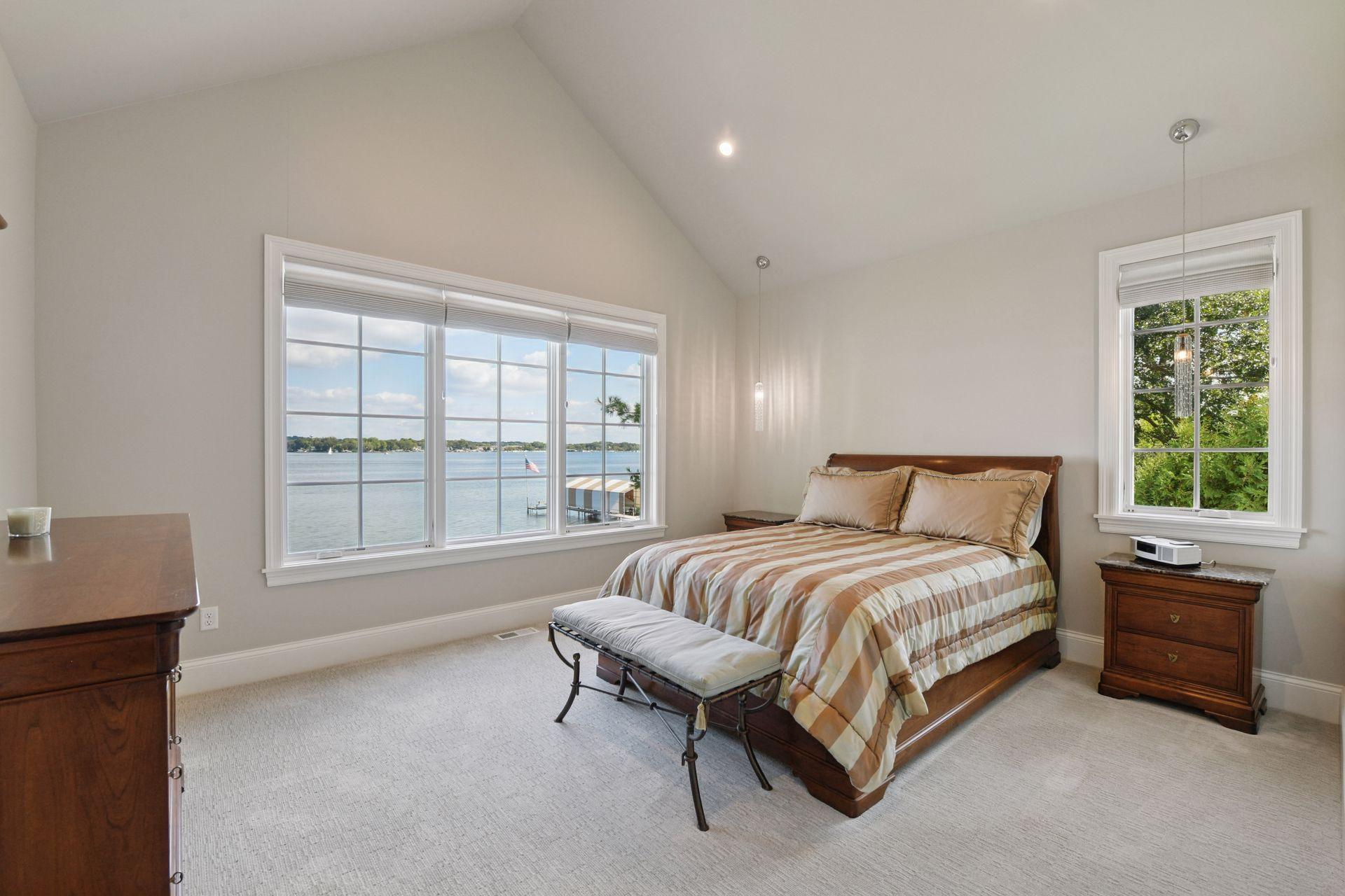 Lake Minnetonka Lakeshore! Prime Lower Lake location with clear water, hard sand bottom and level lakeside lawn. Kathy Alexander–designed and Ador built, this two-story lives like new construction. Panoramic views of the water stretch across Excelsior, Gale Island, and beyond — perfect for watching the Excelsior fireworks from your own backyard. Inside, a crisp white interior features hardwood floors and a dramatic wall of glass that opens to the patio and lawn. Open concept main floor with center-island kitchen, great room with fireplace and lakeside covered porch with phantom screens. Upstairs features a primary suite with luxury bath, three additional bedrooms, laundry and a flex space perfect for den or exercise. Great location just minutes from downtown Excelsior with easy access to parks, trails, and award-winning Minnetonka Schools.