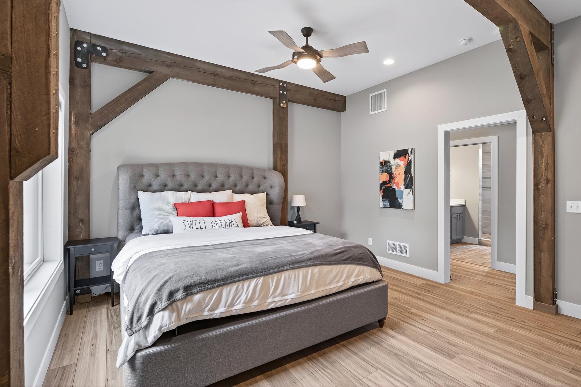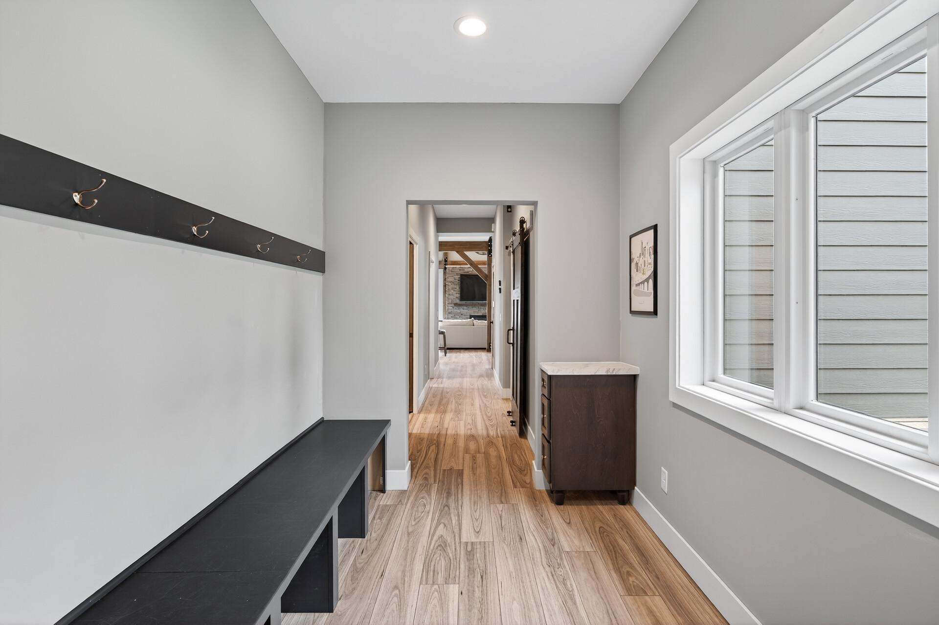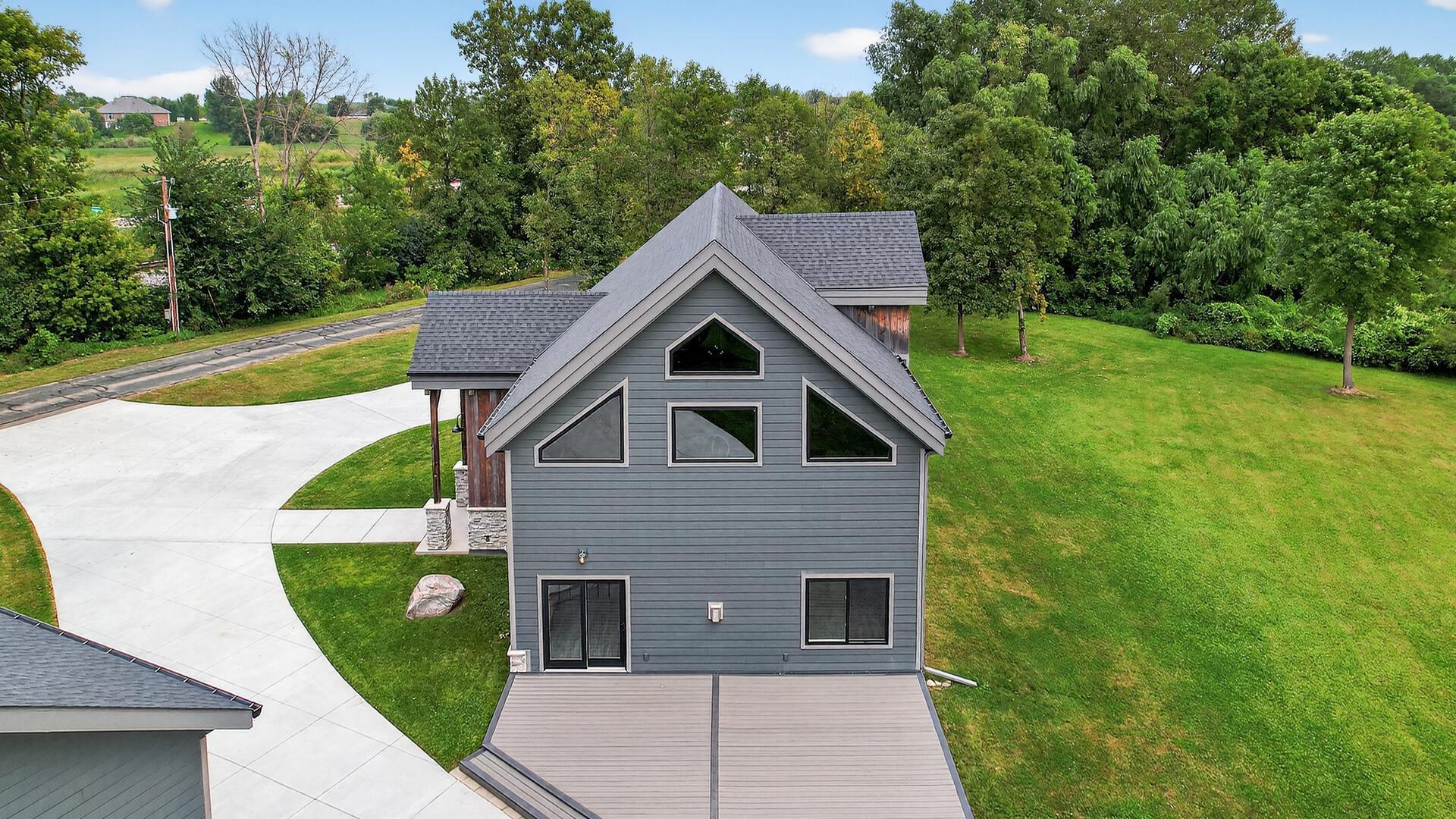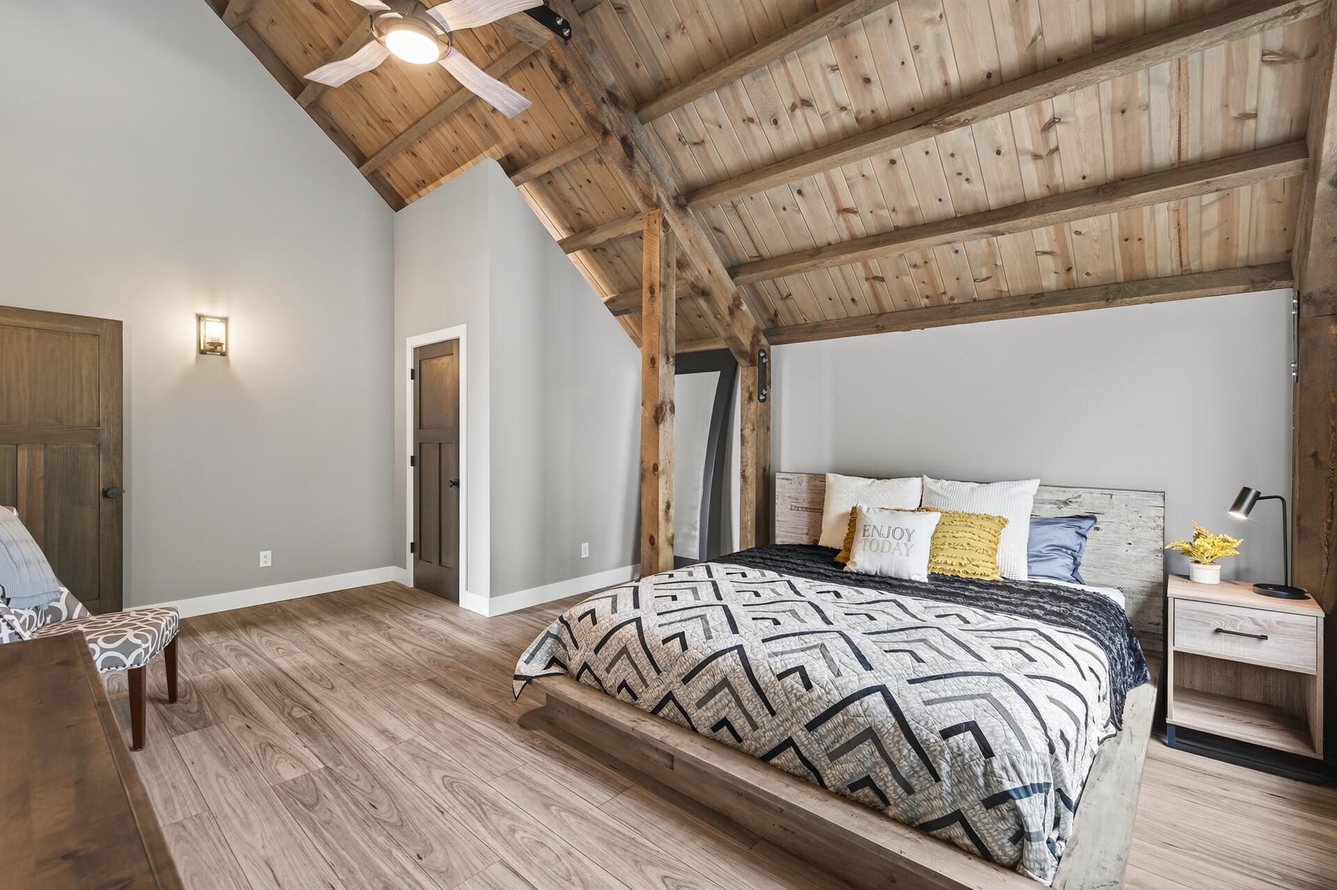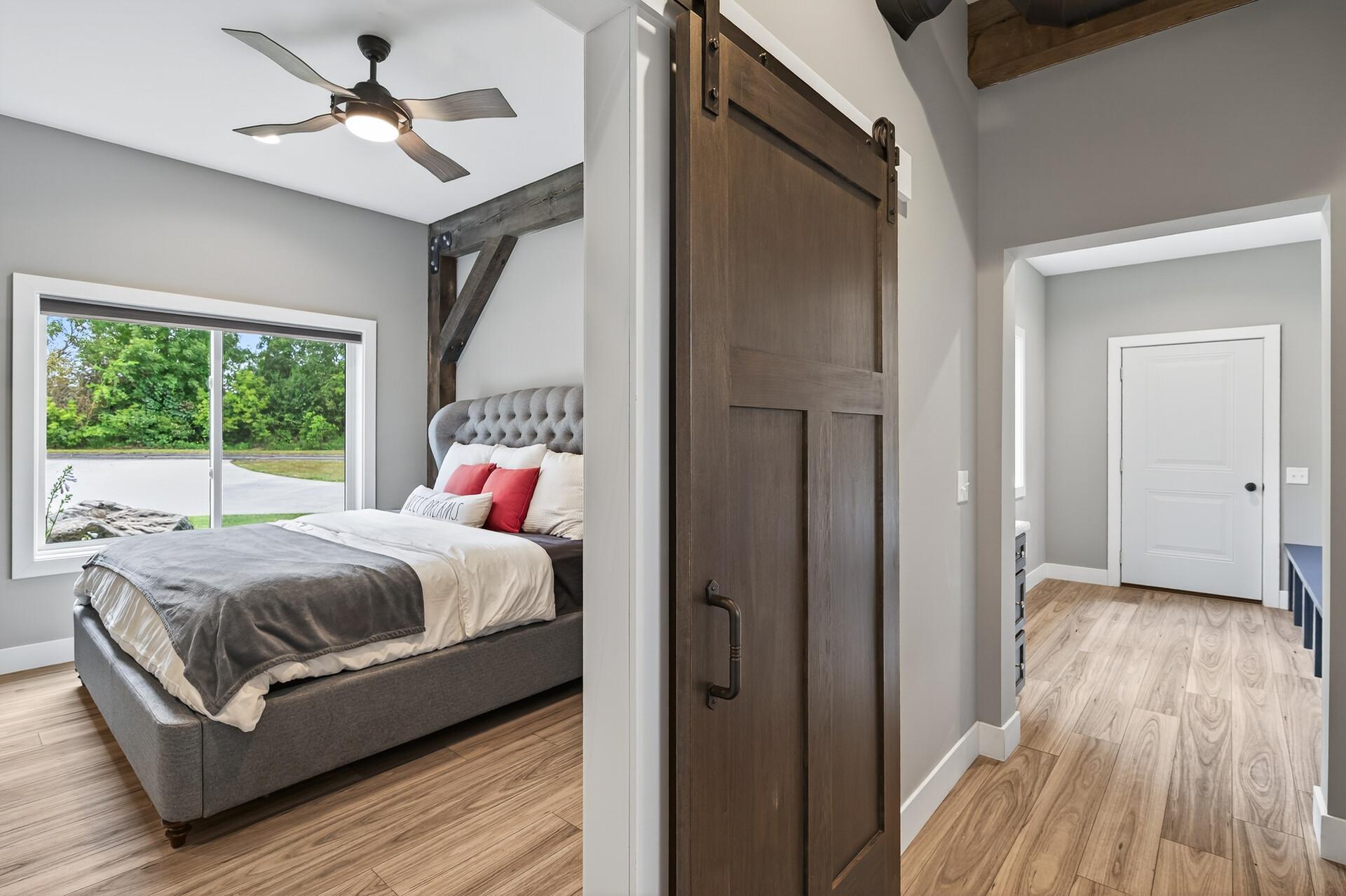 Built in 2020, this custom-designed lake home features a light, bright, open floor plan with main-level living and high-end finishes throughout. Highlights include Andersen windows, prefinished Hardie Board siding, soaring 32-foot post-and-beam natural cedar ceilings, a striking floating staircase, and a beautiful stone gas fireplace.